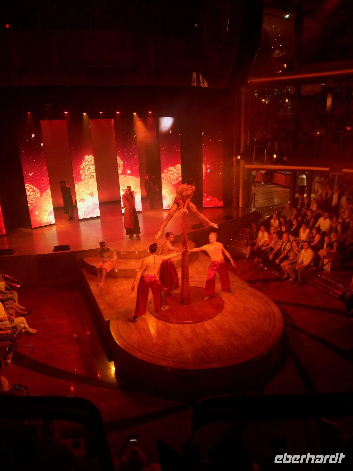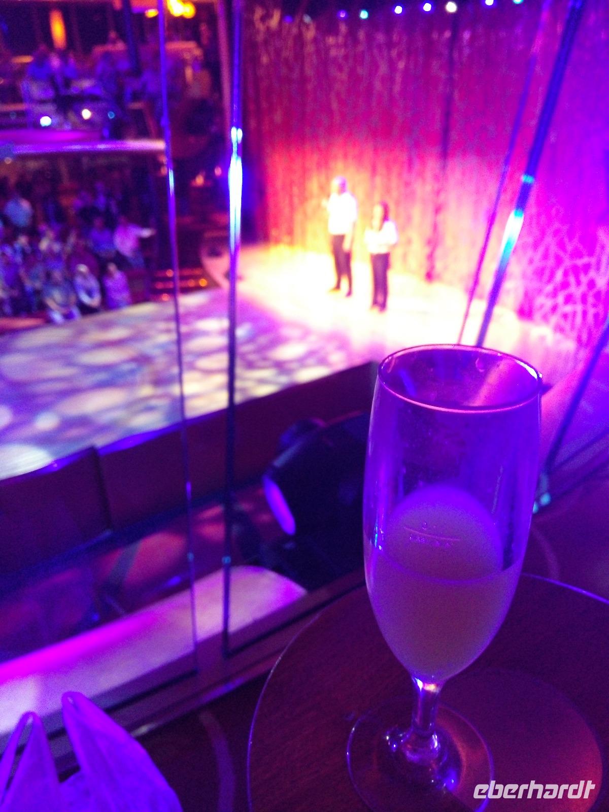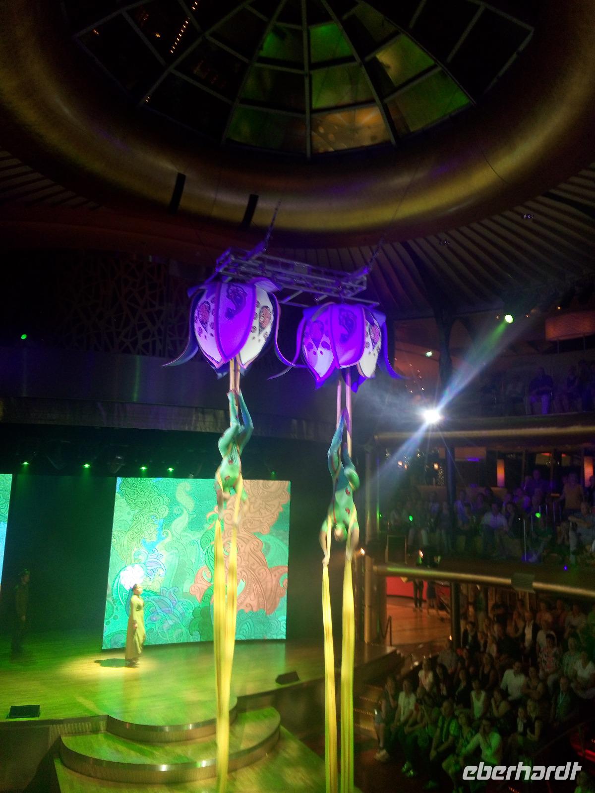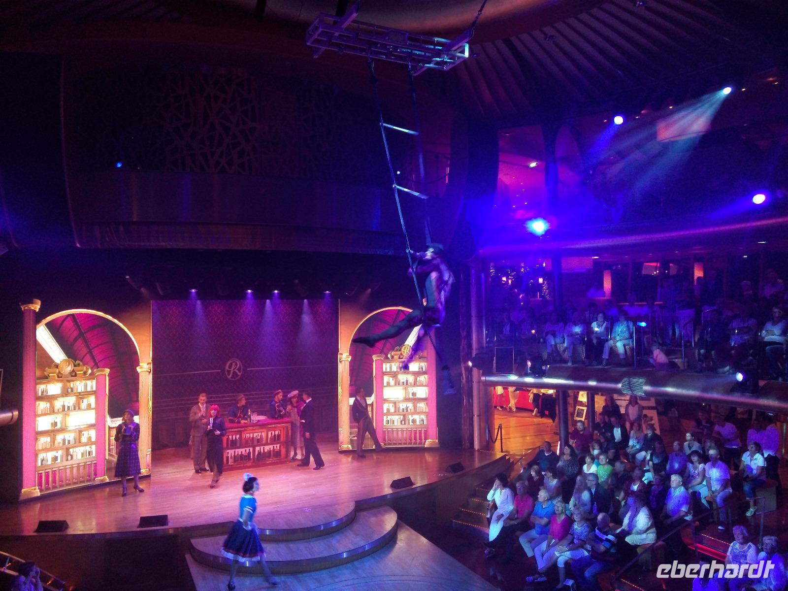 Pünktlich waren wir am Bord und konnten unsere Erholung fortsetzten. Es gab genug Angebote. 2 Mal pro Abend konnte man eine Vorstellung bei Theatrium sehen. Natürlich, gab es auch eine Disco, "ein Weisparty" und so weiter und so fort.