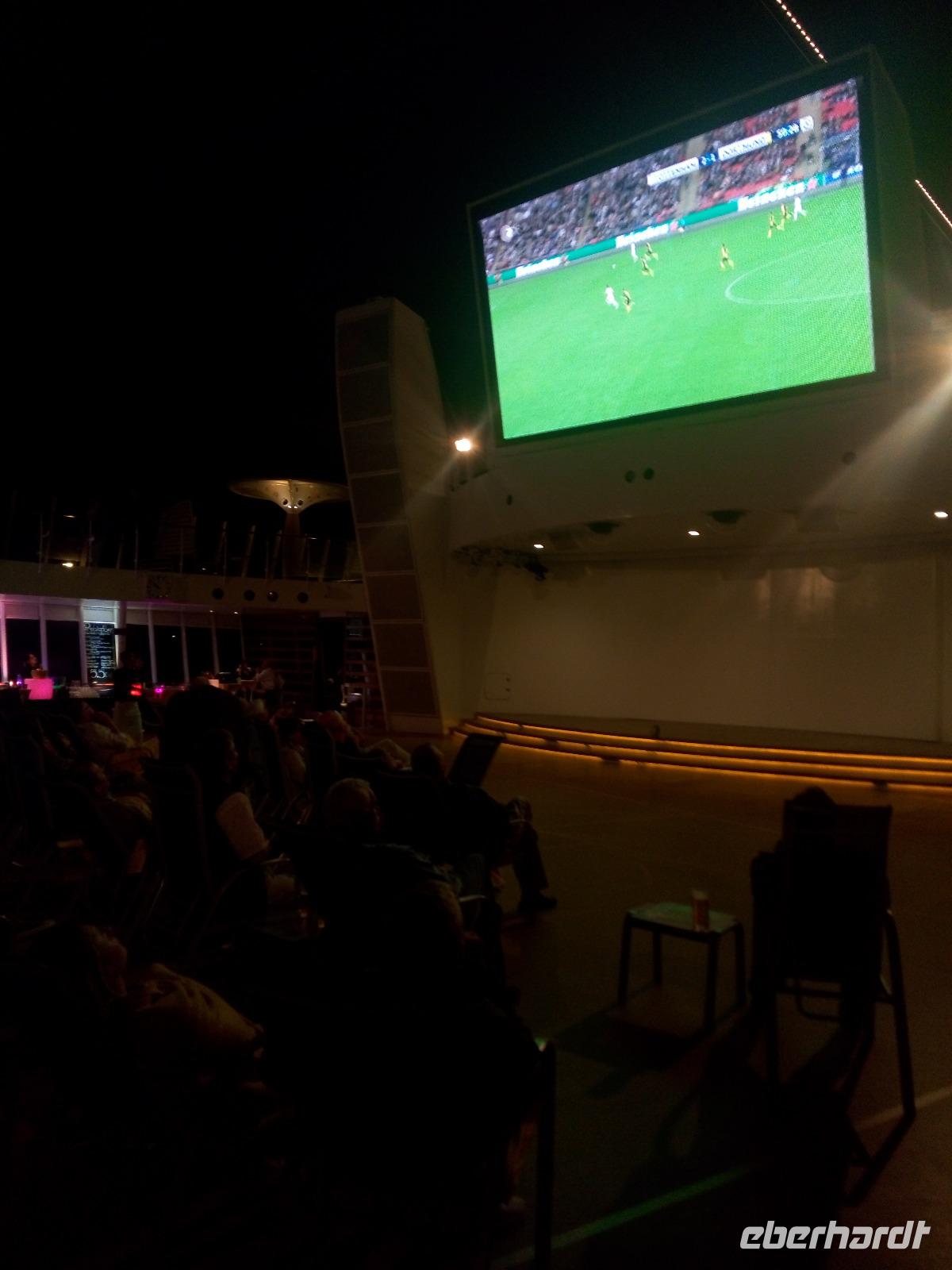 Den Nachmittag haben wir jeder für sich verbracht. Einige sind in die Sauna gegangen, die anderen waren in der Bibliothek von Aida. Ja ja, da gibt es sogar eine Bibliothek. Abends haben sich viele bei Nadja's Prime Time im Theatrium getroffen.