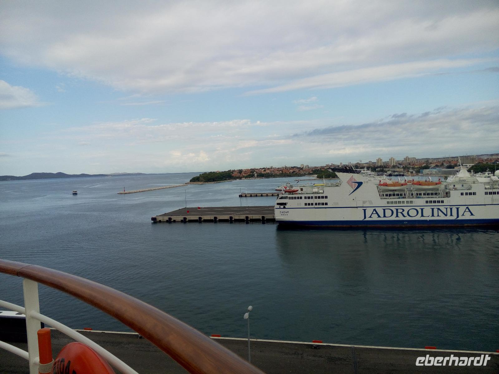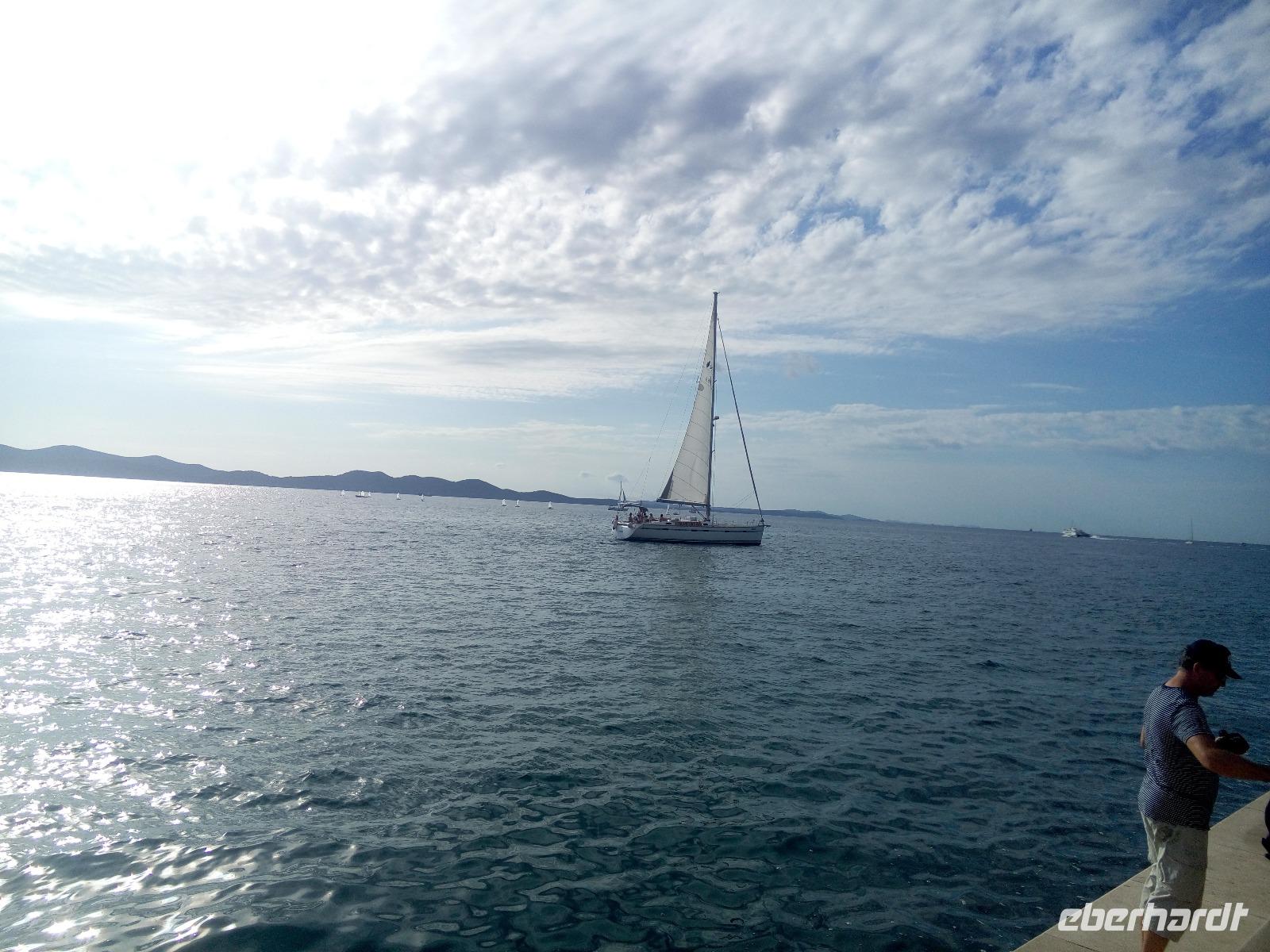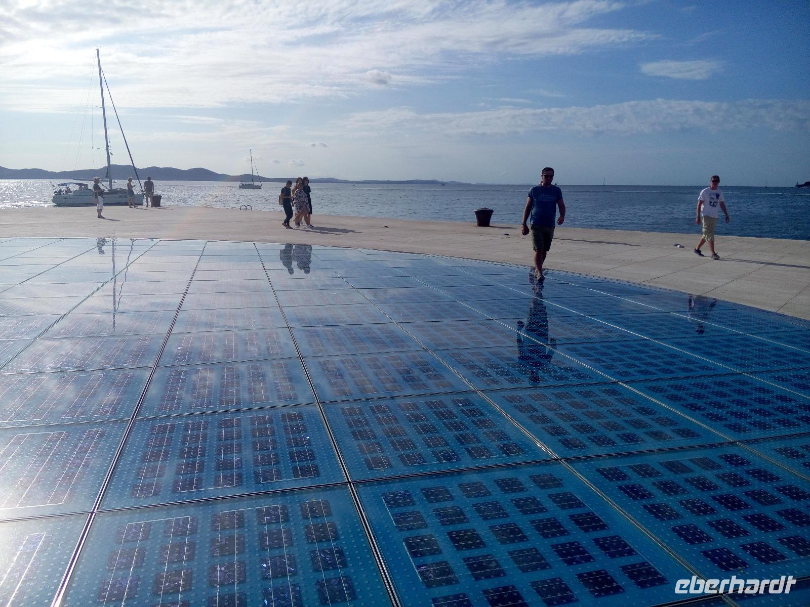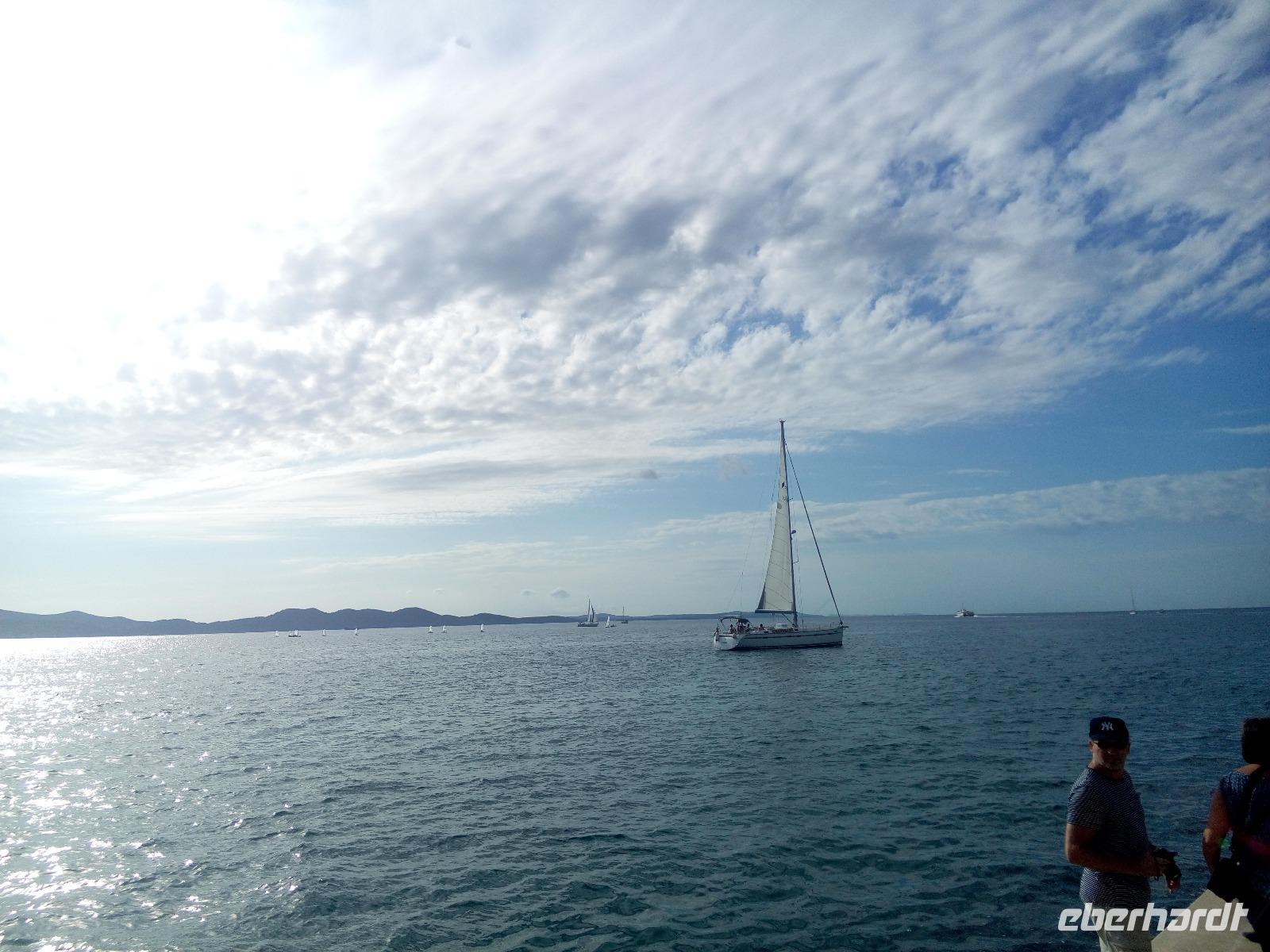 Nach dem Besuch von Nationalpark sind wir zurück, Richtung Zadar gefahren. Unterwegs haben wir bei der Brücke eine kleine Pause gemacht, wo man Brötchen und Obst aus dem Lunchpaket essen könnte. In Zadar haben wir dann einen Stadtrundgang gemacht. Einige haben sich für freie Zeit entschieden. Wir haben die wichtigsten Sehenswürdigkeiten von Zadar besucht. Besonders interessant schien uns die Meeresorgel. Unter der Strandpromenade in Zadar wurden die Rohre gelegt und jedes mal wenn eine große Welle kommt, hört man Töne. Das war einzigartig. Leider war die Zeit zu kurz und nachdem einige von uns schnell Souvenirs eingekauft haben, sind wir schon zurück zu unserem Schiff.