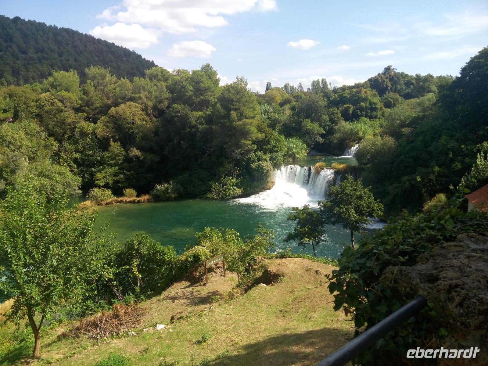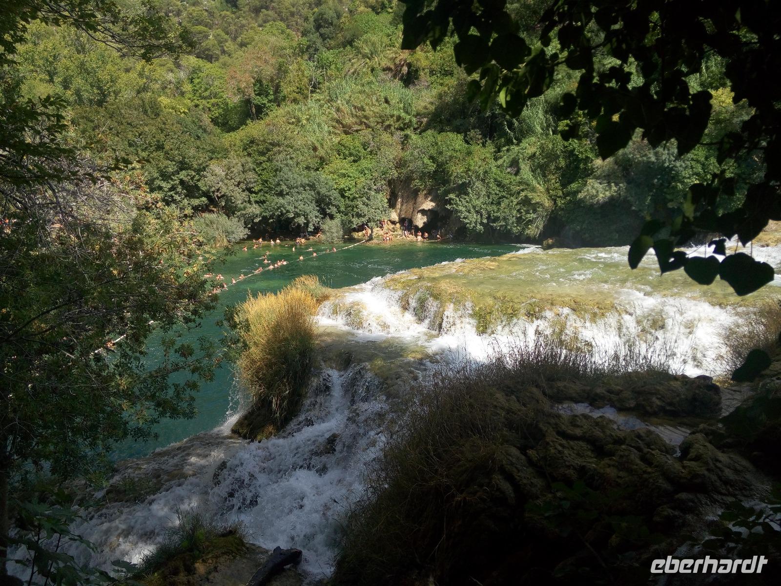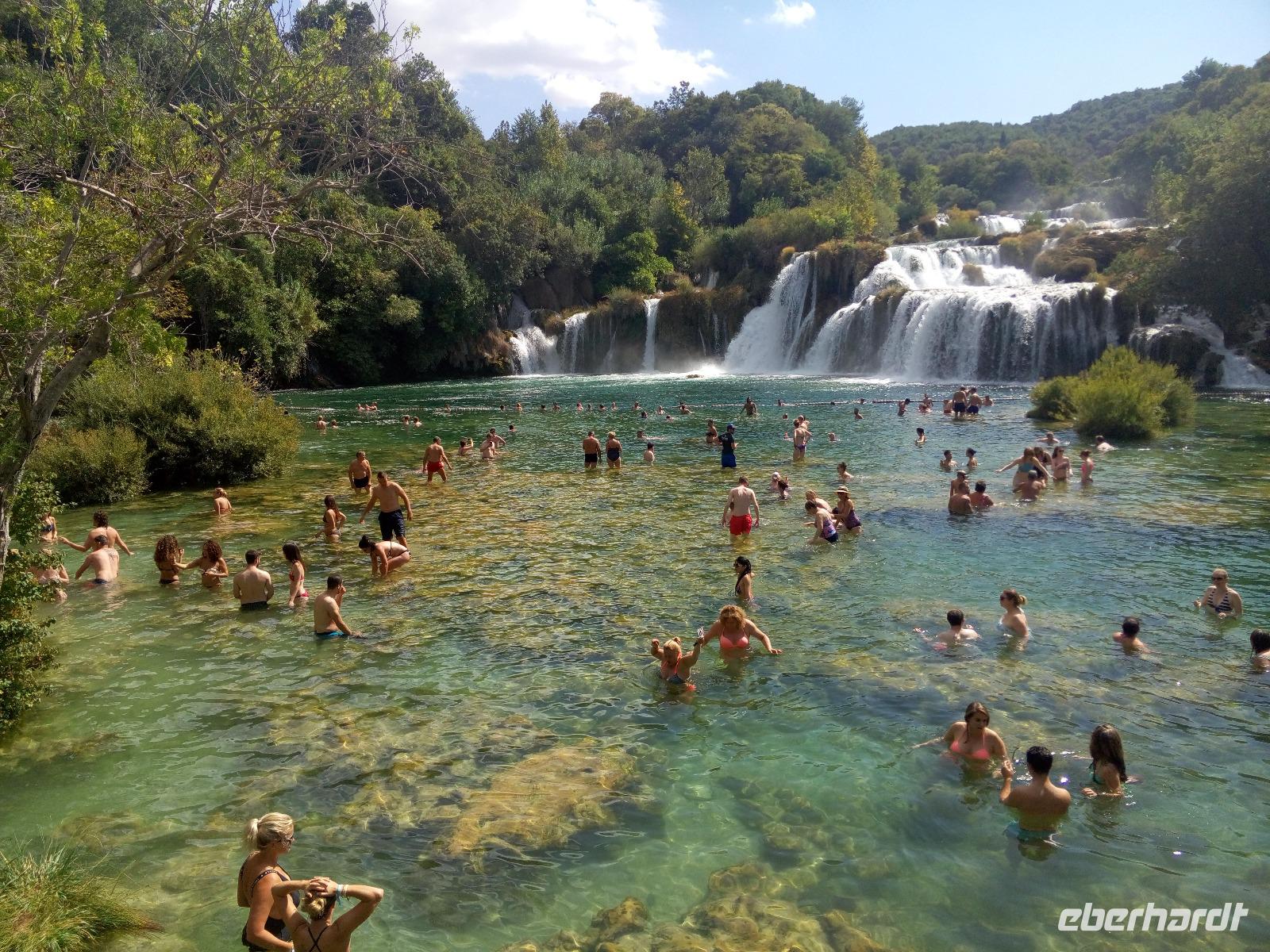 Über Nacht ging es an der kroatischen Küste entlang Richtung Zadar. Nach dem Frühstück holte uns unser Bus sofort ab. Diesmal war Jasminca unsere Reiseleitung. Erstmal sind wir zu den Wasserfallen gefahren. Da es noch etwas früh war, haben wir im Bus ein kleines Nickerchen gemacht. Die Reise dauerte ca. 1,5 Stunden. Und das hat sich absolut gelohnt!!! Der Fluss Krka ist 73 km lang. Auf diesem Fluss befinden sich 7 Wasserfälle. Im Nationalpark leben insgesamt etwa 860 Pflanzenarten und 220 Tierarten. Durch die Wasserfälle ist ein Weg aus Holz gebaut, den man bequem gehen kann. Bei dem großen Wasserfall kann man baden. Einige aus unserer Gruppe haben es gemacht. Das Wasser war warm.