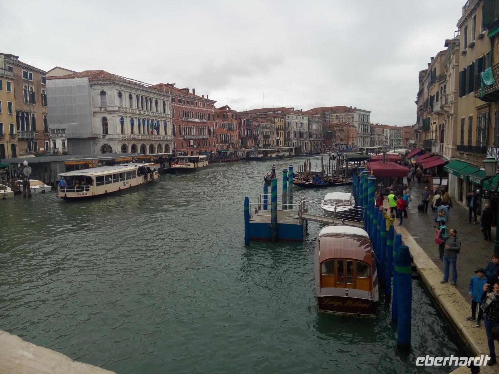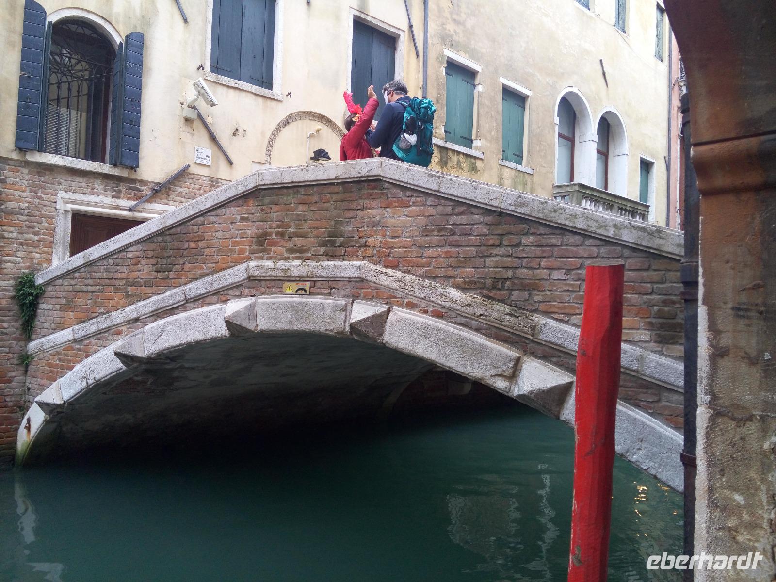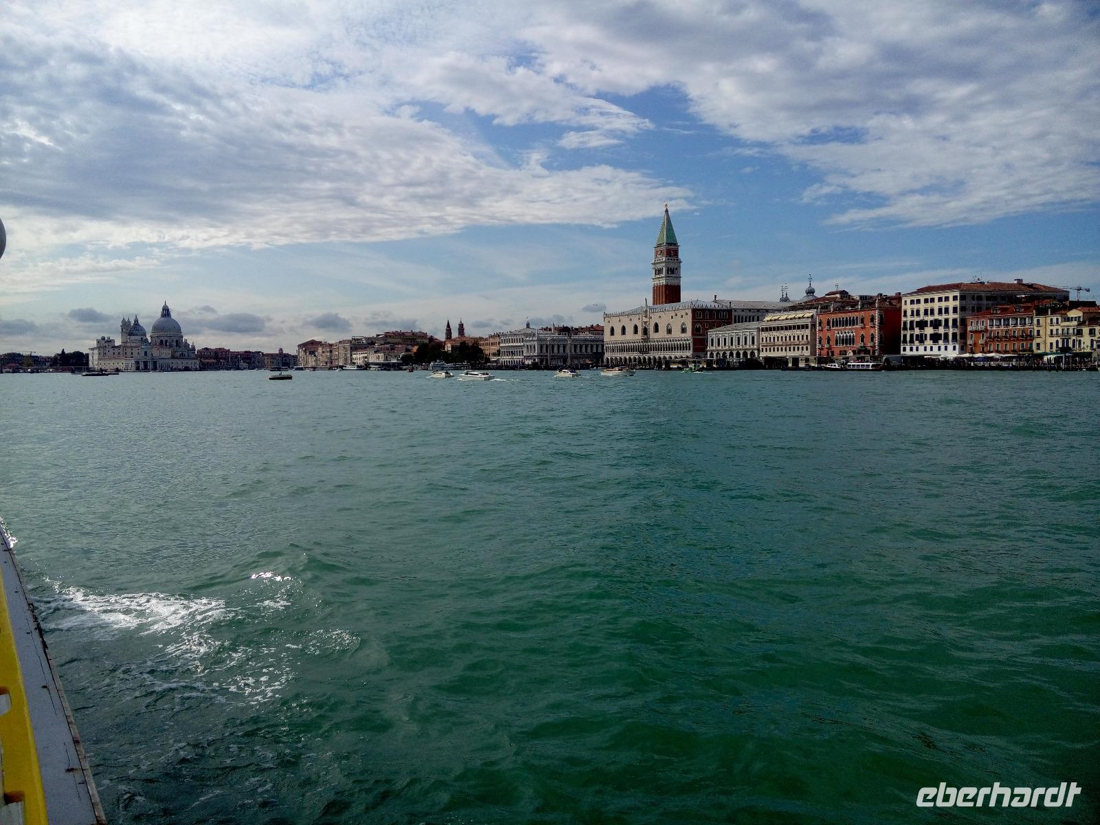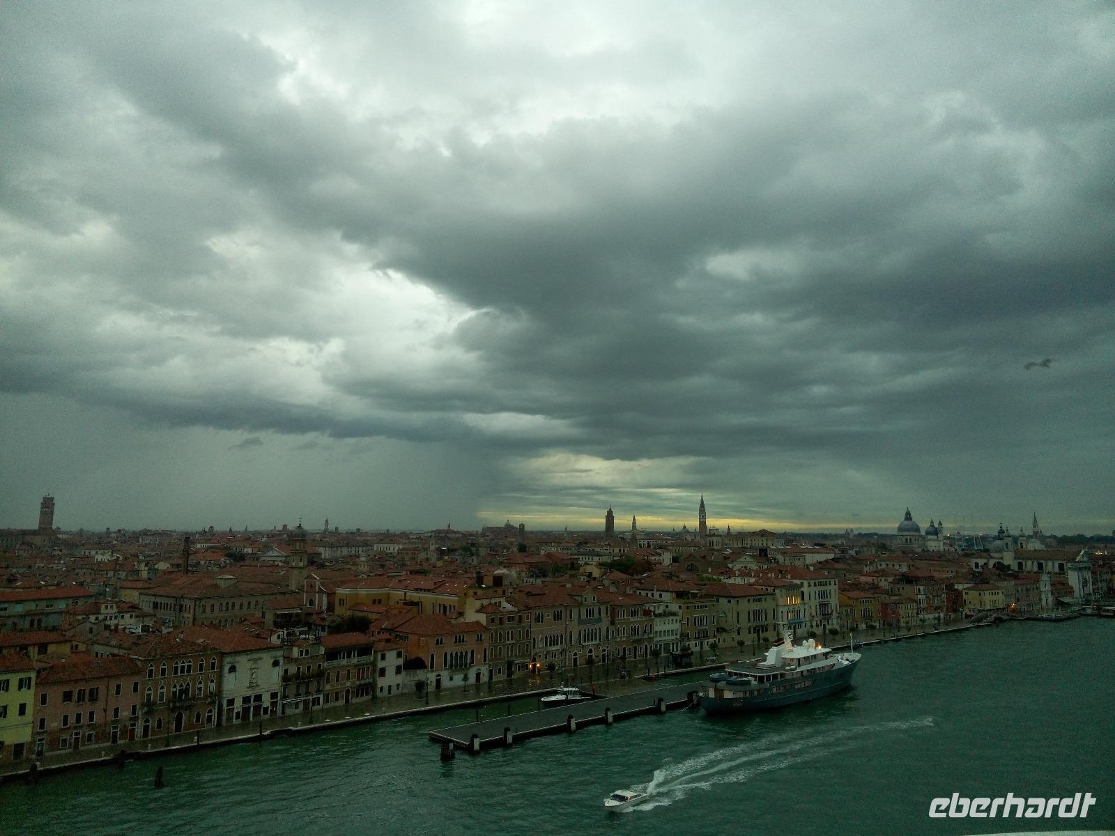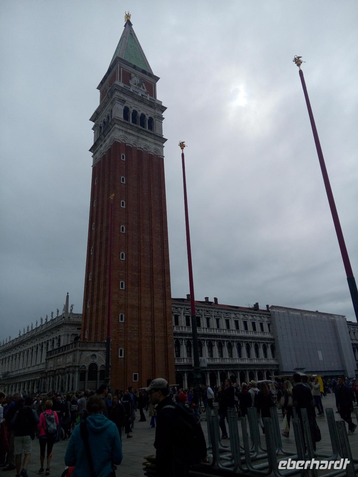 An diesem Tag war unser zweiter Versuch, Venedig bei dem schönen Wetter zu erwischen. Wieder gescheitert. Es hat nicht ein bisschen geregnet, es hat viel geregnet. Besonders zu dem Zeitpunkt als wir mit Alessia den Stadtrundgang gemacht haben. Da es sehr viele Touristen in der Stadt waren, haben sich einige entschieden, den schnellen Wassertaxi zu nehmen und sofort bei dem Markusplatz zu sein, wo unser Endtreffen war. Nicht alle haben den Stadtrundgang überstanden :-) Eine Frau aus unsere Gruppe hat sich spontan entschieden, ihren Weg allein zu dem Schiff zu schaffen. Nachdem sie dieses Abenteuer glücklich überstanden hat, wurde ich per Telefon informiert. Also, keine Sorge. Und das war unser Rekord an dem Tag. Von der Agentur, die die Audiogeräte vermietet, habe ich erfahren, dass aus der Gruppe von 70 Mann mehr als 25 sich verloren haben. So ist Venedig.