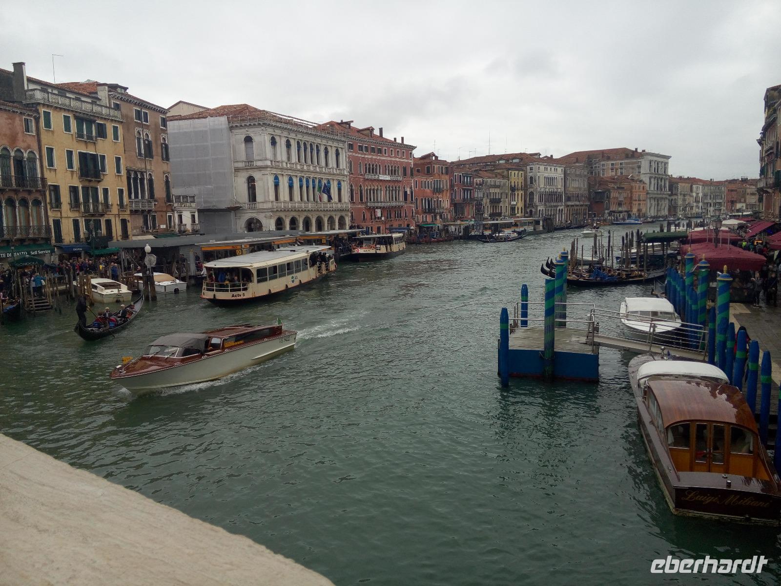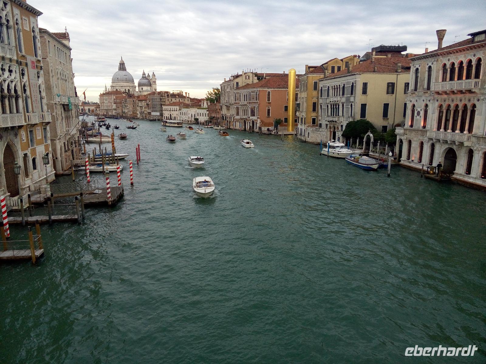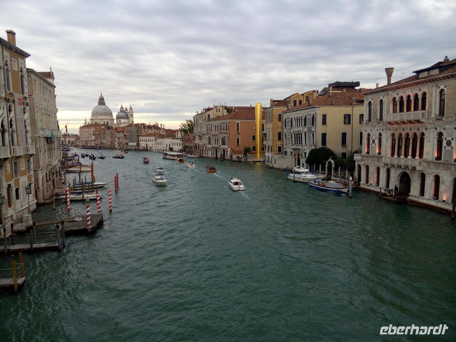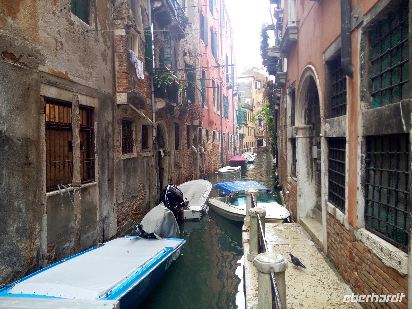 An diesem Tag war unser zweiter Versuch, Venedig bei dem schönen Wetter zu erwischen. Wieder gescheitert. Es hat nicht ein bisschen geregnet, es hat viel geregnet. Besonders zu dem Zeitpunkt als wir mit Alessia den Stadtrundgang gemacht haben. Da es sehr viele Touristen in der Stadt waren, haben sich einige entschieden, den schnellen Wassertaxi zu nehmen und sofort bei dem Markusplatz zu sein, wo unser Endtreffen war. Nicht alle haben den Stadtrundgang überstanden :-) Eine Frau aus unsere Gruppe hat sich spontan entschieden, ihren Weg allein zu dem Schiff zu schaffen. Nachdem sie dieses Abenteuer glücklich überstanden hat, wurde ich per Telefon informiert. Also, keine Sorge. Und das war unser Rekord an dem Tag. Von der Agentur, die die Audiogeräte vermietet, habe ich erfahren, dass aus der Gruppe von 70 Mann mehr als 25 sich verloren haben. So ist Venedig.