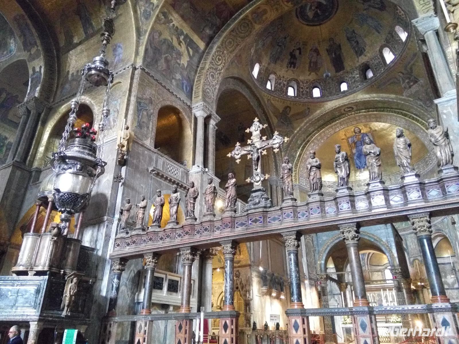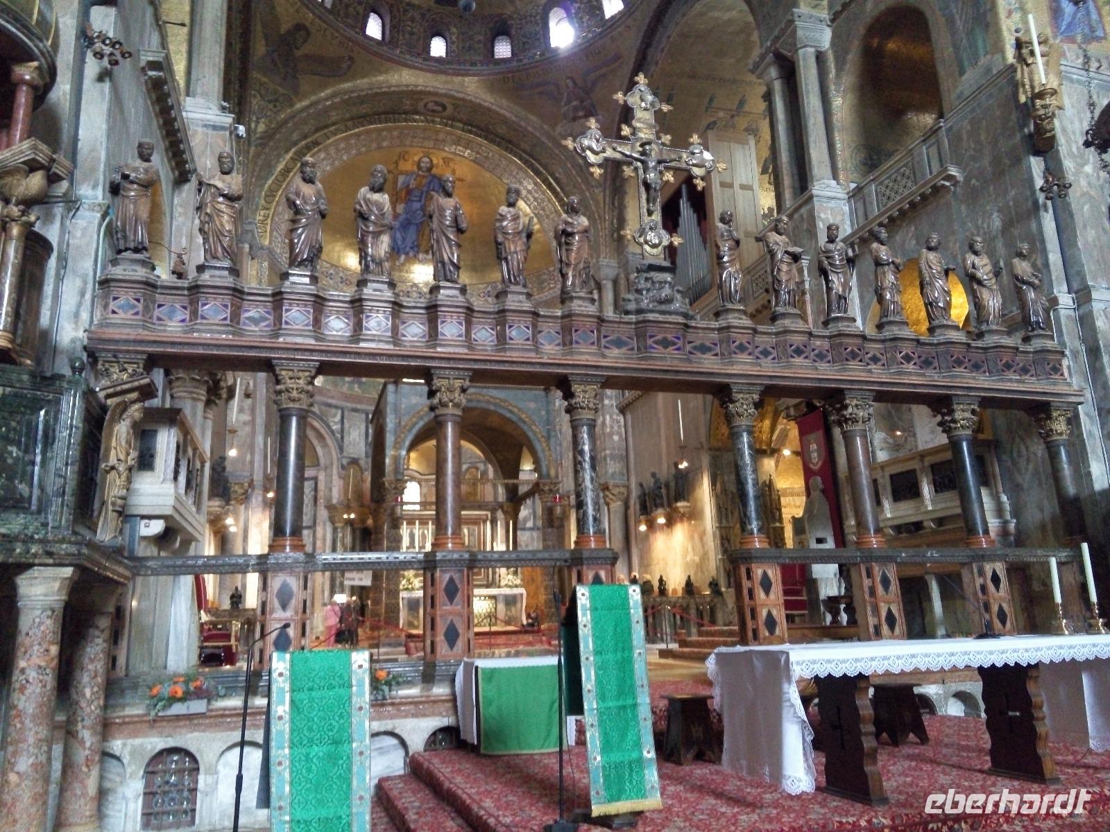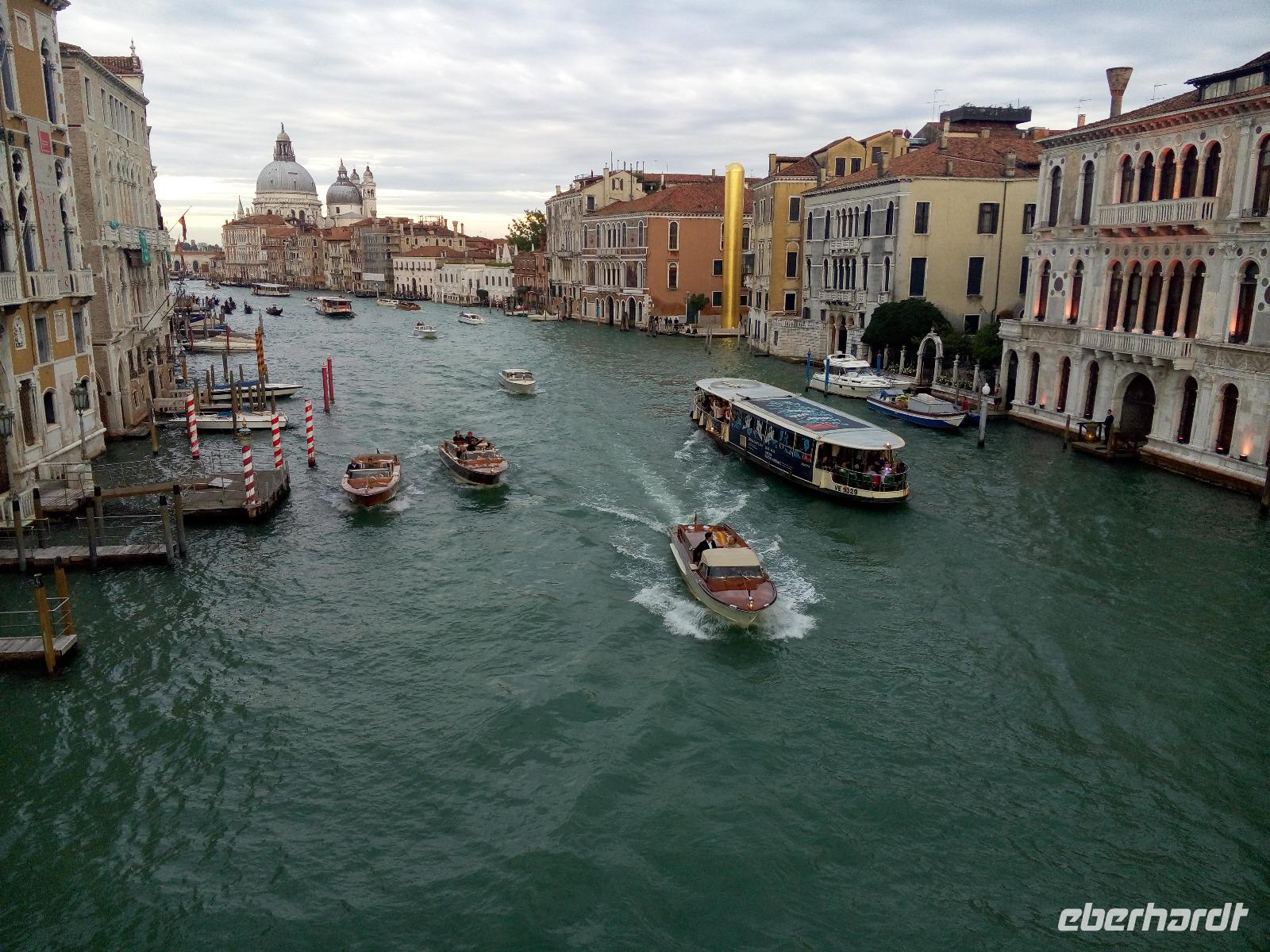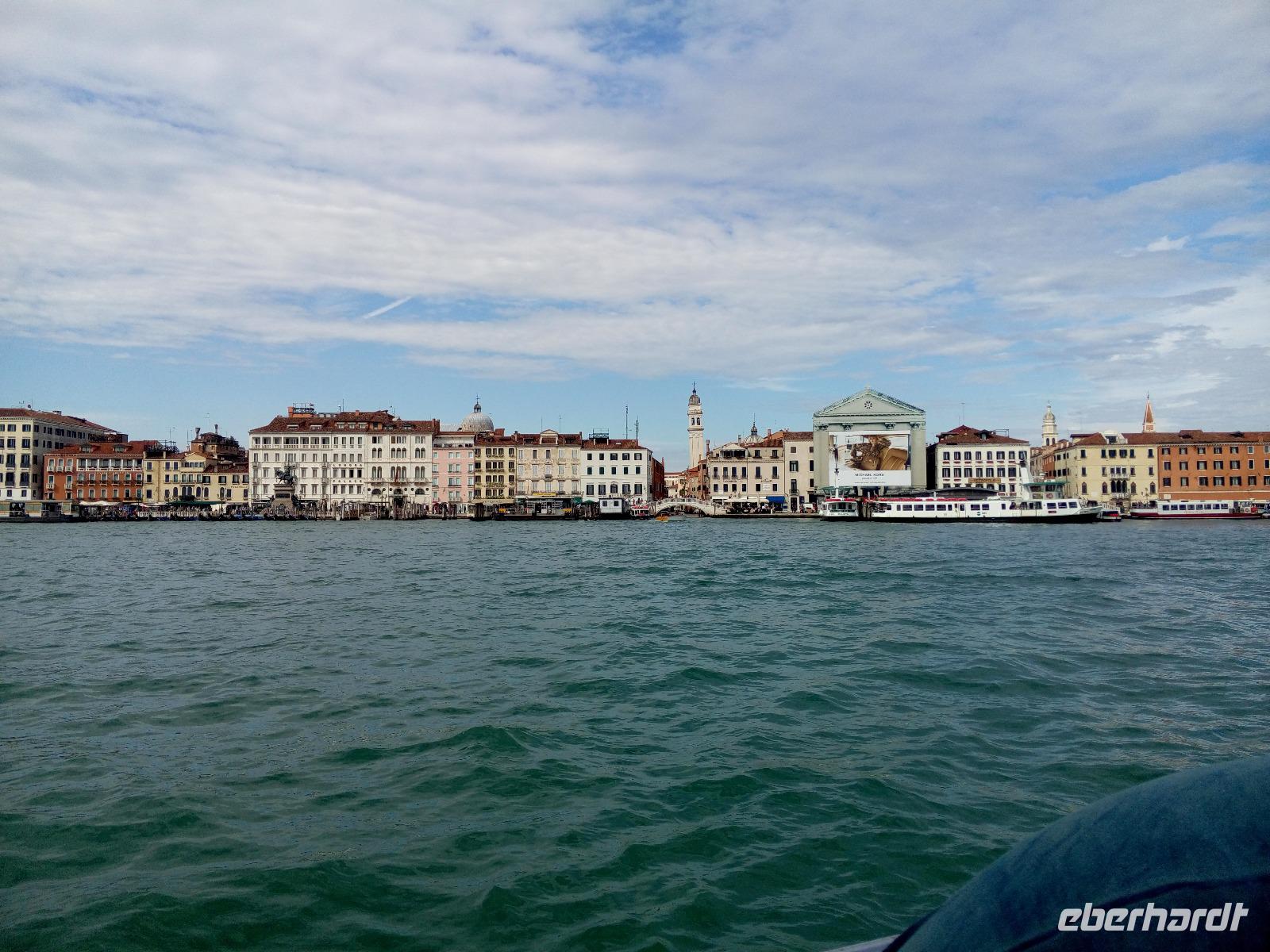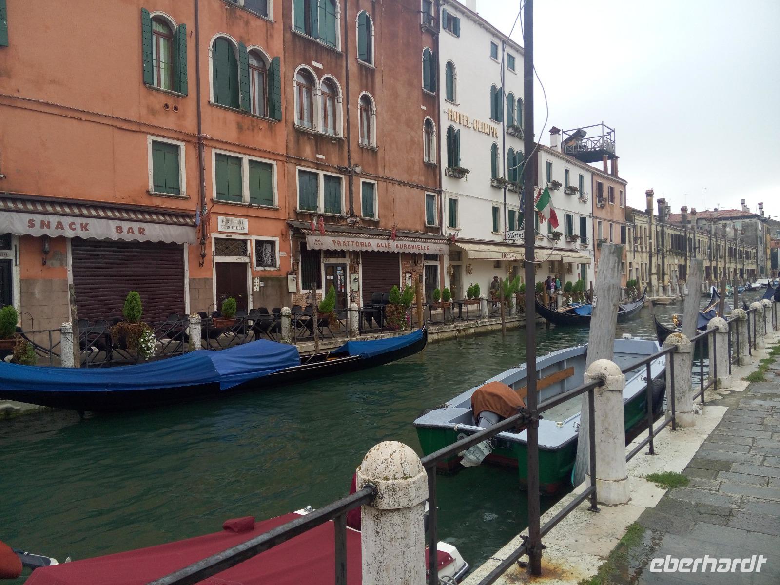 An diesem Tag war unser zweiter Versuch, Venedig bei dem schönen Wetter zu erwischen. Wieder gescheitert. Es hat nicht ein bisschen geregnet, es hat viel geregnet. Besonders zu dem Zeitpunkt als wir mit Alessia den Stadtrundgang gemacht haben. Da es sehr viele Touristen in der Stadt waren, haben sich einige entschieden, den schnellen Wassertaxi zu nehmen und sofort bei dem Markusplatz zu sein, wo unser Endtreffen war. Nicht alle haben den Stadtrundgang überstanden :-) Eine Frau aus unsere Gruppe hat sich spontan entschieden, ihren Weg allein zu dem Schiff zu schaffen. Nachdem sie dieses Abenteuer glücklich überstanden hat, wurde ich per Telefon informiert. Also, keine Sorge. Und das war unser Rekord an dem Tag. Von der Agentur, die die Audiogeräte vermietet, habe ich erfahren, dass aus der Gruppe von 70 Mann mehr als 25 sich verloren haben. So ist Venedig.