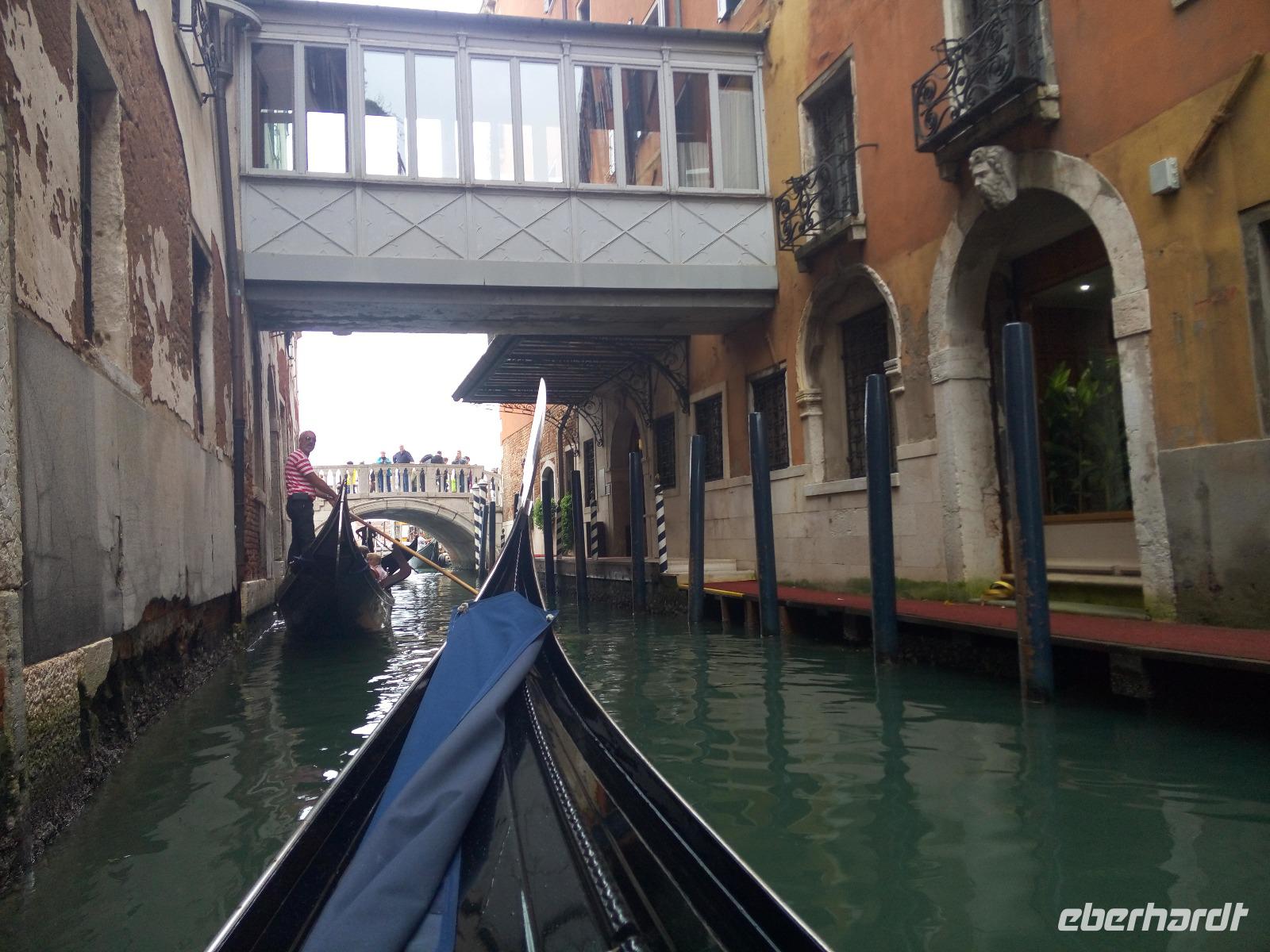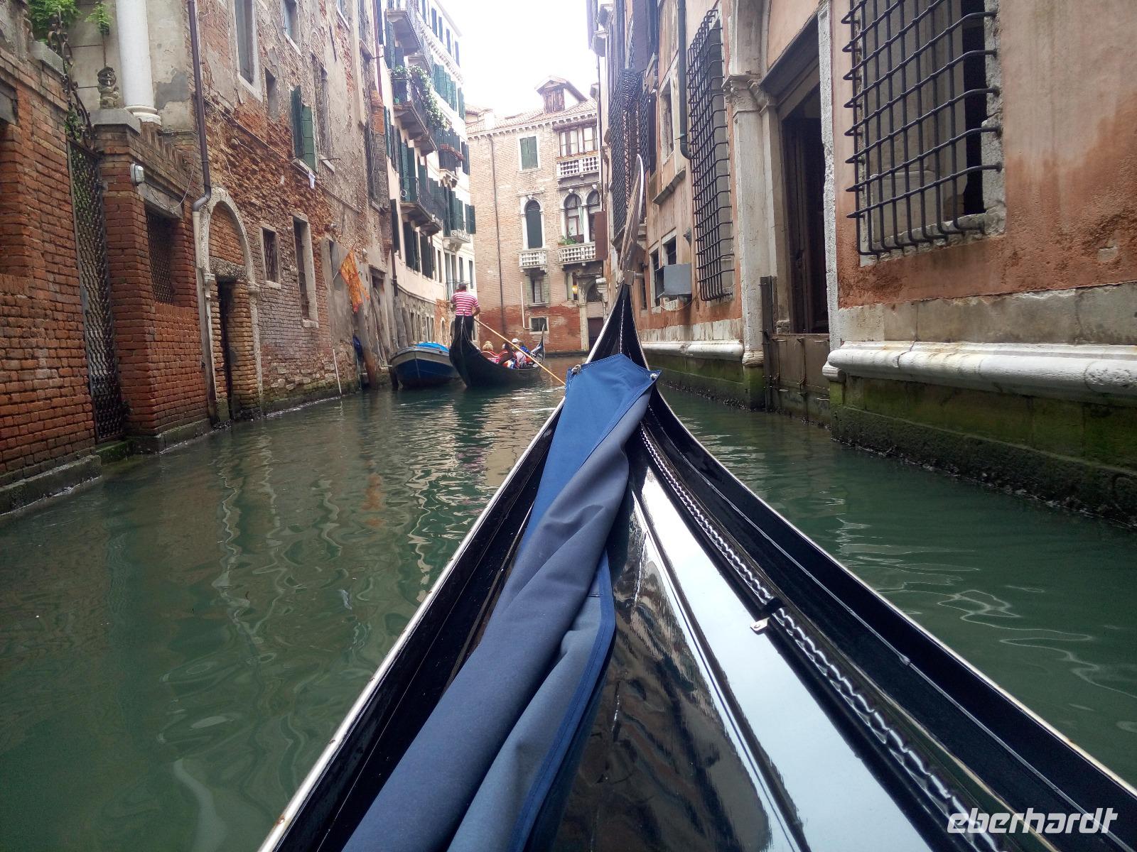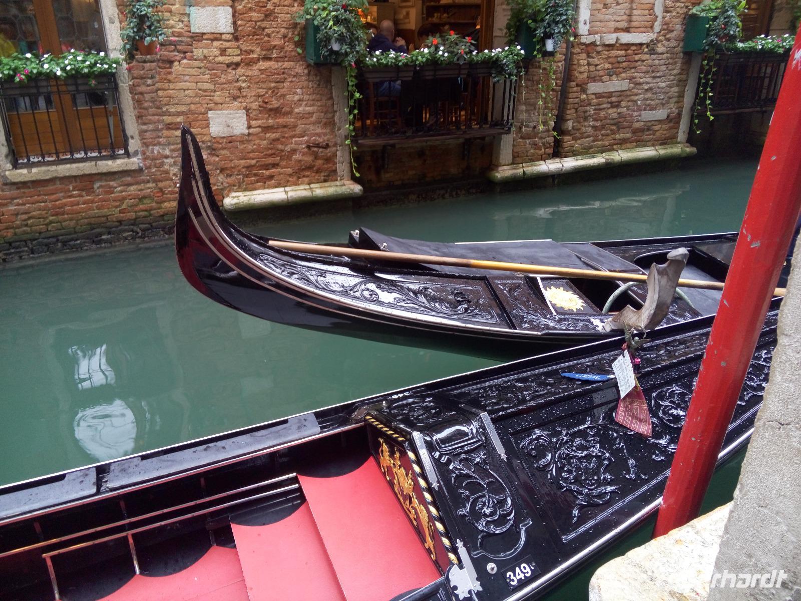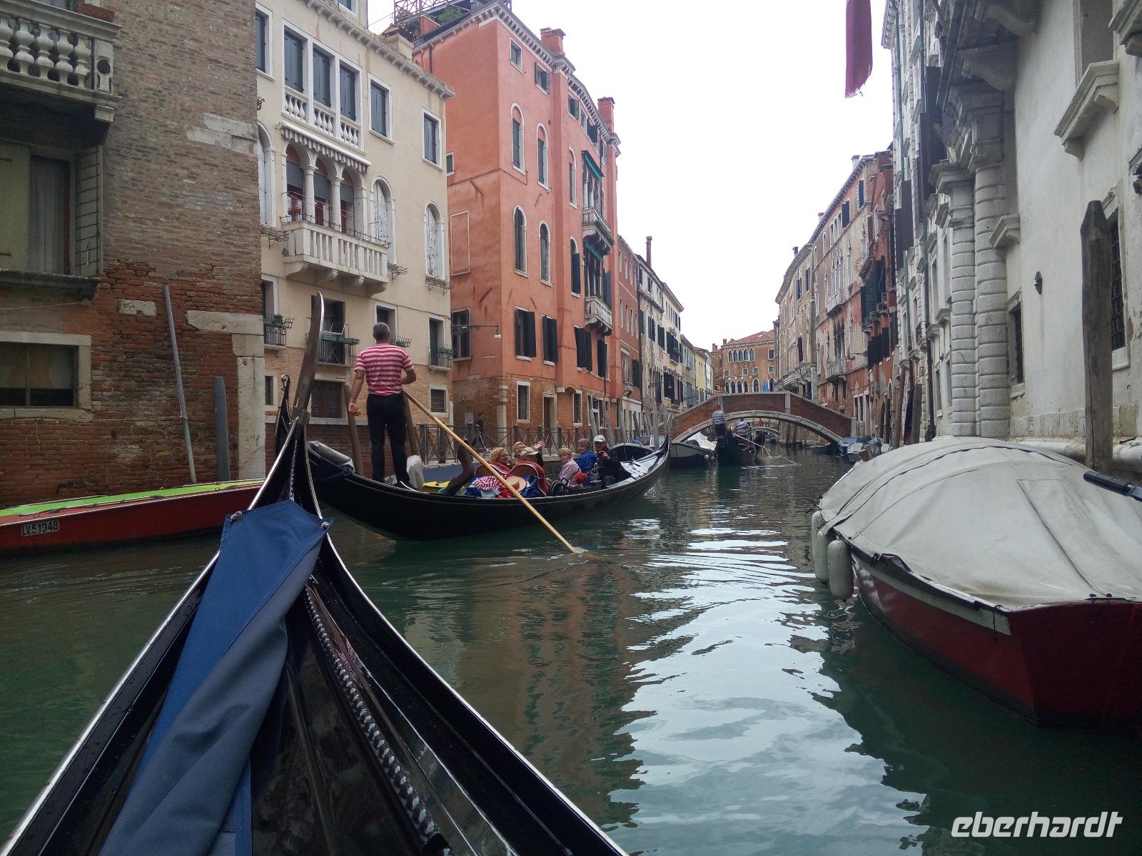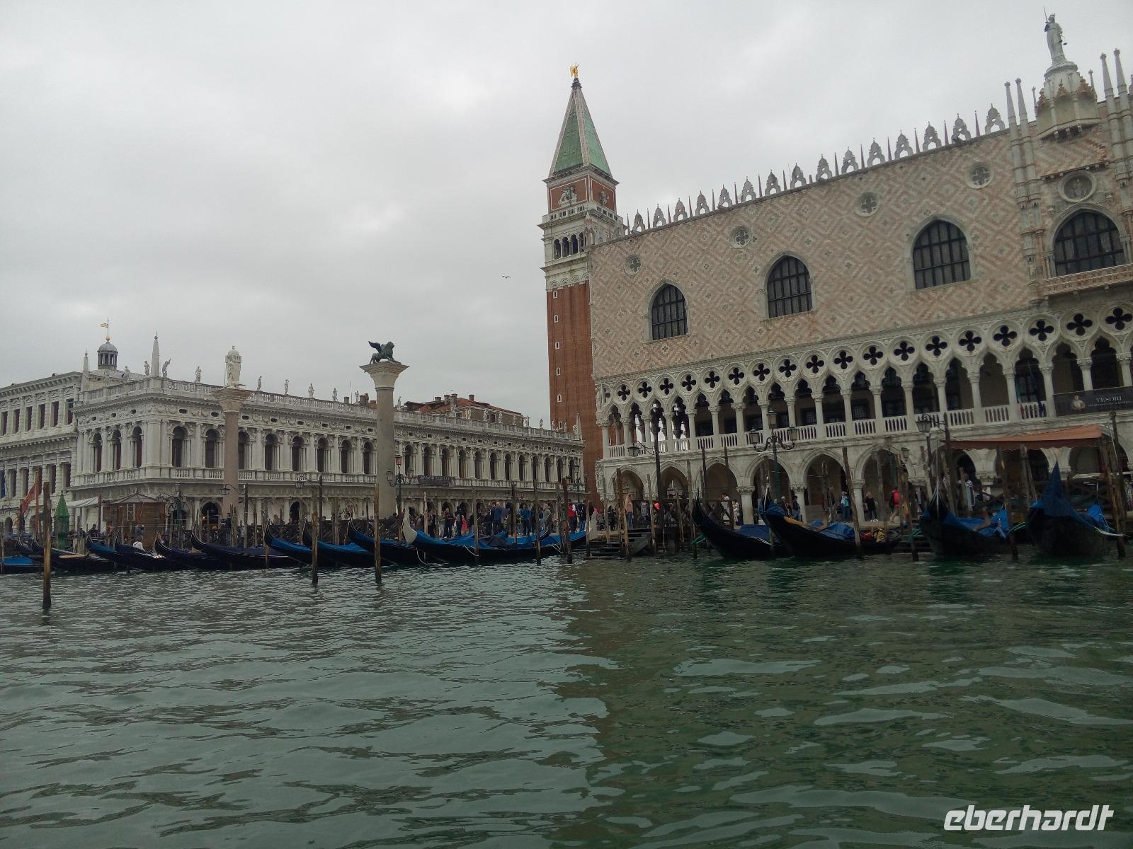 Nass, müde, aber gut gelaunt haben wir unseren Weg den kleinen Gassen entlang, über die Rialtobrücke zu dem Markusplatz gemacht. Das Wetter hat sich verbessert, es hat nicht mehr geregnet. 11 Personen aus unserer Gruppe und ich haben uns entschieden, die Gondel zu mieten. Heutzutage kostet es 80 Euro pro Gondel. Die Gondel ist für maximal 6 Personen geeignet. So hatten wir die Möglichkeit, die Stadt vom Wasser nochmal zu sehen.