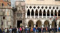 wird beschliessen wir eine kleine Kaffeepause zu machen. Die Gruppe ist völlig vom Regen durchgeweicht und will am liebsten wieder aufs Schiff. Lucia und ich beschliessen den Rundgang zu verkürzen und wir versuchen den Bootscharter 2 Stunden eher zu bekommen. Dank Lucia gelingt uns das auch. Wir setzen unser Stadtführung fort und sehen noch den Markusplatz und die Seufzerbrücke danach begeben wir uns zur Schiffsanlegestelle.