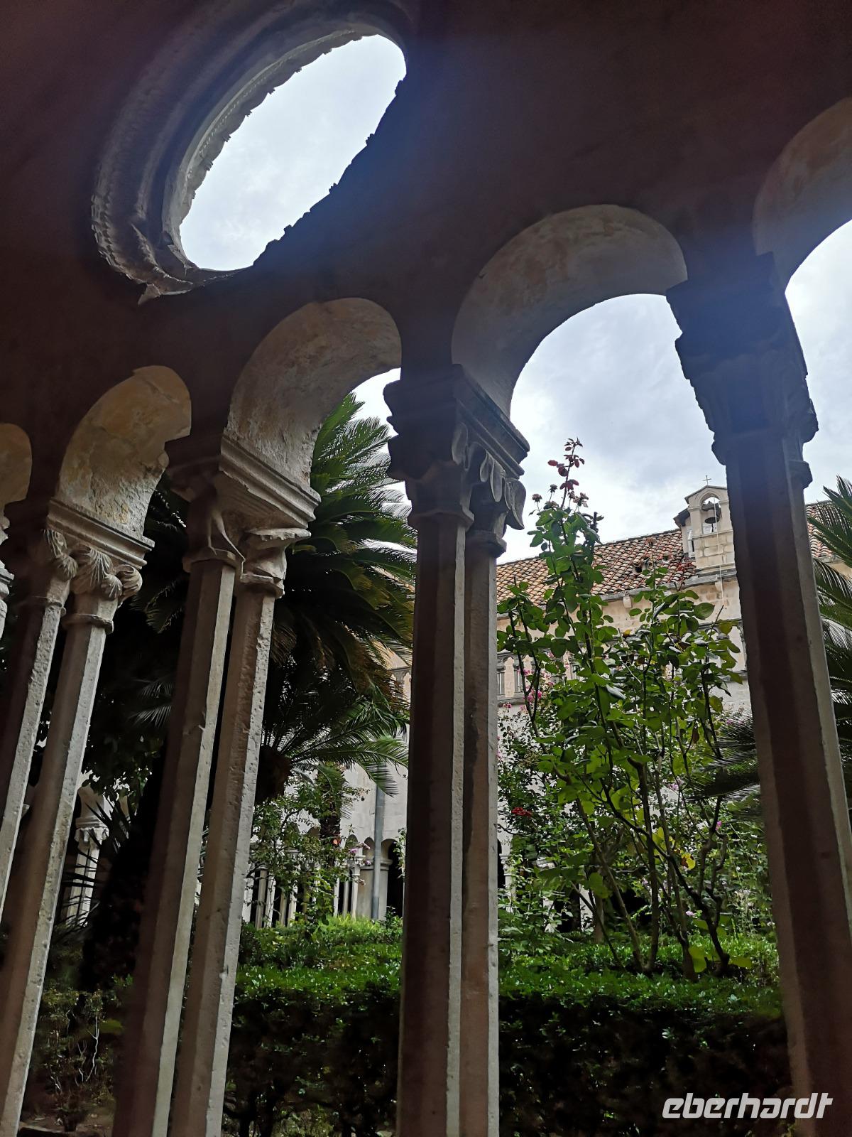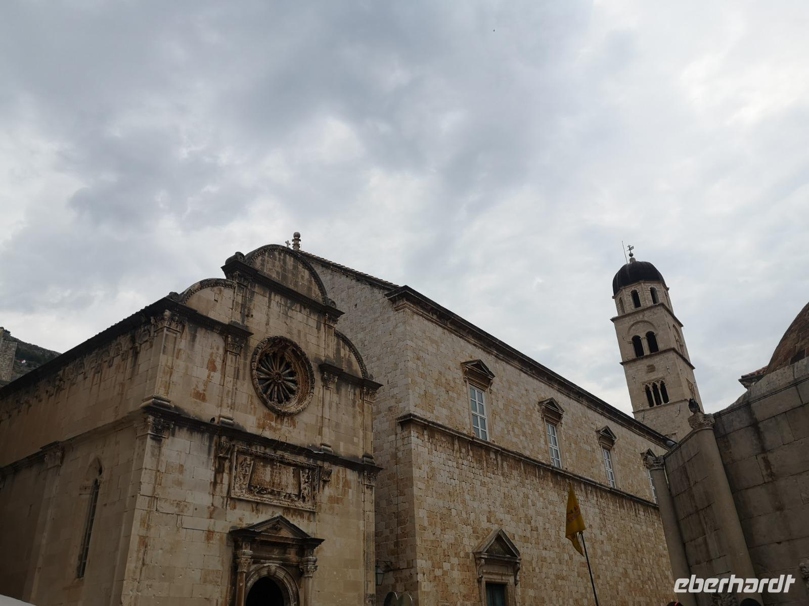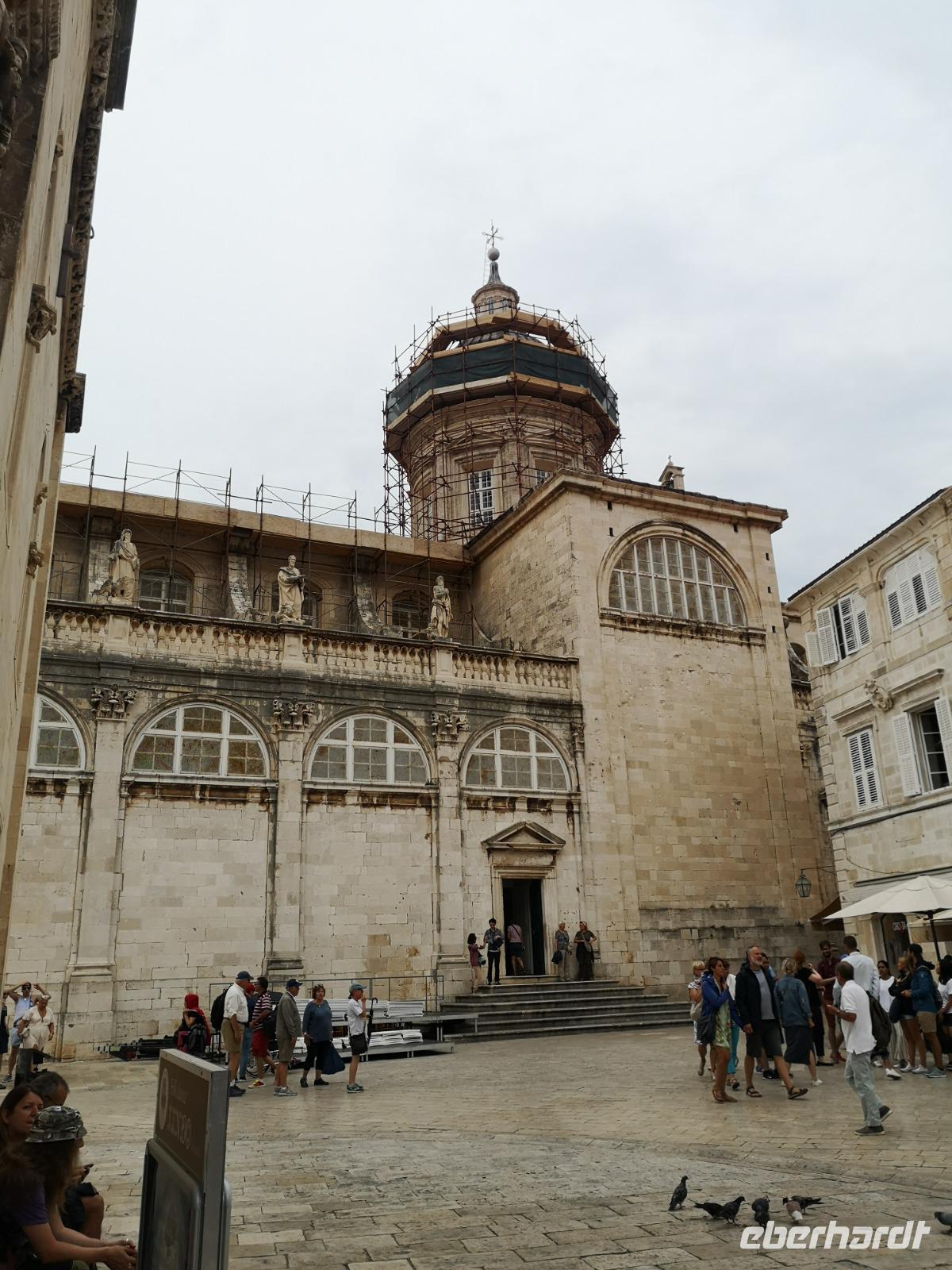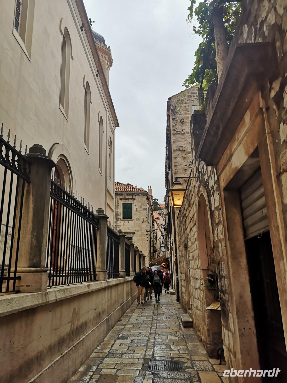 Der Himmel verdunkelt sich als wir in Dubrovnik anlegen und zu unserem Eberhardt-Ausflug aufbrechen. Begleitet von einem ersten kurzen Schauer fahren wir hinauf zum Aussichtspunkt und lauschen unserer Reiseleiterin Vlatka die uns von der Geschichte der Stadt erzählt. Wir machen das ein oder andere Foto bevor uns unser Bus hinunter an den Rand der Altstadt bringt. Diese ist nur zu Fuß zugänglich, was wie uns Vlatka erklärt, einer der Faktoren ist warum immer weniger Einheimische in der Altstadt leben. Vlatka führt uns durch die Gassen, vorbei an serbisch-orthodoxen und römisch-katholischen Kirchen, einem lebhaften Markt bis hin zum Hafen von Dubrovnik. Wir teilen uns auf, um die Altstadt auch individuell zu erkunden, als der Regen über uns hineinbricht. Die ersten flüchten sich zurück zum Kreuzfahrt-Hafen, während andere in den vielen Cafés und Restaurants entlang der Hauptstraße Schutz finden.