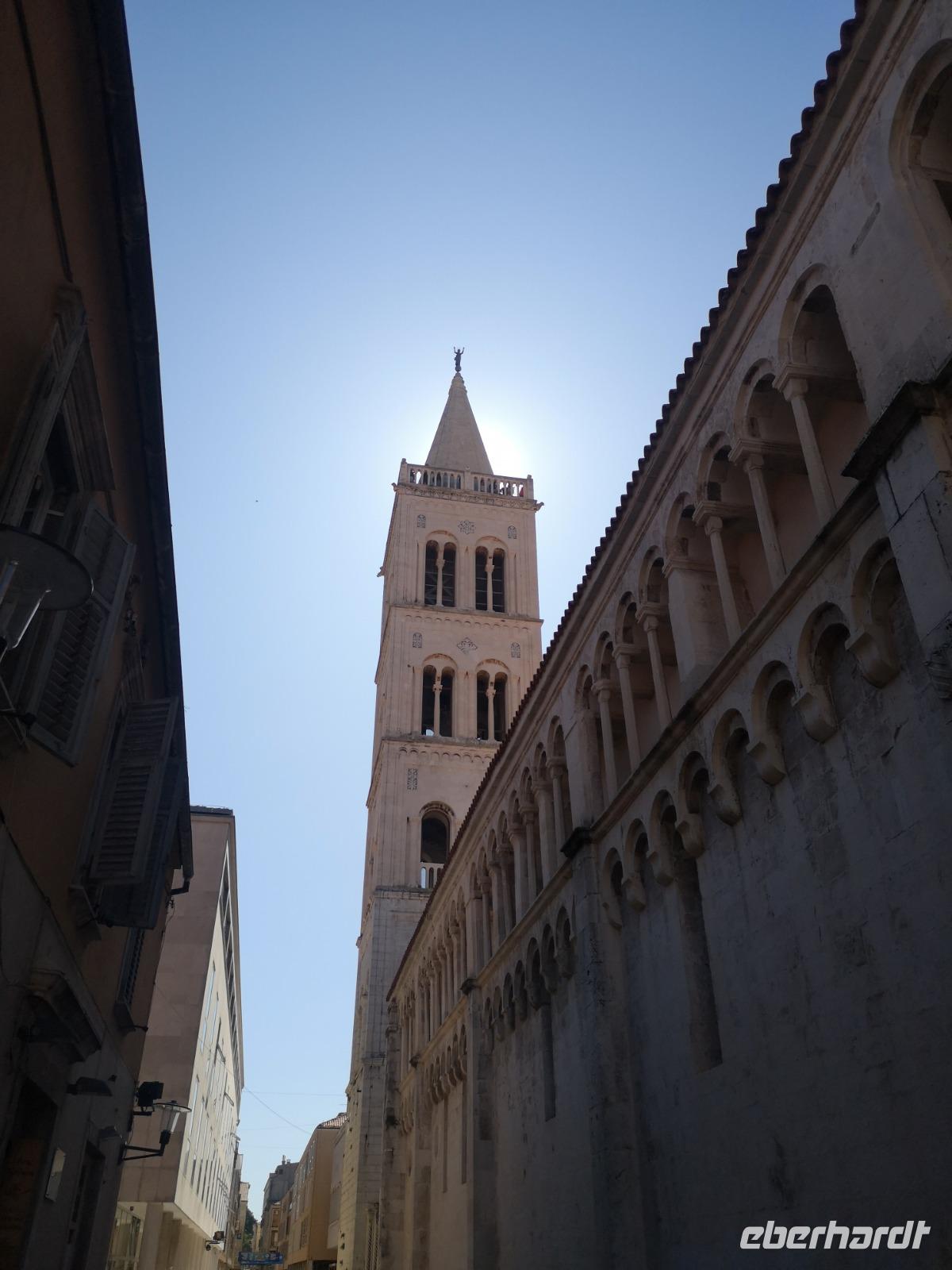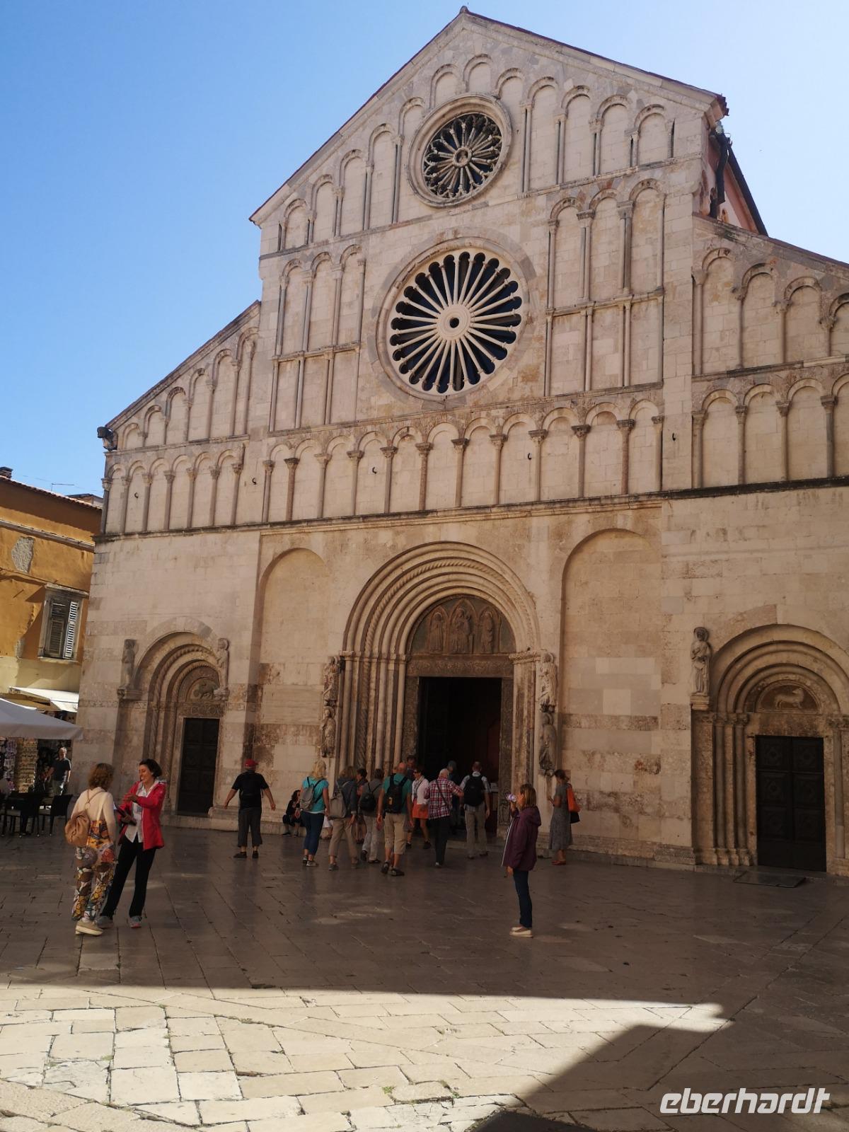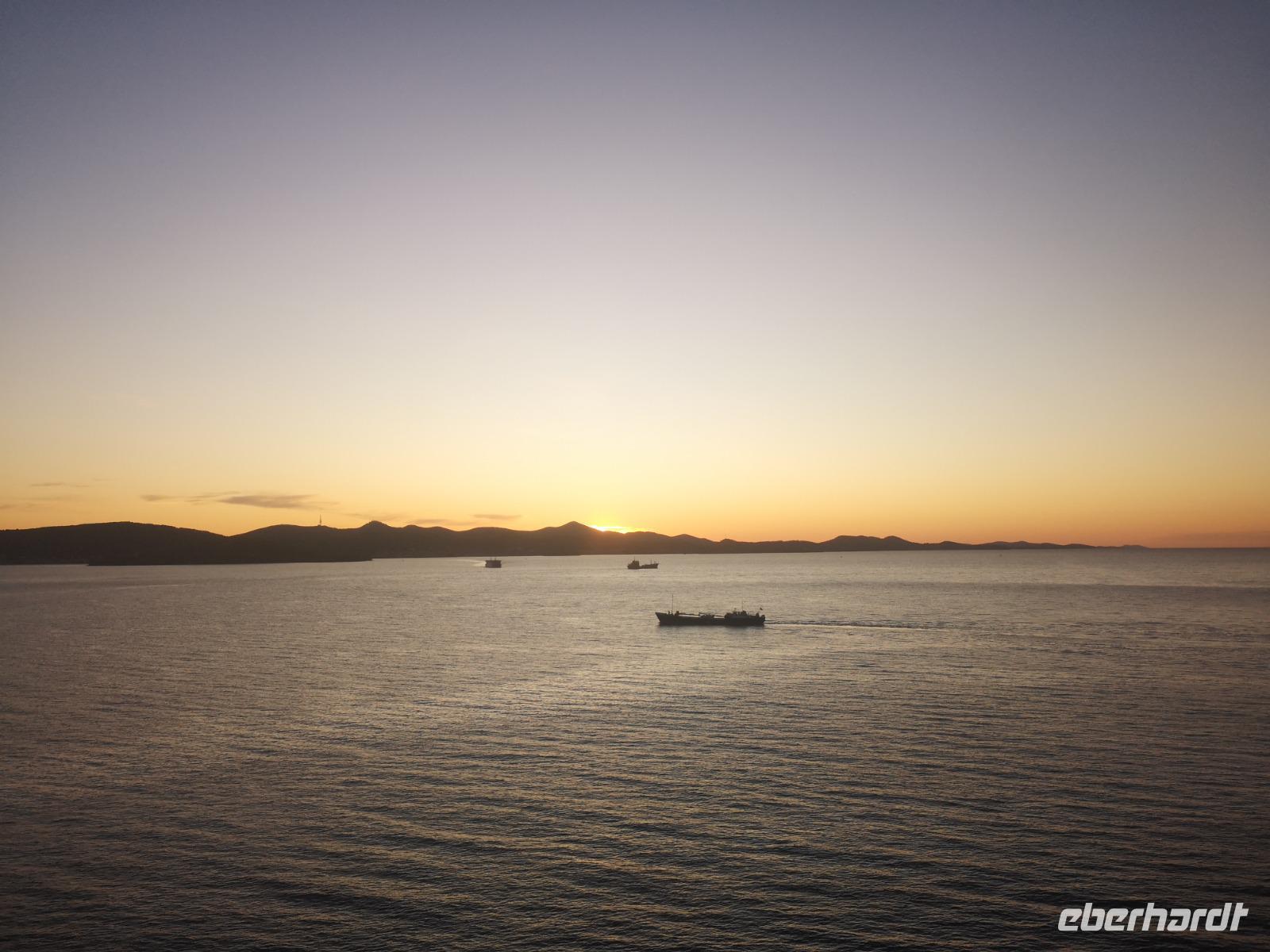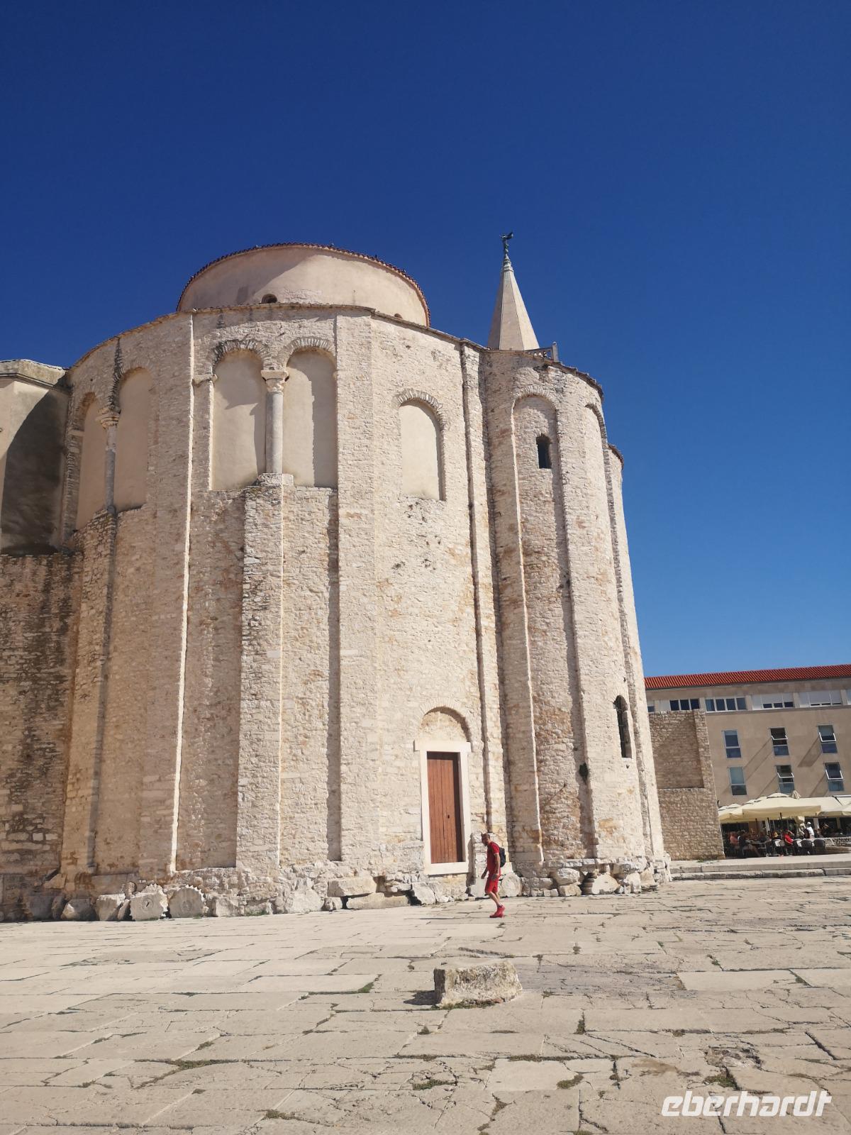 Die Aida bringt uns entlang der Kroatischen Küste, vorbei an zahlreichen kleinen Inseln nach Zadar. Auch die Sonne ist zurückgekehrt, als wir hier zu unserem Eberhardt-Ausflug an Land gehen. Am Gruß der Sonne beginnen wir unseren Rundgang durch Zadar mit unserer Reiseleiterin Vernonika. Entlang der Meerpromenade spazieren wir in die Altstadt, vorbei an der Meeresorgel dessen Klängen wir lauschen. Vorbei an diesen modernen Sehenswürdigkeiten geht es für uns in den Altstadtkern, in dem bis heute Überreste der 3000 Jahre langen Geschichte Zadars zu finden sind. Römische Säulen im Fundament einer früh-mittelalterlichen Kirche, die Kathedrale der heiligen Anastasia und die Überreste der alten Stadtmauern zeugen bis heute von der langen Geschichte der Stadt. Nach mehrfacher Zerstörung wurde Zadar immer wieder aufgebaucht, erzählt uns Veronika, und stieg immer wieder wie ein Phönix aus der Asche - stärker und schöner als zuvor.