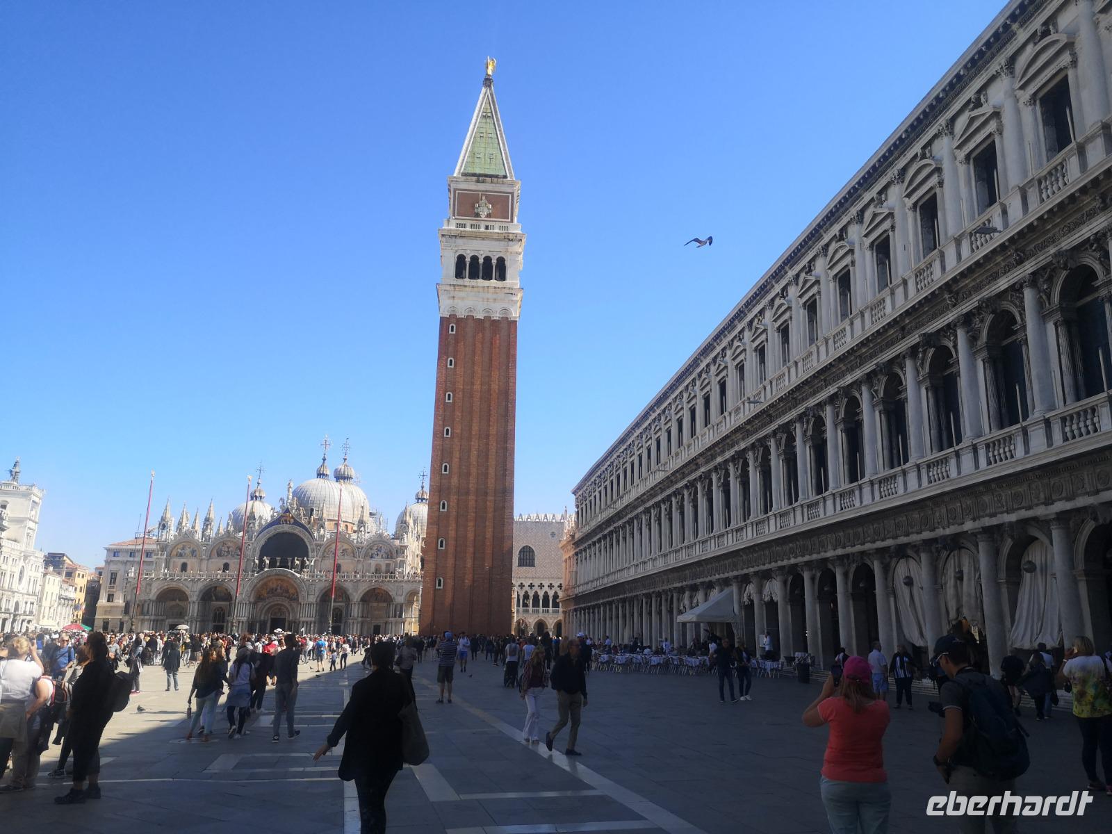 Am Morgen erreichen wir Venedig und treffen uns zum letzten gemeinsamen Landausflug. Mit dem Peoplemover geht es ins Stadtzentrum von Venedig. Am Piazzale Roma erwartet uns unsere Stadtführerin Barbara. Ausgestattet mit „Flüstergeräten" machen wir uns auf den Weg durch Venedig, Barbaras Stimme immer im Ohr. Mit 4 weiteren Schiffen um Hafen und dem wunderbaren Wetter sind wir nicht allein in der Stadt und müssen uns an einigen Stellen durch die Massen drängeln. Wir erreichen schließlich den Markusplatz mit dem beeindruckenden byzantinischen Markusdom. Hier verabschieden wir uns von Barbara und verbringen noch ein wenig Zeit individuell in der Stadt. Am frühen Nachmittag werden wir schließlich von einem kleinen Boot am Giudecca-Kanal abgeholt und zurück zum Kreuzfahrthafen und unserer AidaBlu gefahren. Ein letzter Sonnenuntergang und eine letzte Nacht an Bord der AidaBlu bevor es morgen zurück in Richtung Heimat geht.