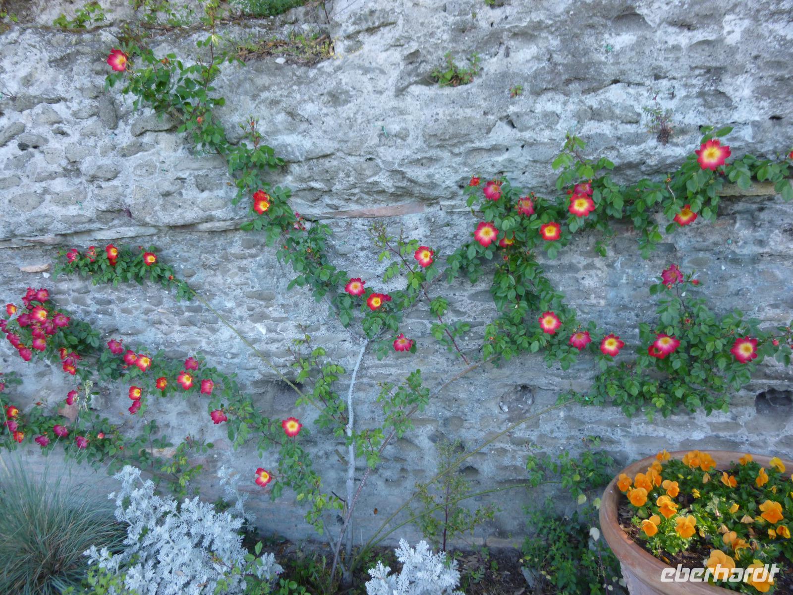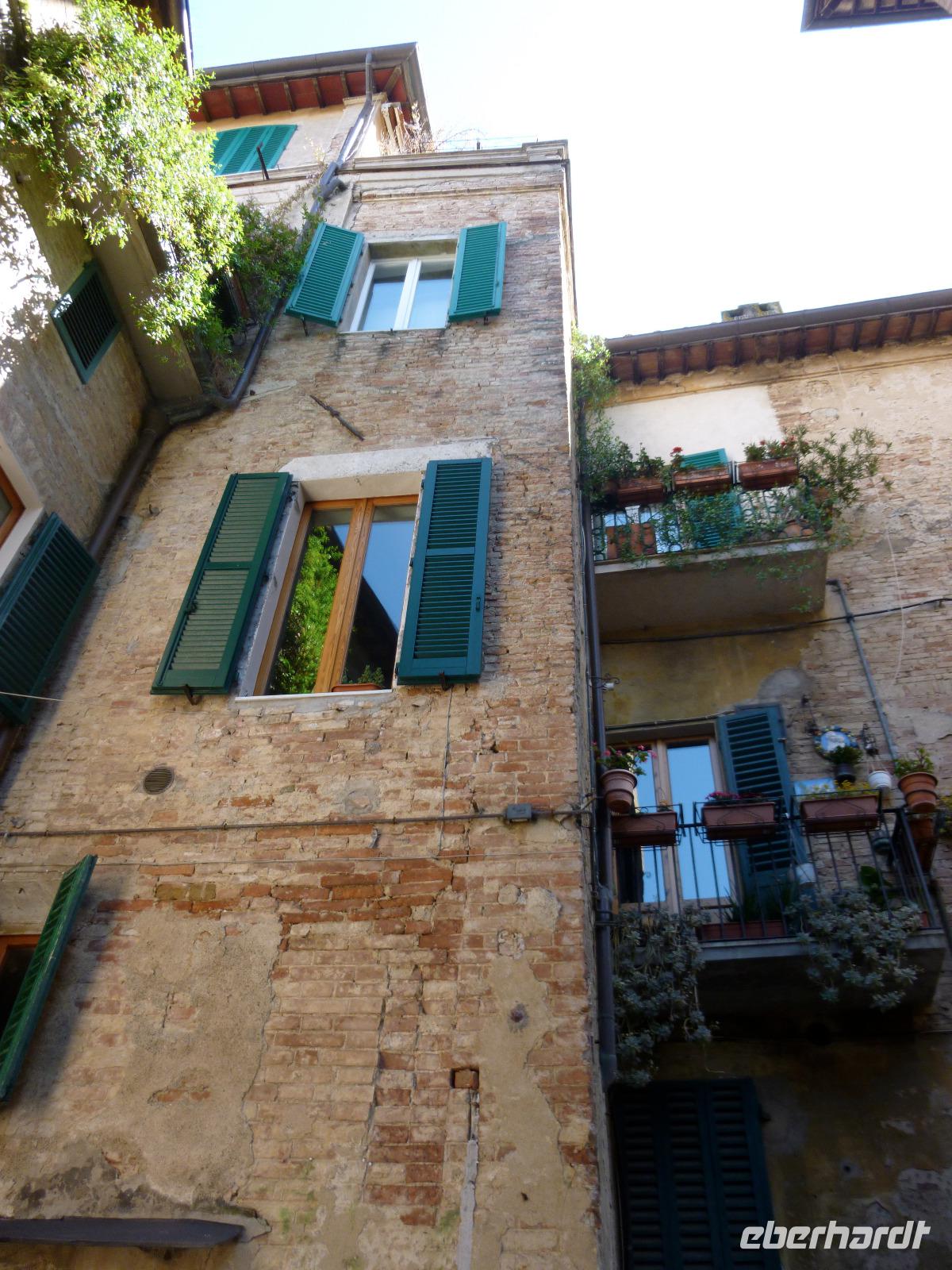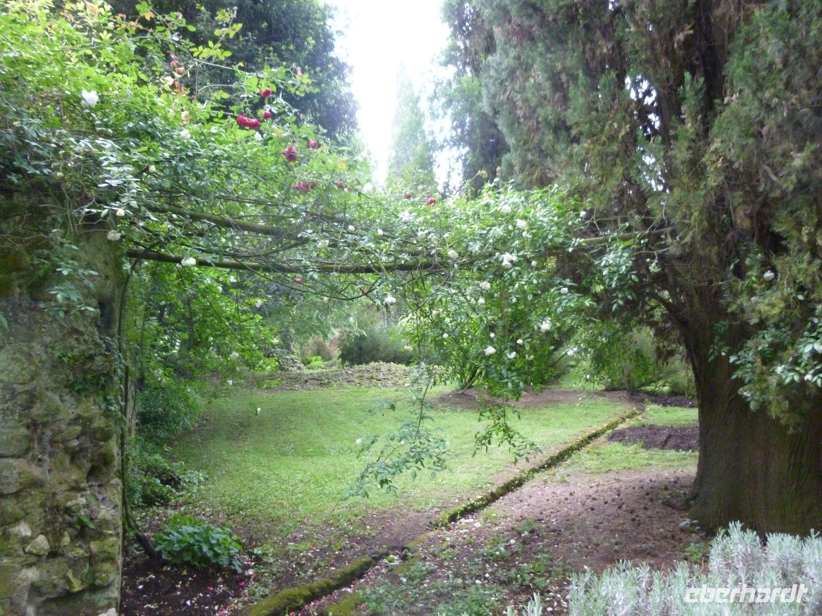 Für Stadtgärtchen blieb nur wenig Platz, auch bot der eng umgrenzte und von der Außenwelt abgeschirmte mittelalterliche Garten neben Rasenbänken traditionell Beete und Spaliere, bei denen die Rose eine besondere Rolle spielte. Gärten mit Nutzpflanzen, Gärten für kontemplative Versenkung oder als Paradiesgärtlein zur Verehrung der irdischen und himmlischen Liebe waren typisch für diese Zeit und sind meist nur in Klöstern oder Wandmalereien erhalten, wie bei Lorenzettis freskierter „Guter Regierung" im Rathaus zu Siena. Etliche von uns waren im Rathaus, im Dom oder bummelten durch die lebhaften Gassen.