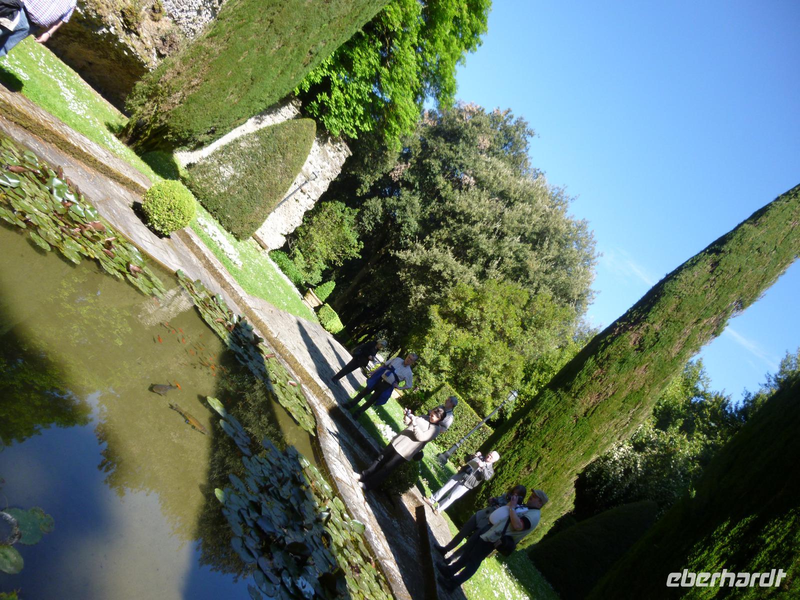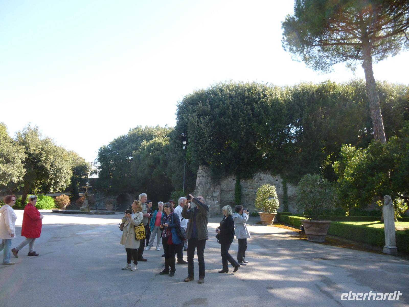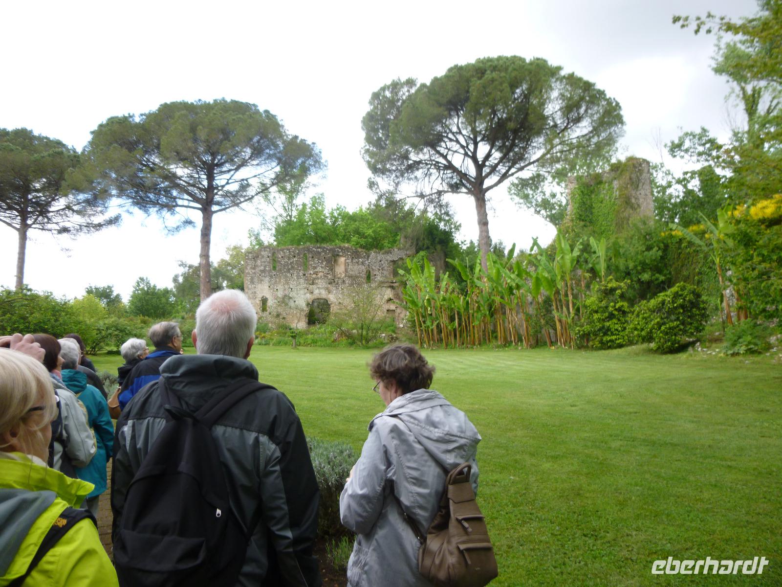 Gestärkt von einem leckeren Mittagessen im Städtchen versammelten wir uns zunächst in den Palasträumen des Kardinals d'Este in der Hoffnung auf ein Ende des Regens, der glücklicherweise bereits nachließ und schließlich ganz aufhörte, als wir den Garten betraten.