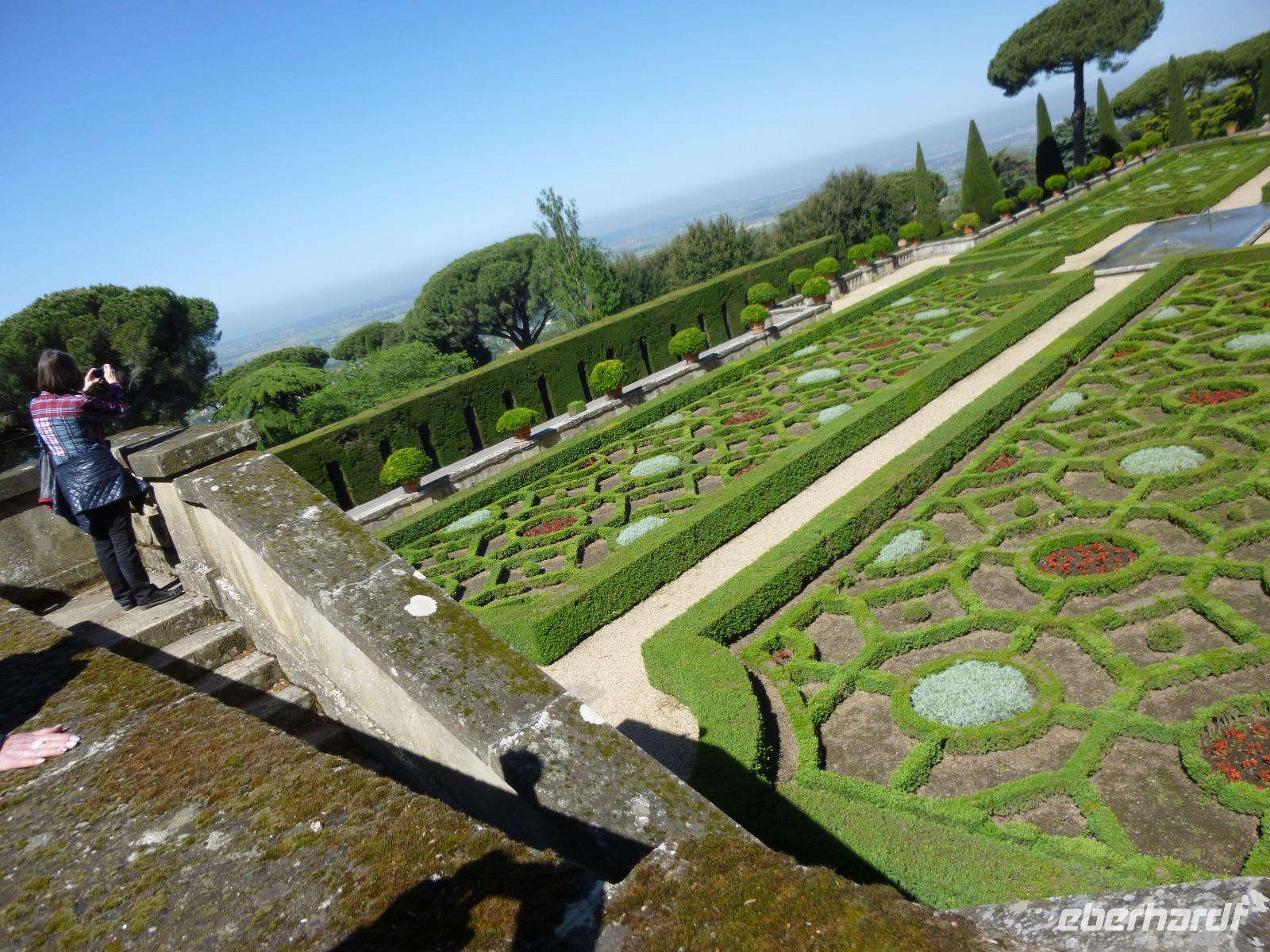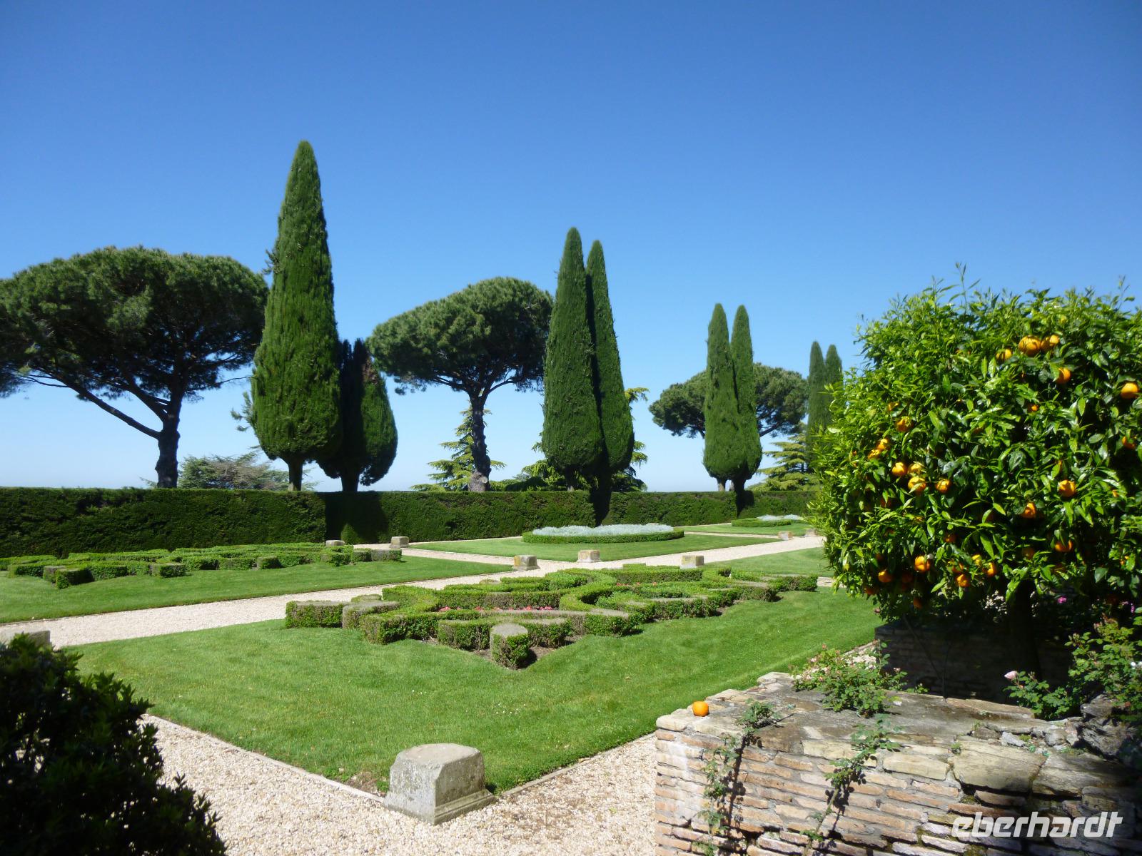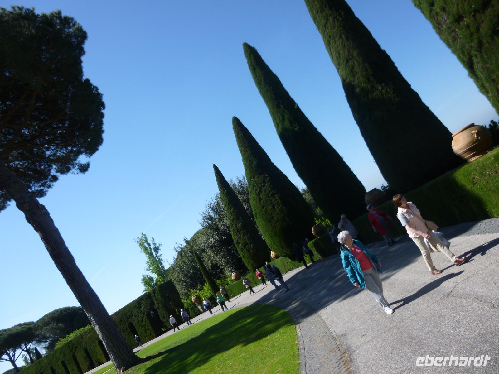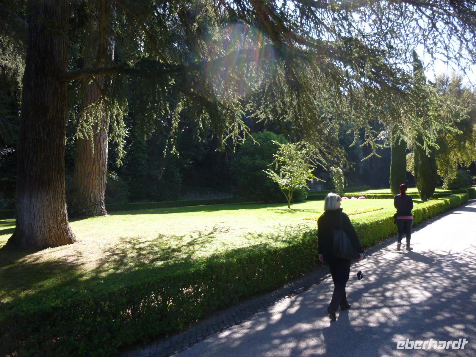 Seit 2014 ist auch im Sommersitz des Papstes in Castel Gandolfo der Garten für Besucher während eines geführten Rundgangs zugänglich - ermöglicht von Papst Franziskus. So schlenderten wir bei schönstem Wetter auf den Wegen der Päpste und ihrer zahlreichen Gärtner über das ehemalige Sommerareal des Kaisers Domitian entlang des Theaters und antiker Spolien, entlang der Ruinen des Kryptoportikus und schöner Bepflanzungen auf mehreren Terrassen vom Marienheiligtum zum Belvedere, zum Magnoliengarten, zur Viale delle Rose und delle Erbe, zu den „Quattro Labirinti" und zum Arboretum.