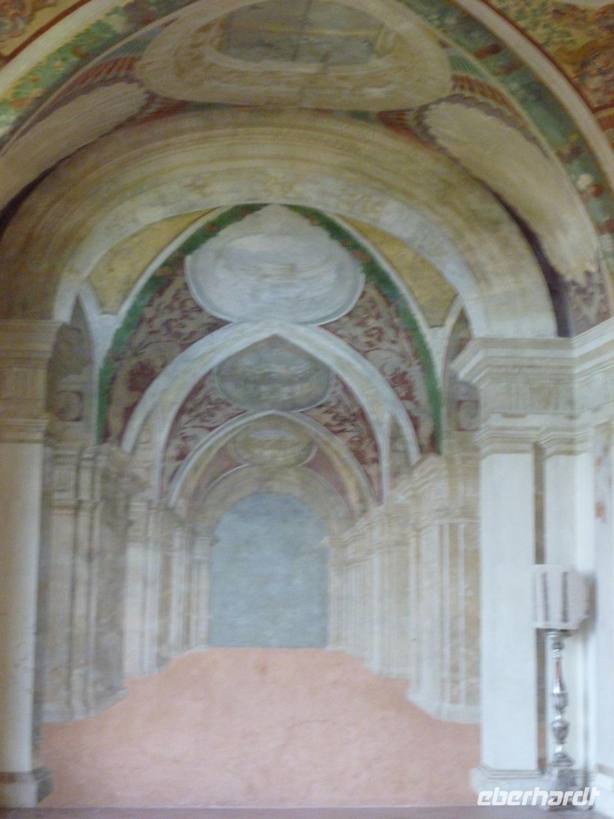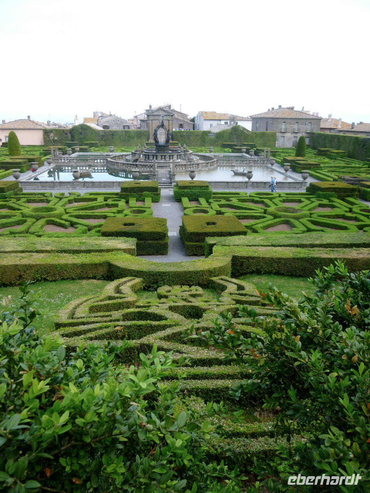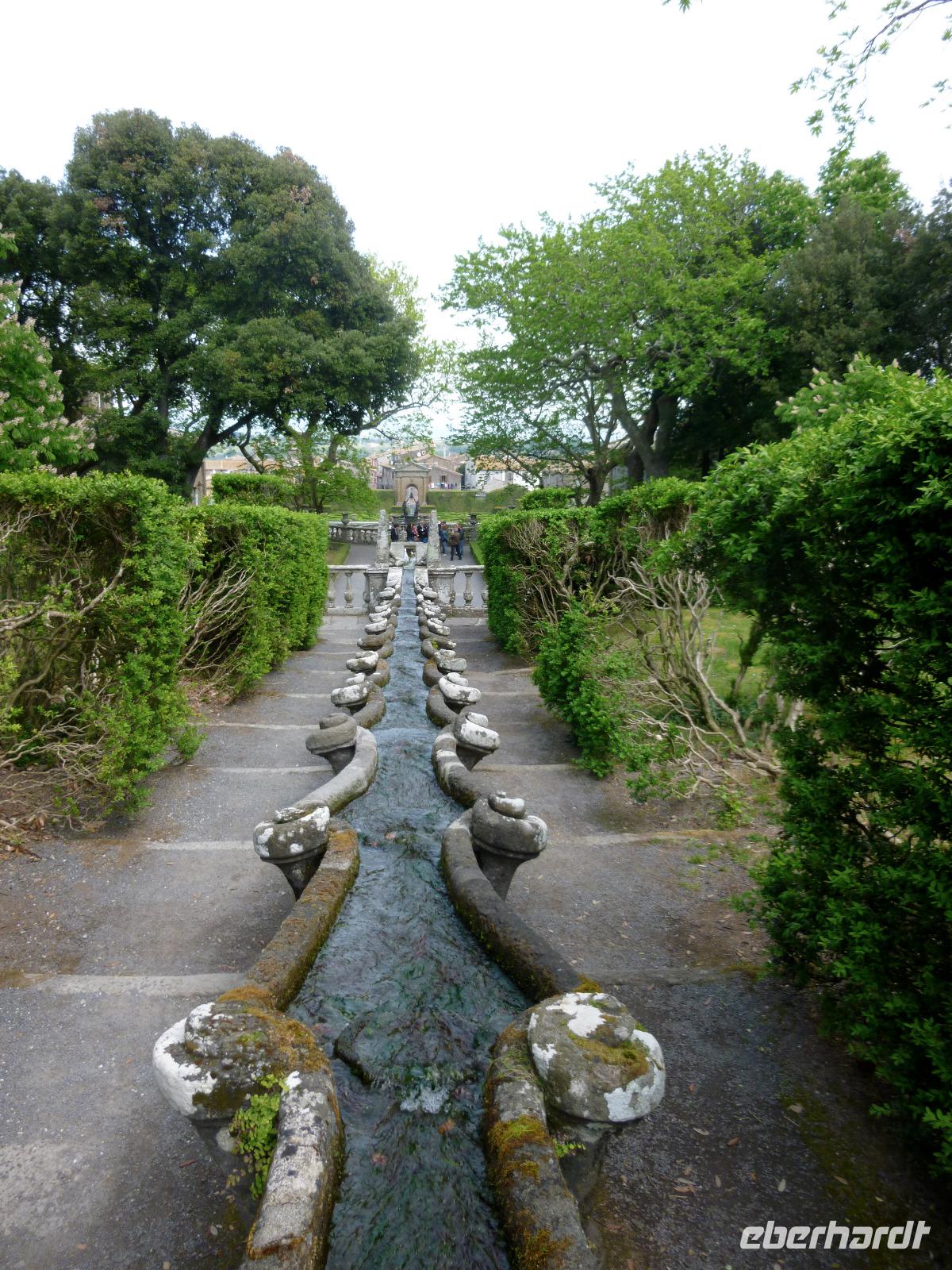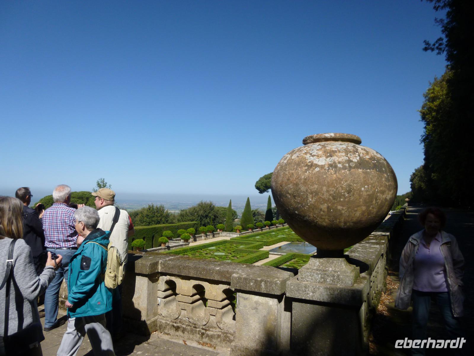 Als besonders schön ist dafür der Renaissancegarten in Bagnaia bekannt. Er hat sein Aussehen über 400 Jahre erhalten, wie uns eine gemalte Vedute im Casino des Kardinals Gambara zeigte. Er beauftragte Giacomo Barozzi da Vignola, der kurz zuvor die 15 km entfernte glanzvolle Villa Farnese in Caprarola für Allessandro Farnes gebaut hatte.
