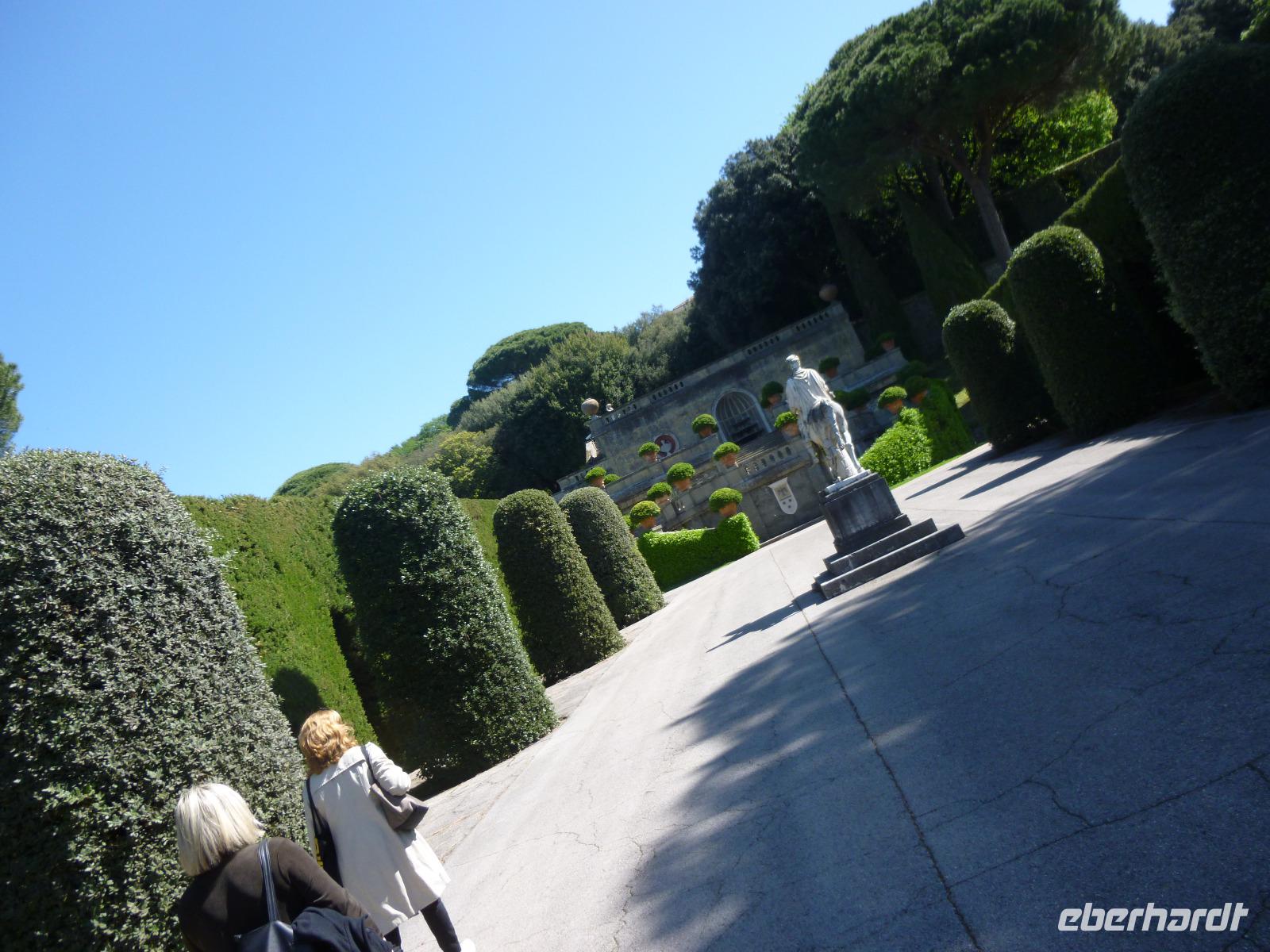 Zunächst bewunderten wir die unter Zuccari freskierten Palasträume, danach öffnete sich unserem Blick der Garten mit seinen Rampen, Wegen, Wasserspielen, Fischteichen und Figuren.