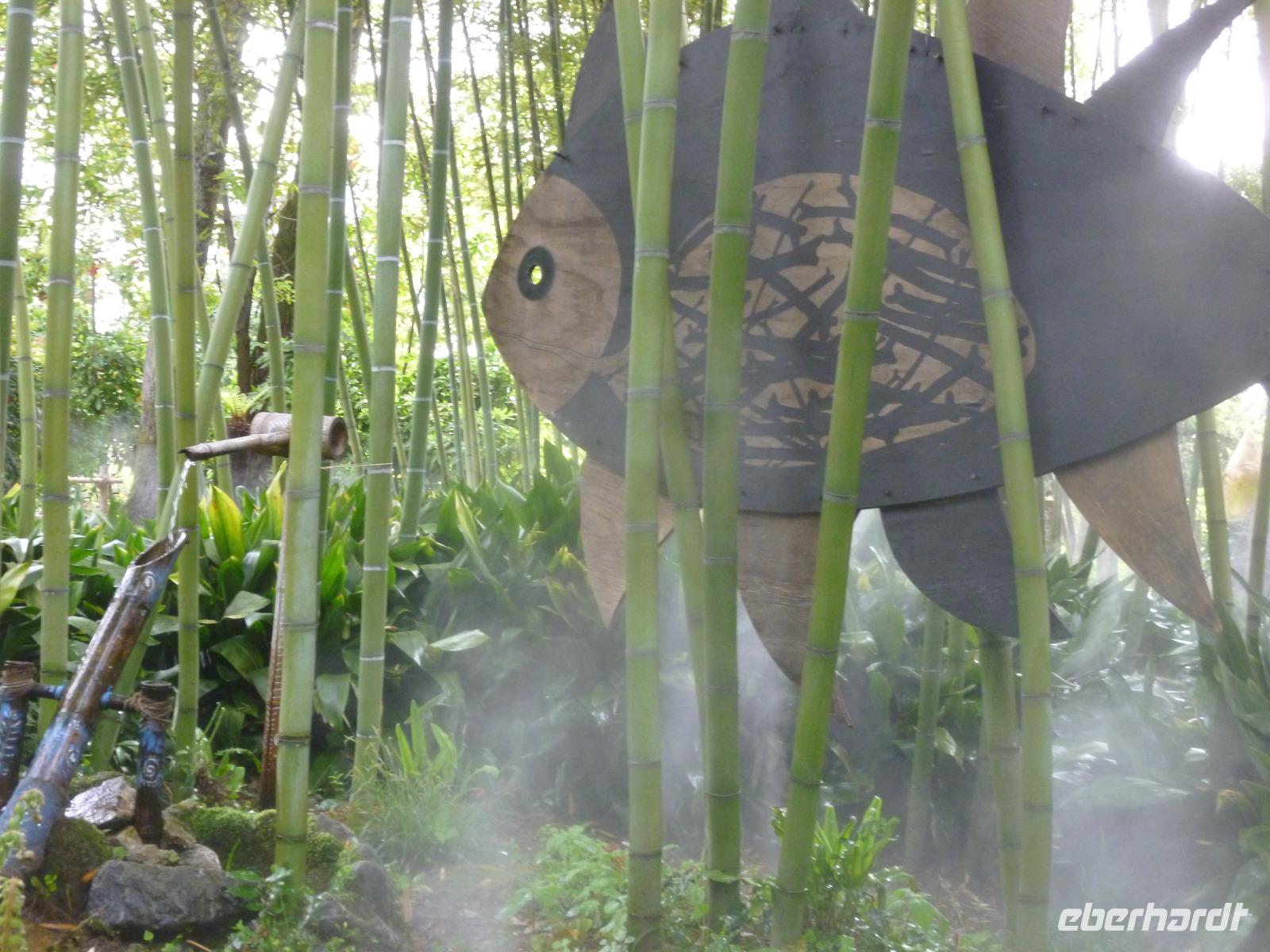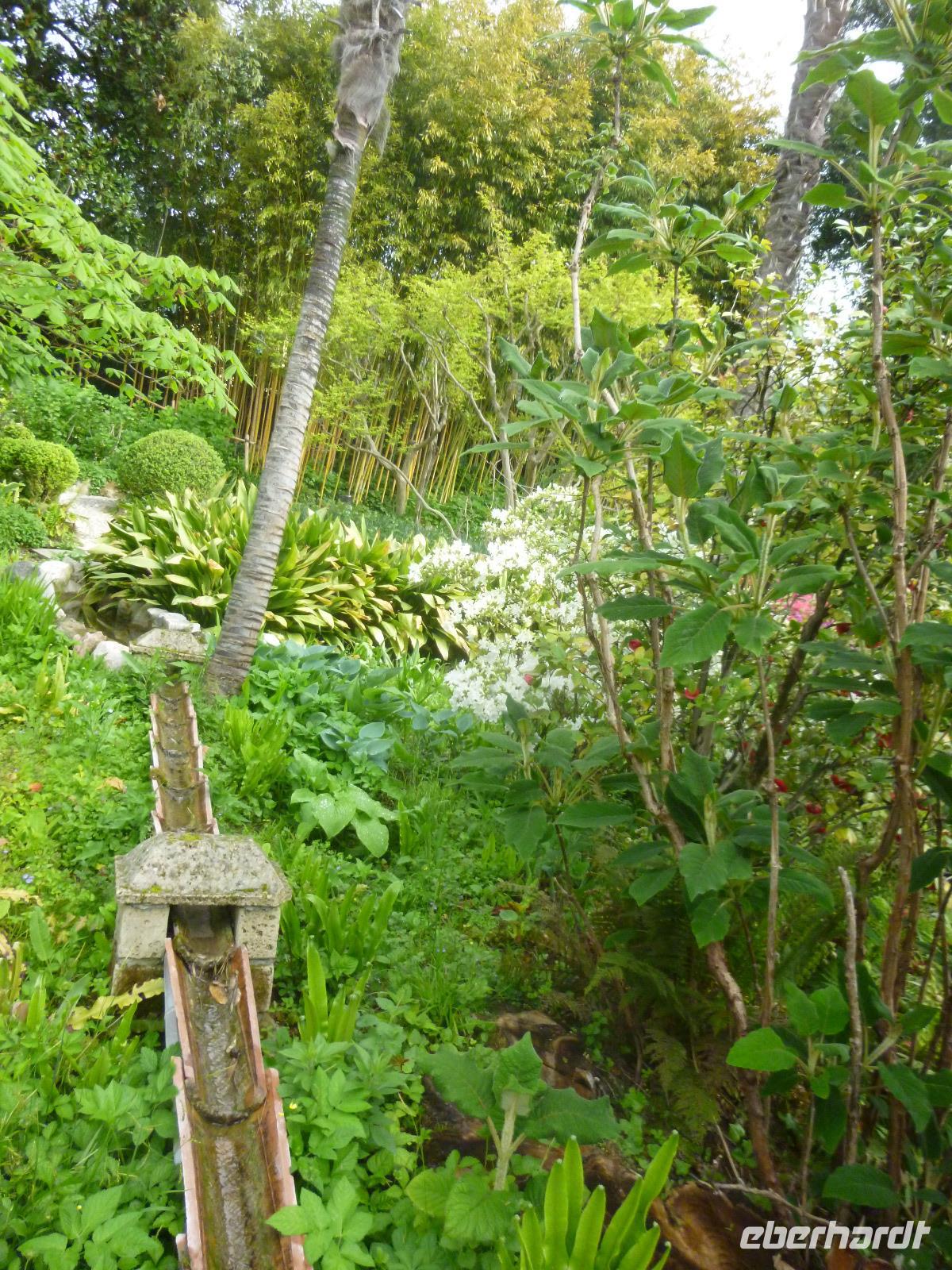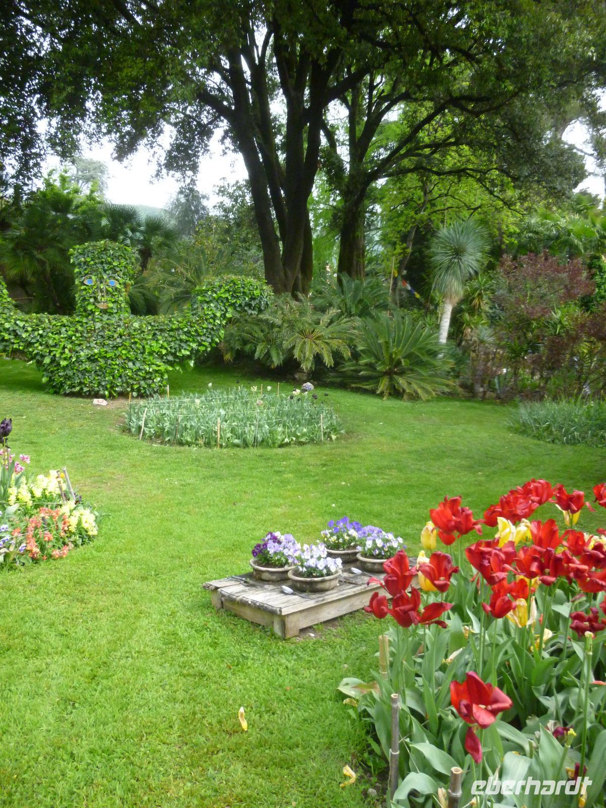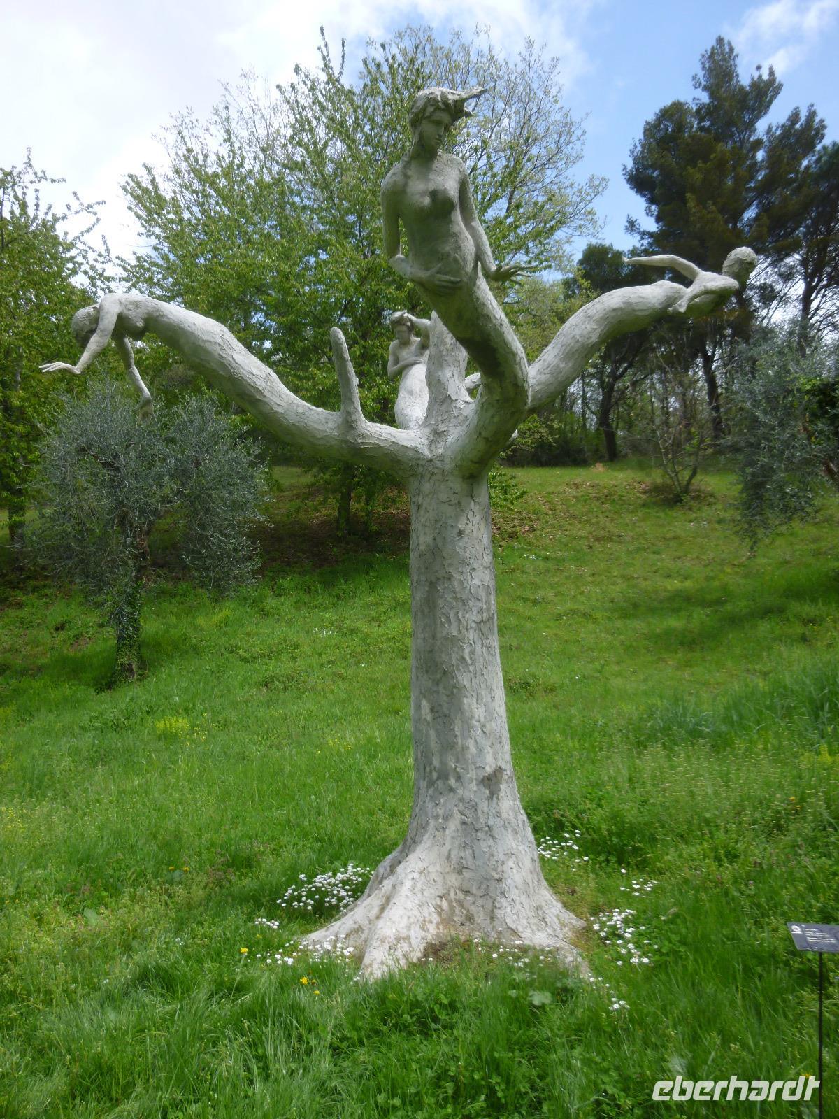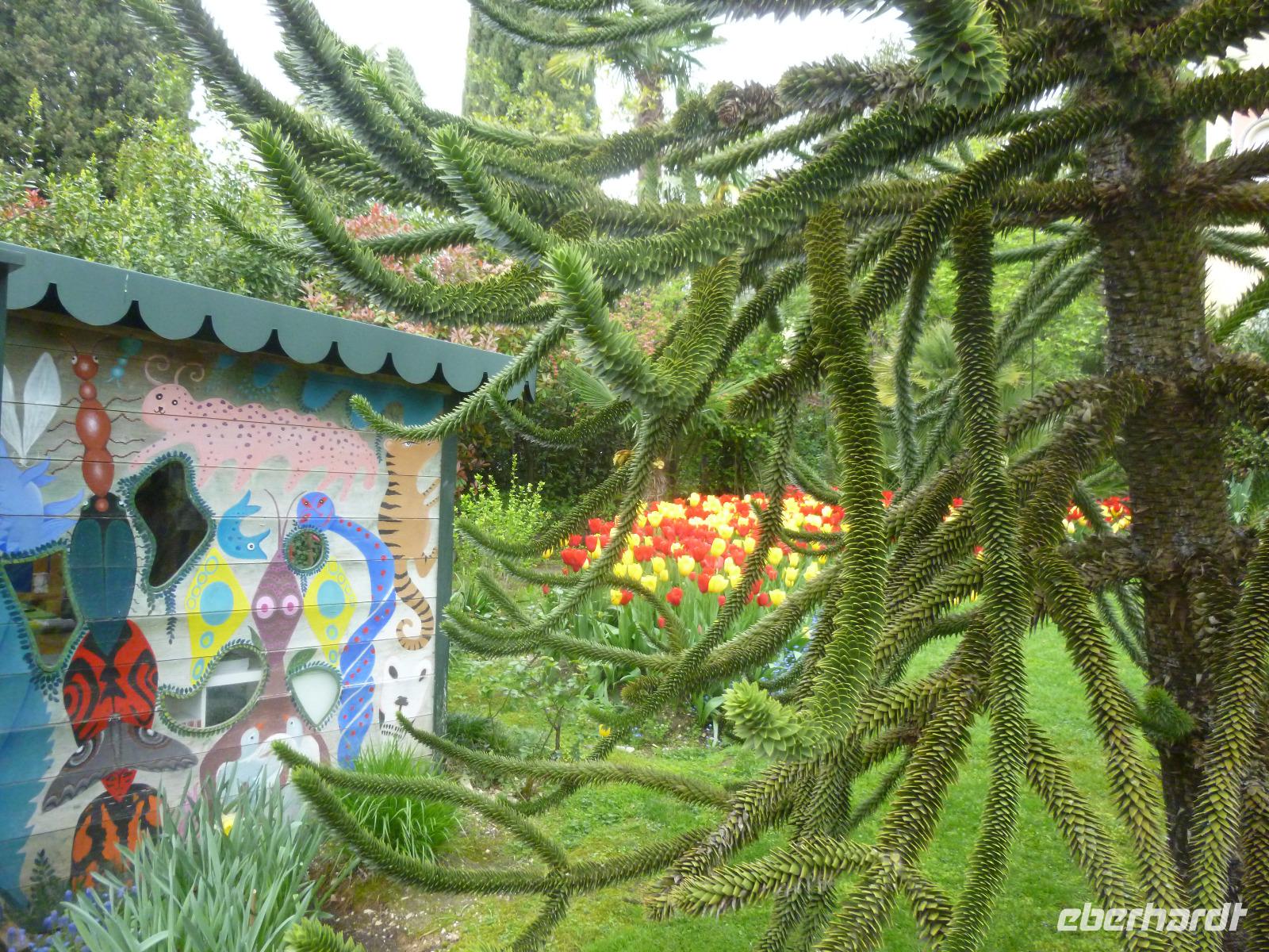 Rund 30 Skulpturen und Installationen lassen sich zwischen Bäumen, Felsen, Wasserläufen, Sträuchern und Blumen, Gewächse aus allen Ländern entdecken, wie Kampferbaum, Korkeiche, Urweltmammutbaum, Kanarischer Drachenbaum, Neuseeländer Flachs und persischer Eisenholzbaum. Stets wandelt sich dieser Garten und zu fast jeder Jahreszeit ist etwas zu entdecken.