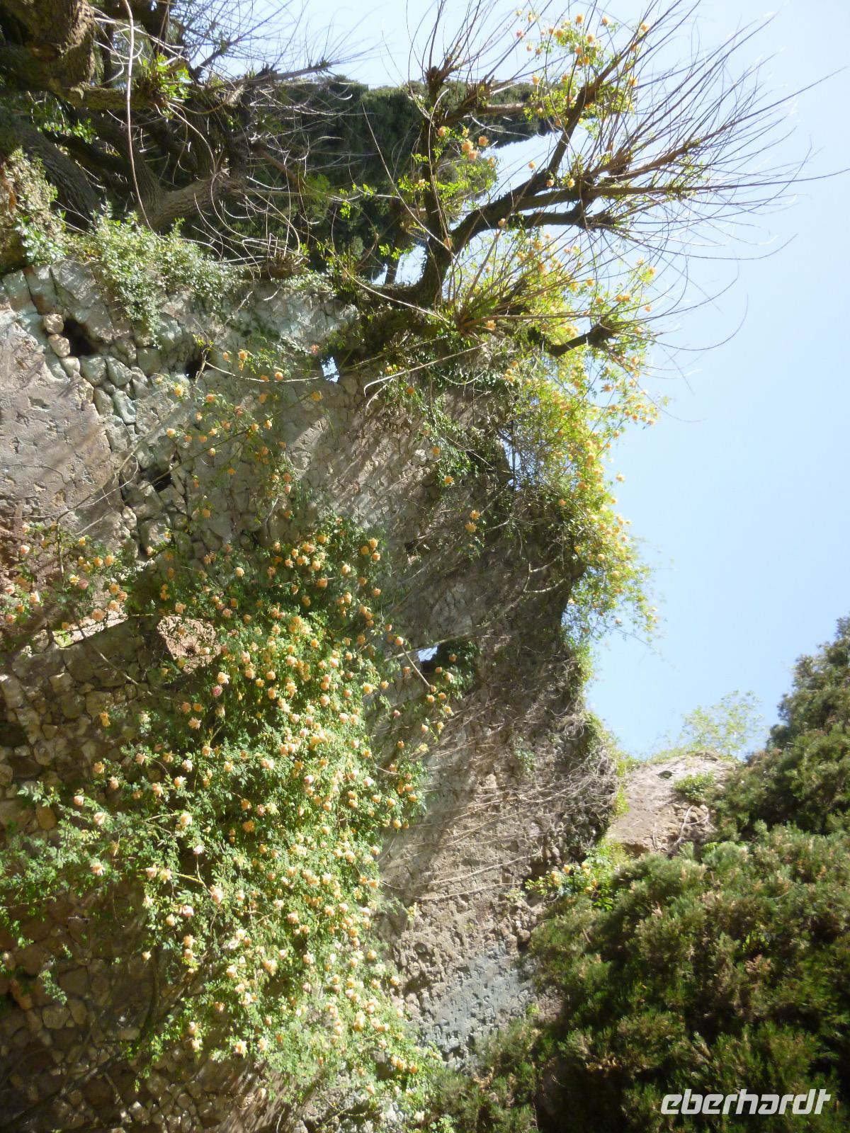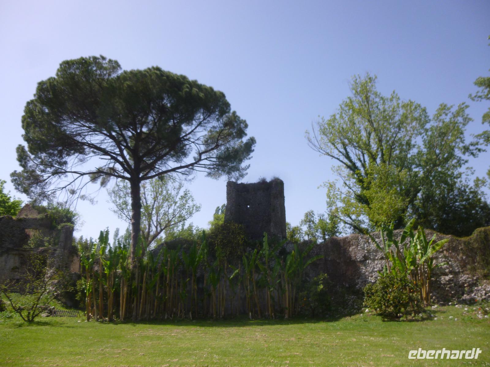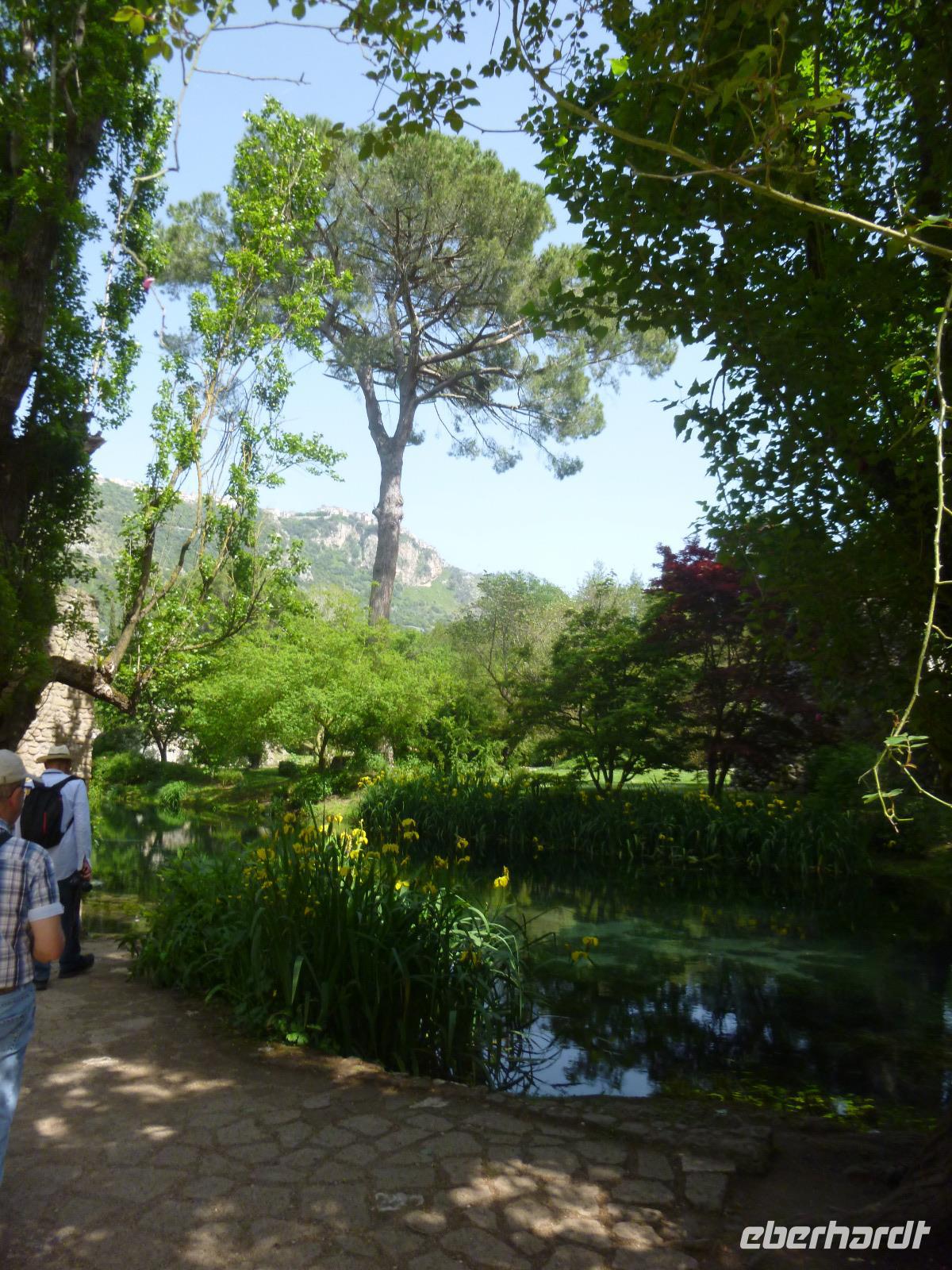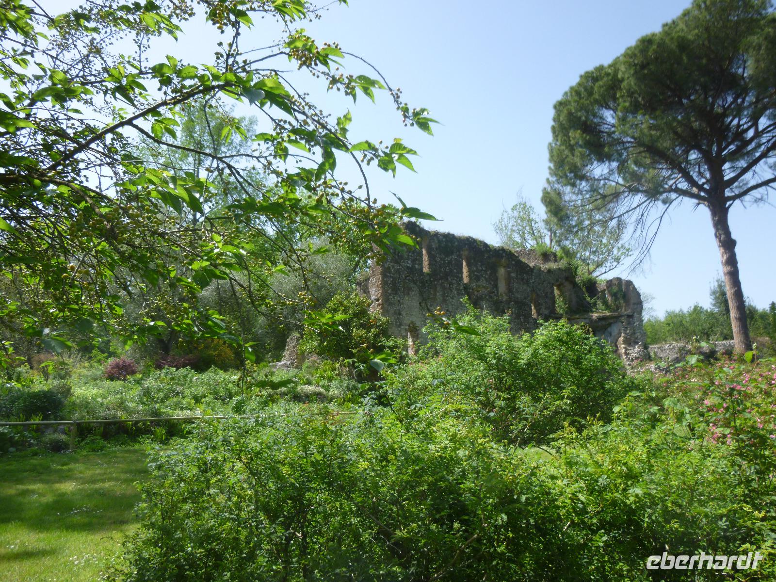 Erst Anfang des 20. Jahrhunderts besannen sich die Besitzer Caetani ihres Erbes der verlassenen Stadt und begannen im Schutze der Berge, hier einen romantischen Landschaftsgarten aus einheimischen und exotischen Gewächsen anzulegen, die in dem milden Klima aufs Prächtigste gediehen. Kaum zu glauben, dass die Bepflanzungen in zum Teil beeindruckender Größe kaum älter als einige Jahrzehnte sind. Auch der formale Garten mit Zitrusfrüchten neben dem Castello war sehenswert und wir genossen die traumhaft schönen Bilder.