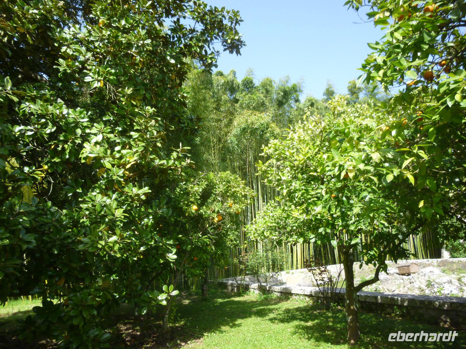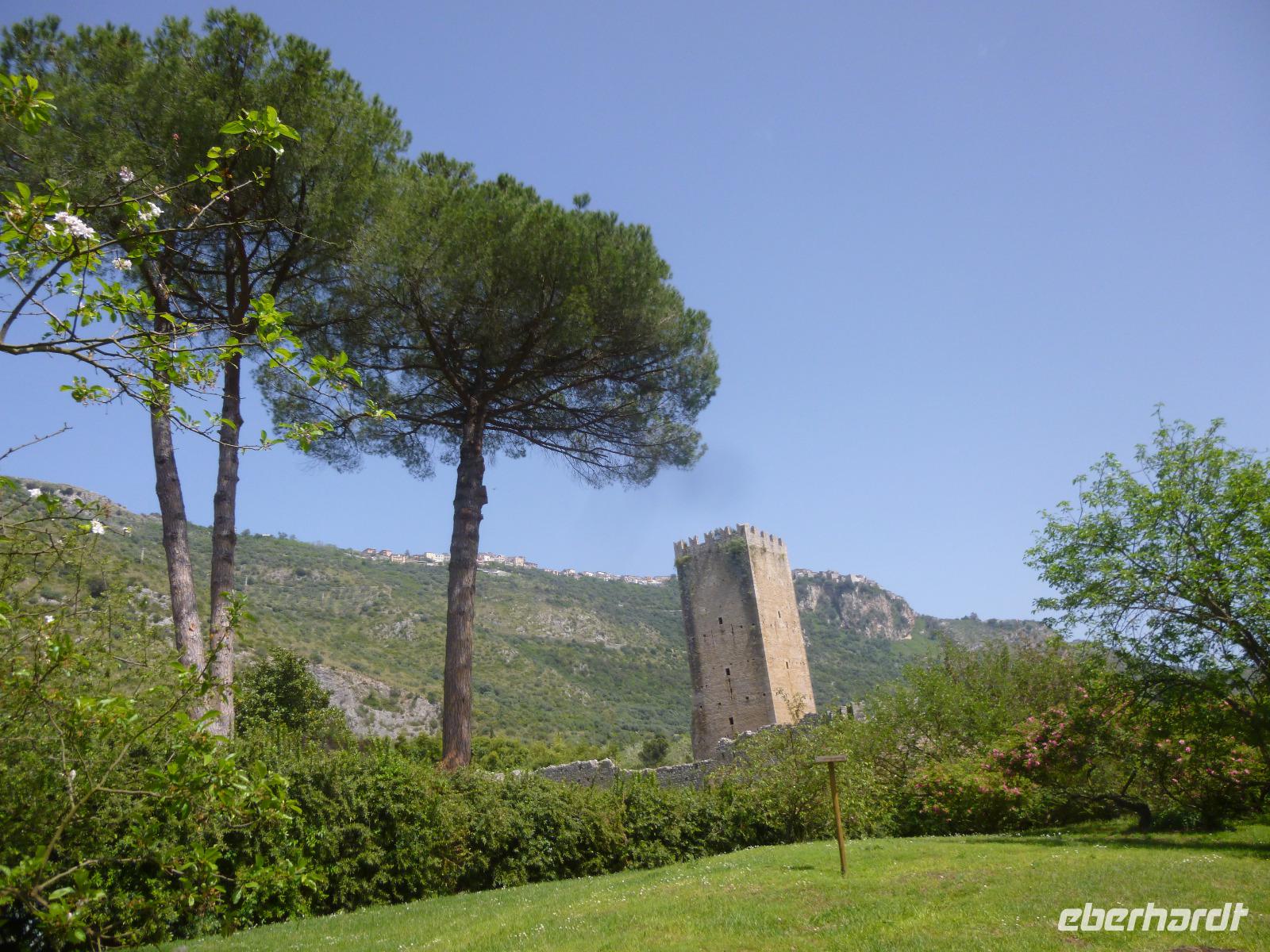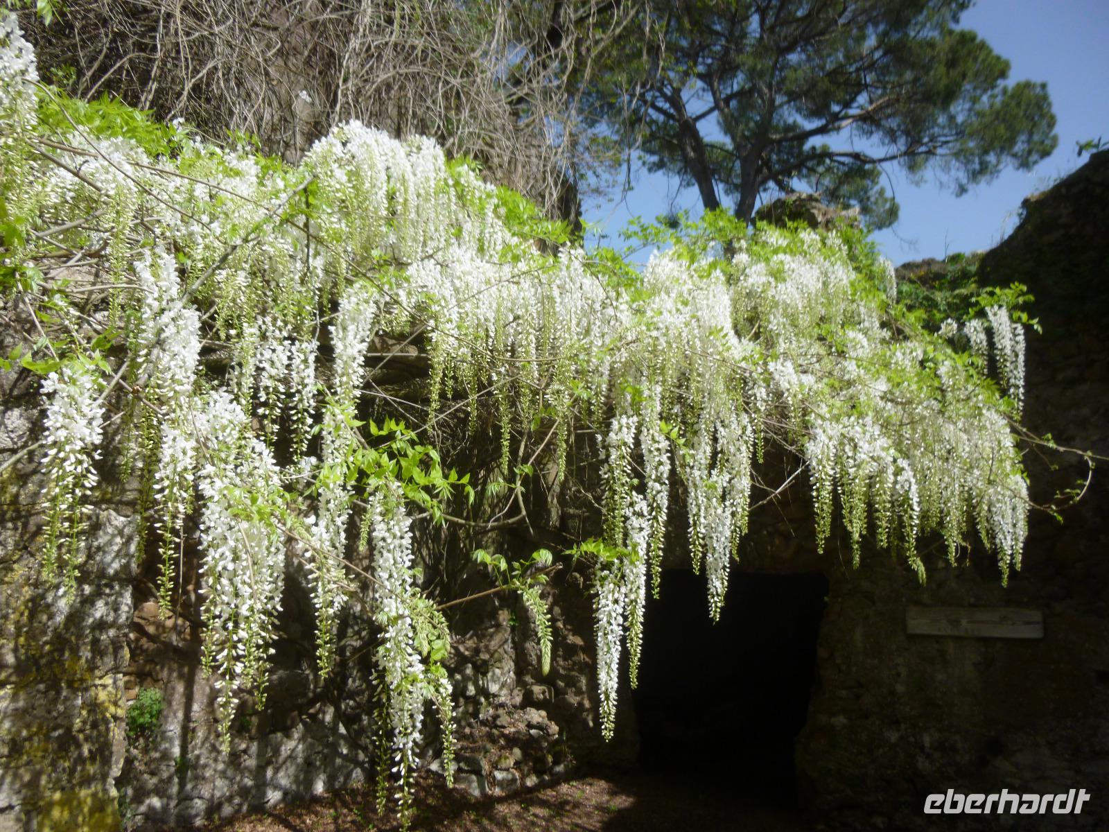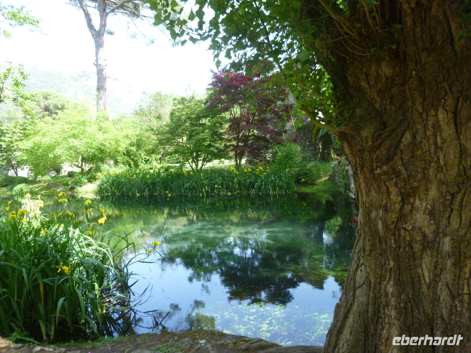 Erst Anfang des 20. Jahrhunderts besannen sich die Besitzer Caetani ihres Erbes der verlassenen Stadt und begannen im Schutze der Berge, hier einen romantischen Landschaftsgarten aus einheimischen und exotischen Gewächsen anzulegen, die in dem milden Klima aufs Prächtigste gediehen. Kaum zu glauben, dass die Bepflanzungen in zum Teil beeindruckender Größe kaum älter als einige Jahrzehnte sind. Auch der formale Garten mit Zitrusfrüchten neben dem Castello war sehenswert und wir genossen die traumhaft schönen Bilder.
