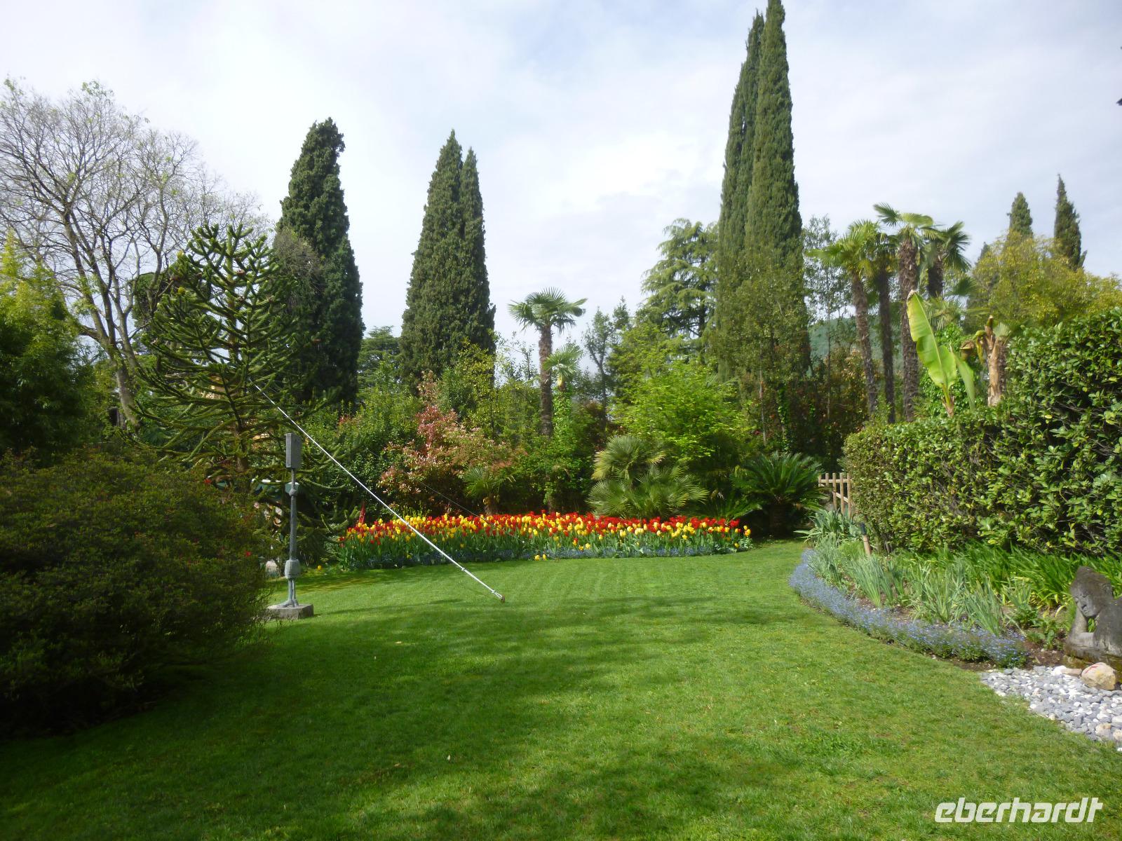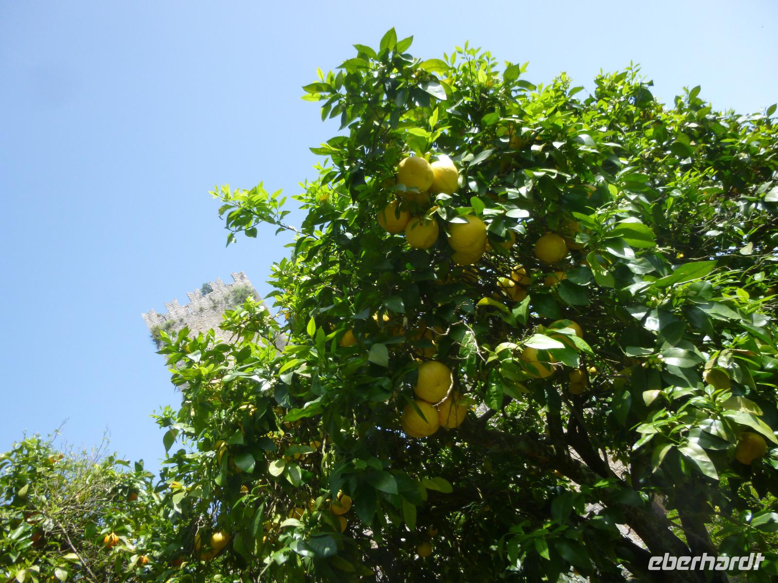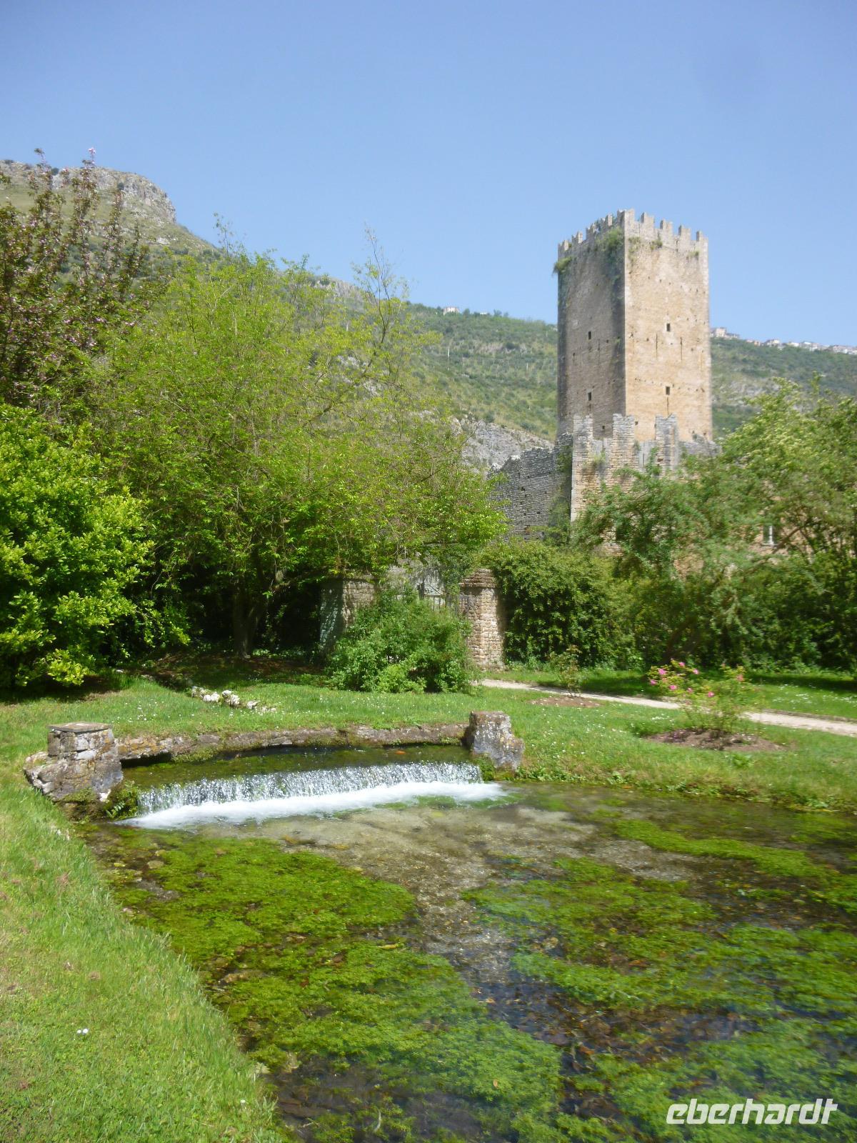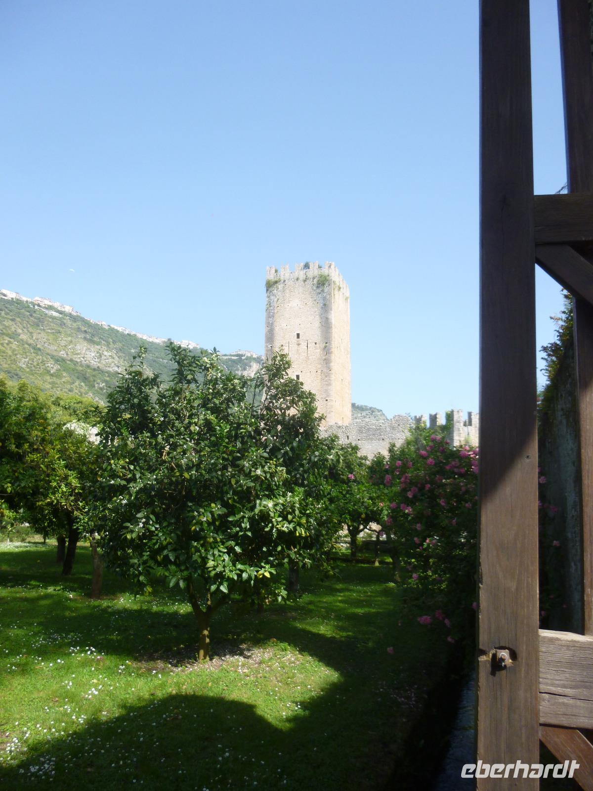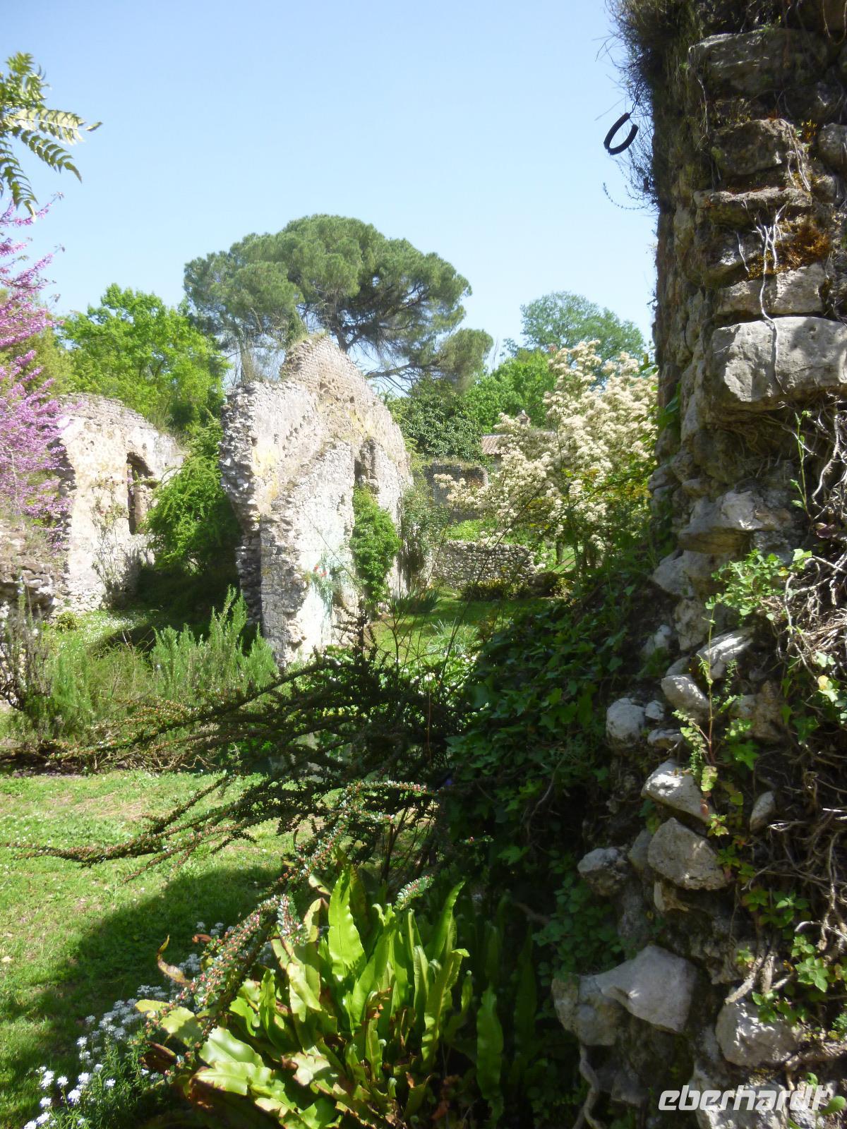 Erst Anfang des 20. Jahrhunderts besannen sich die Besitzer Caetani ihres Erbes der verlassenen Stadt und begannen im Schutze der Berge, hier einen romantischen Landschaftsgarten aus einheimischen und exotischen Gewächsen anzulegen, die in dem milden Klima aufs Prächtigste gediehen. Kaum zu glauben, dass die Bepflanzungen in zum Teil beeindruckender Größe kaum älter als einige Jahrzehnte sind. Auch der formale Garten mit Zitrusfrüchten neben dem Castello war sehenswert und wir genossen die traumhaft schönen Bilder.