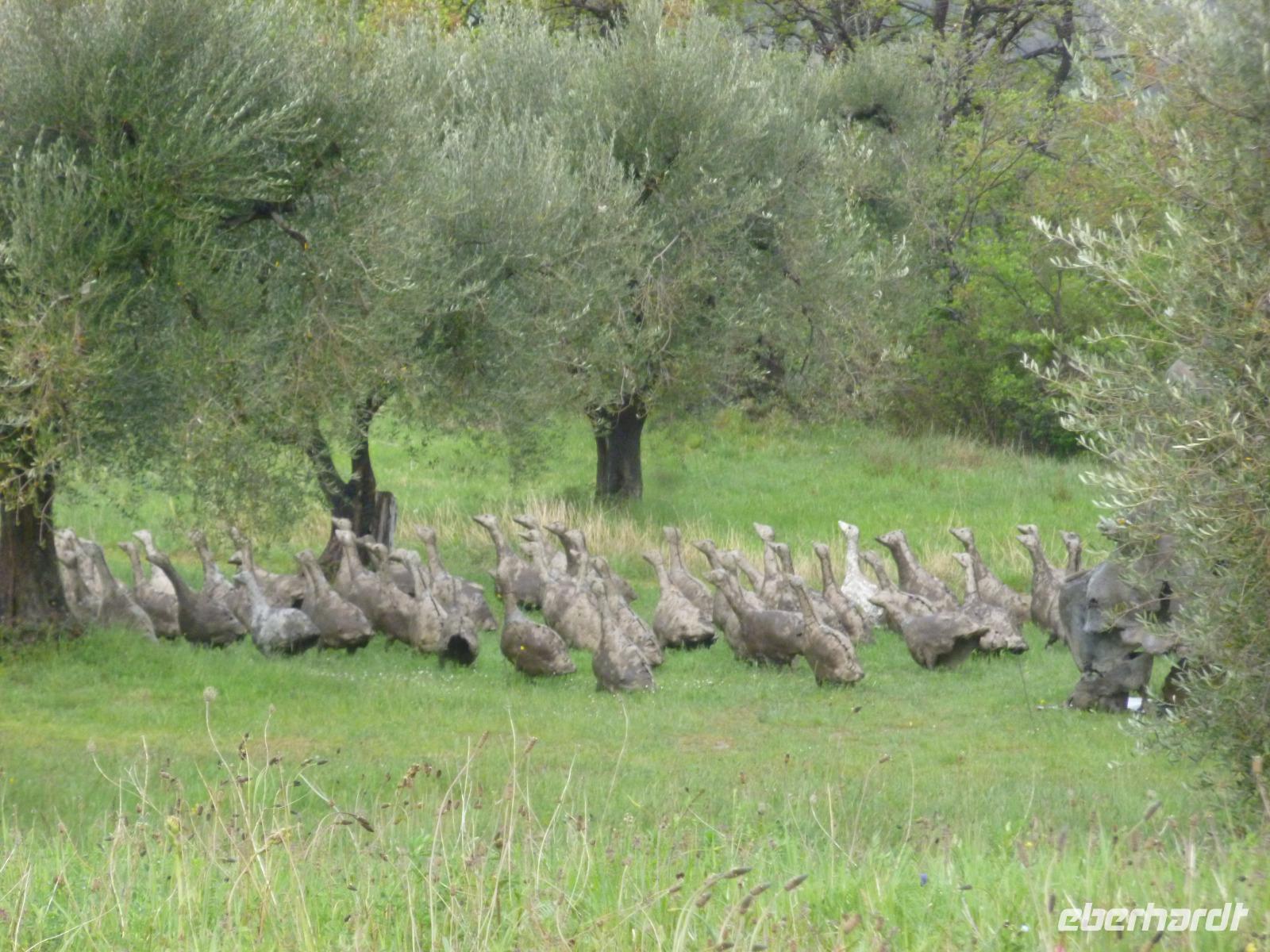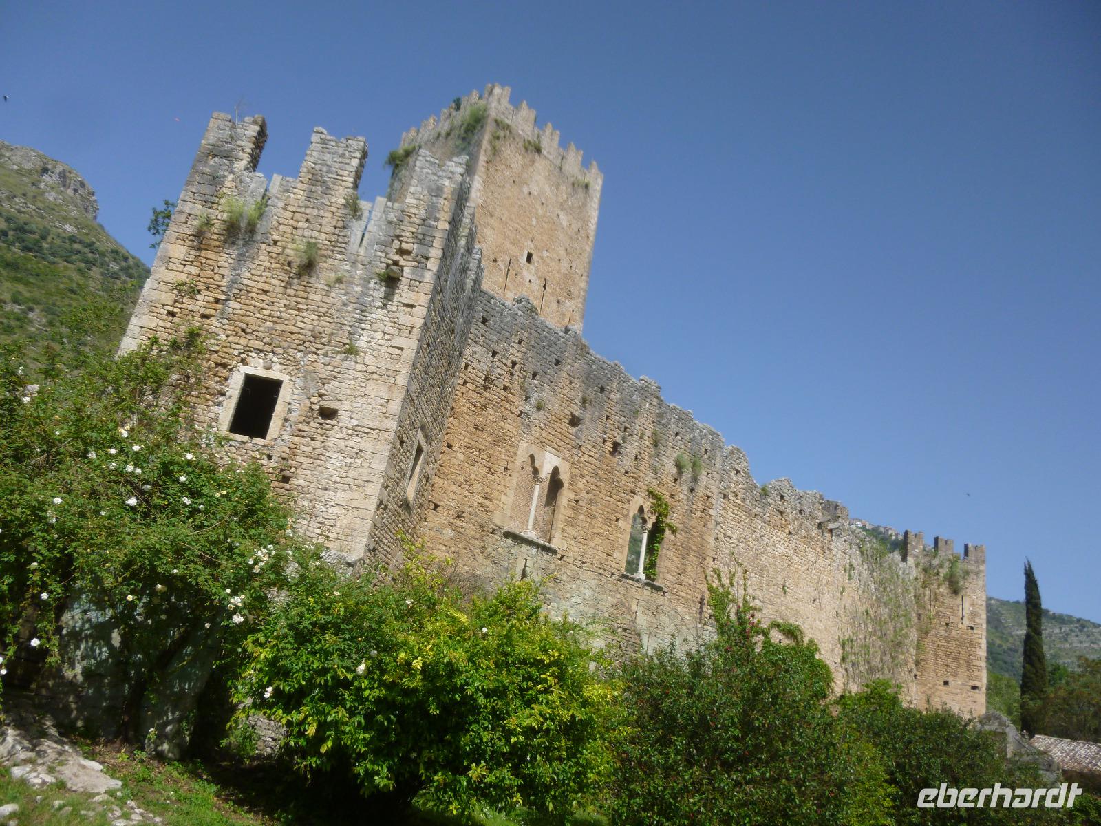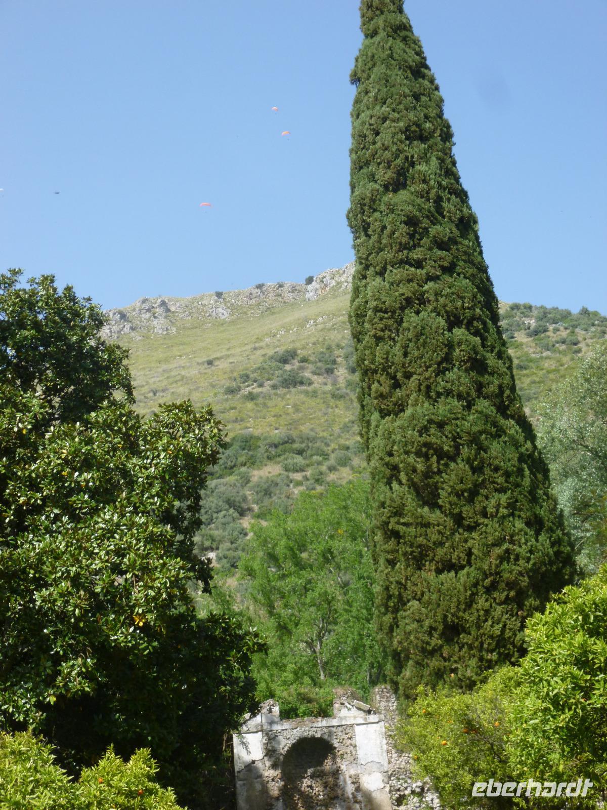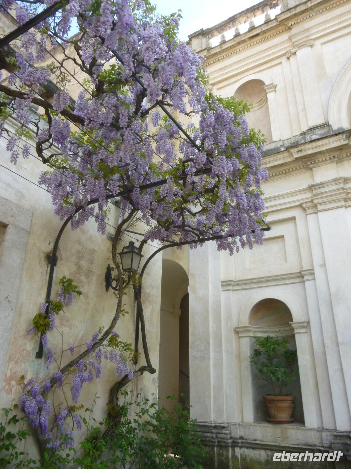 Erst Anfang des 20. Jahrhunderts besannen sich die Besitzer Caetani ihres Erbes der verlassenen Stadt und begannen im Schutze der Berge, hier einen romantischen Landschaftsgarten aus einheimischen und exotischen Gewächsen anzulegen, die in dem milden Klima aufs Prächtigste gediehen. Kaum zu glauben, dass die Bepflanzungen in zum Teil beeindruckender Größe kaum älter als einige Jahrzehnte sind. Auch der formale Garten mit Zitrusfrüchten neben dem Castello war sehenswert und wir genossen die traumhaft schönen Bilder.