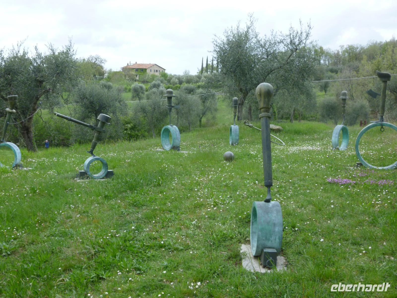 Für Daniel Spoerri, Stifter und Künstler, zählt in seinem 1997 gegründeten Garten nur der Augenblick beim Entdecken der über 100 Kunstwerke und Installationen auf dem weitläufigen Areal von über 15 Hektar am Fuße des uralten erloschenen Vulkans Monte Amiata.
