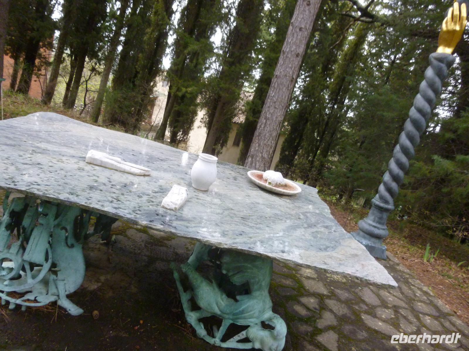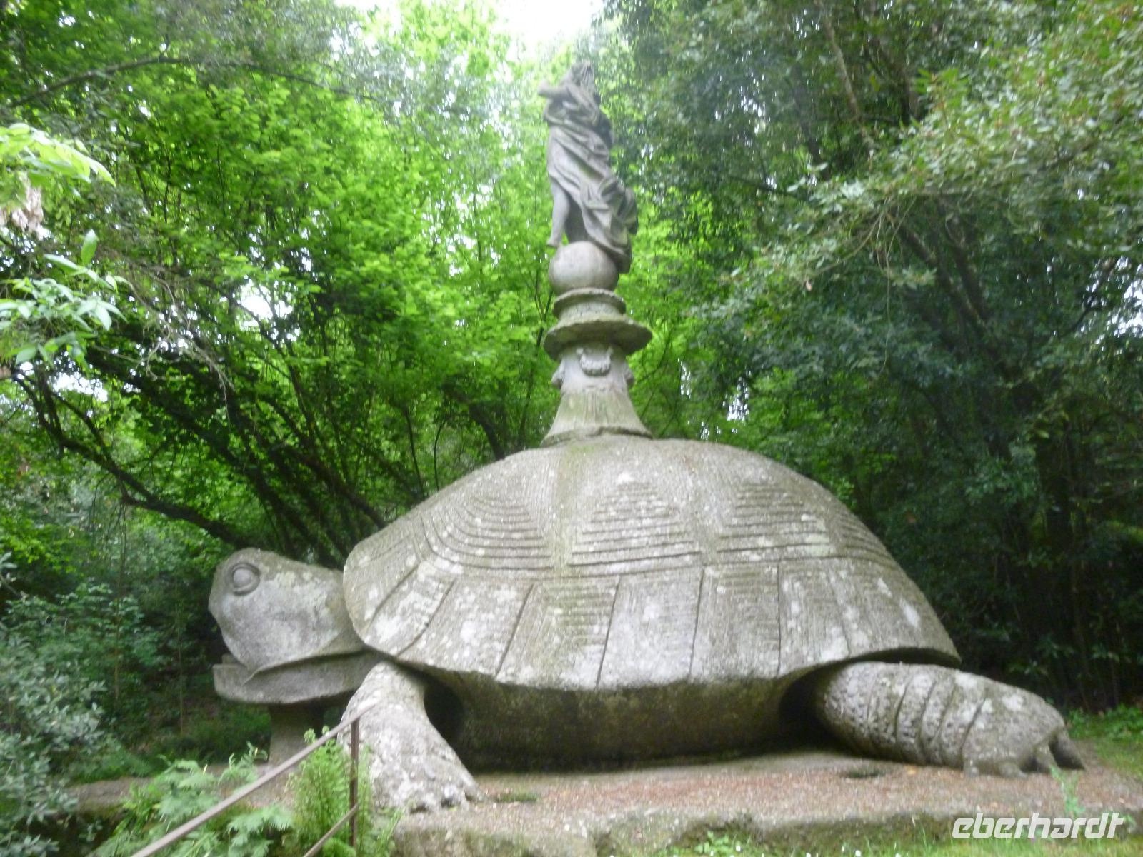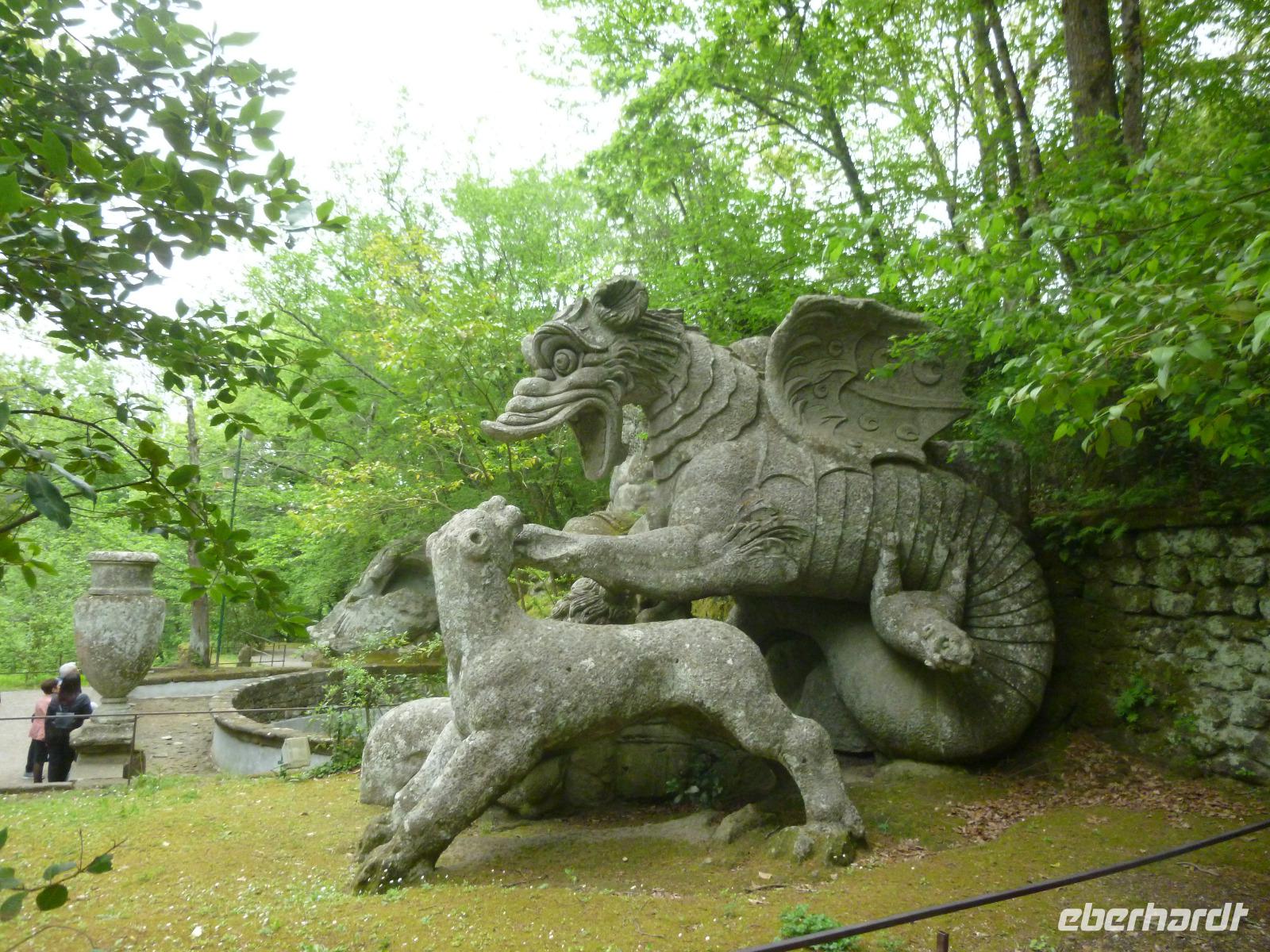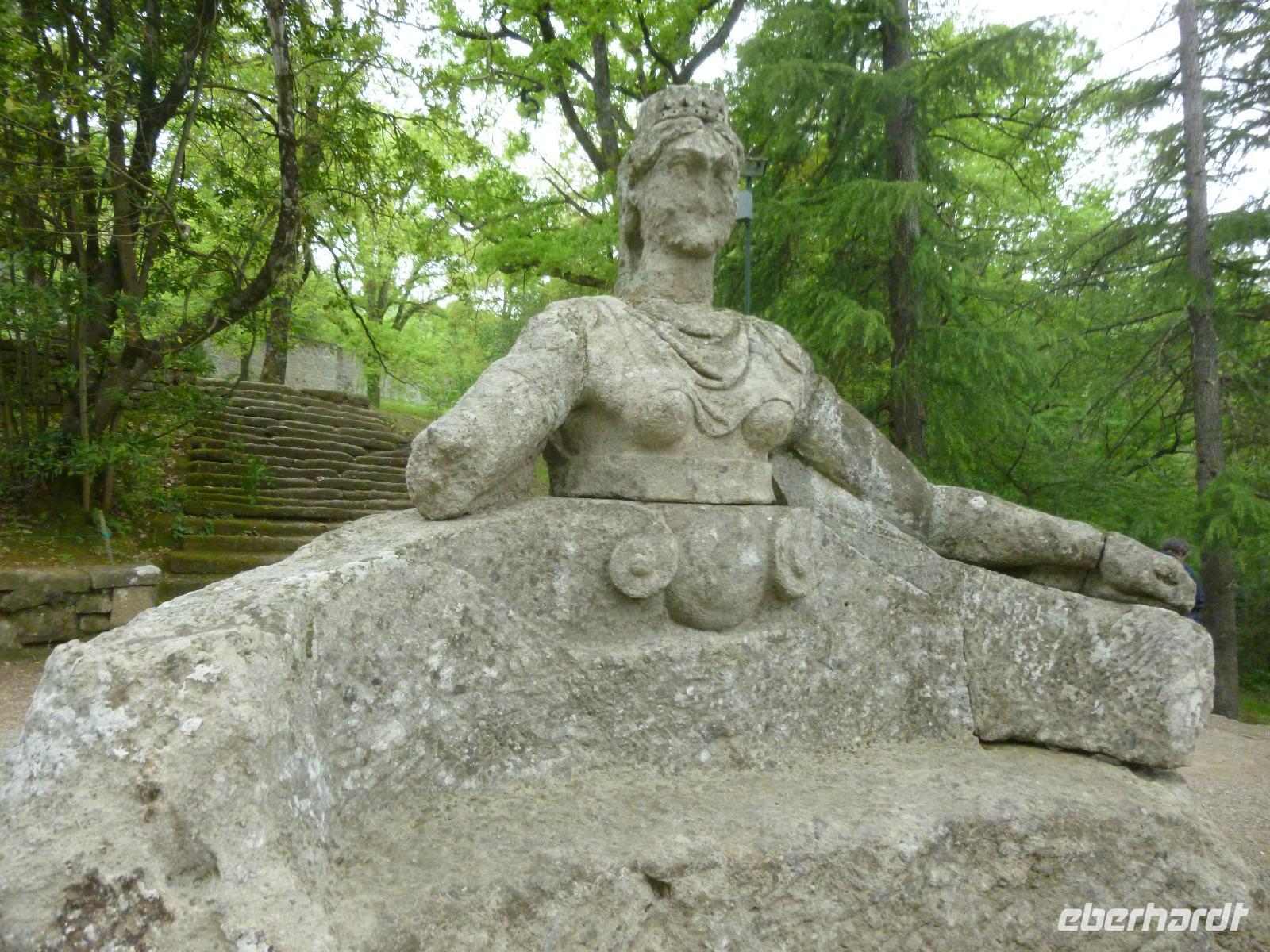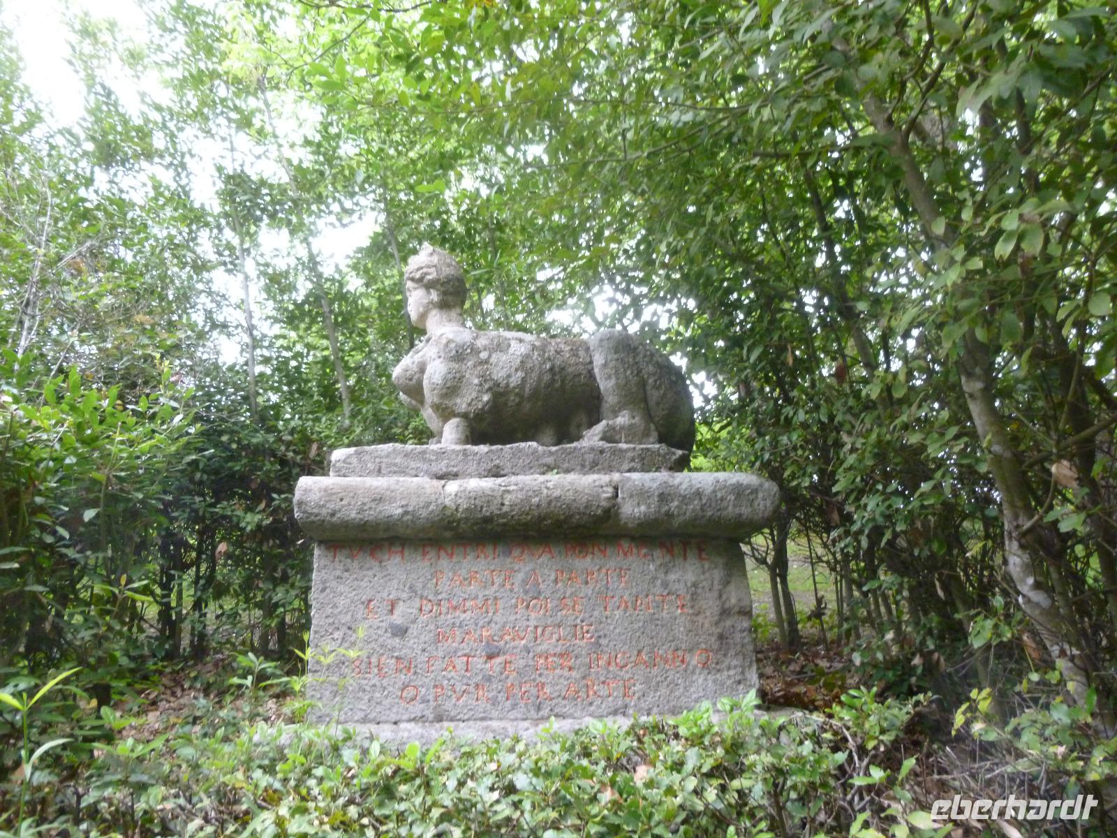 Uns eröffnete sich dort ein verwunschener Garten voller Rätsel aus vergangener frühbarocker Zeit. Hier gelang es dem Schöpfer, einem gebildeten feinsinnigen Landadeligen, ein Reich des Skurrilen zu erschaffen, das auch Dali und Niki de Saint Phalle inspirierte.