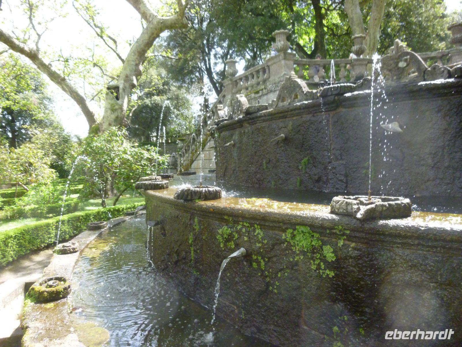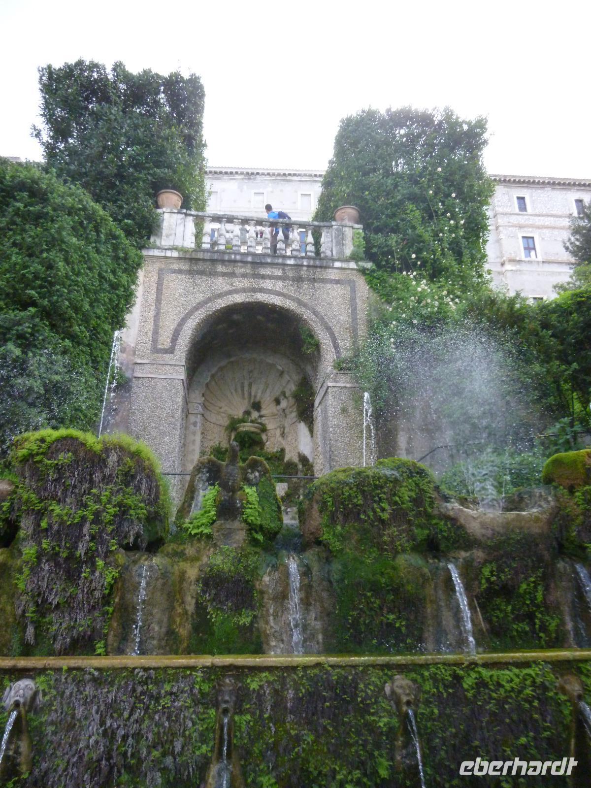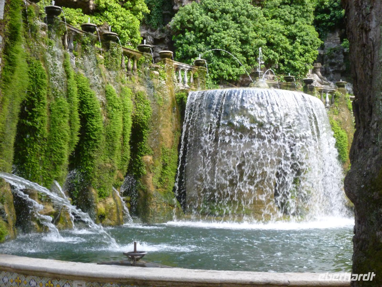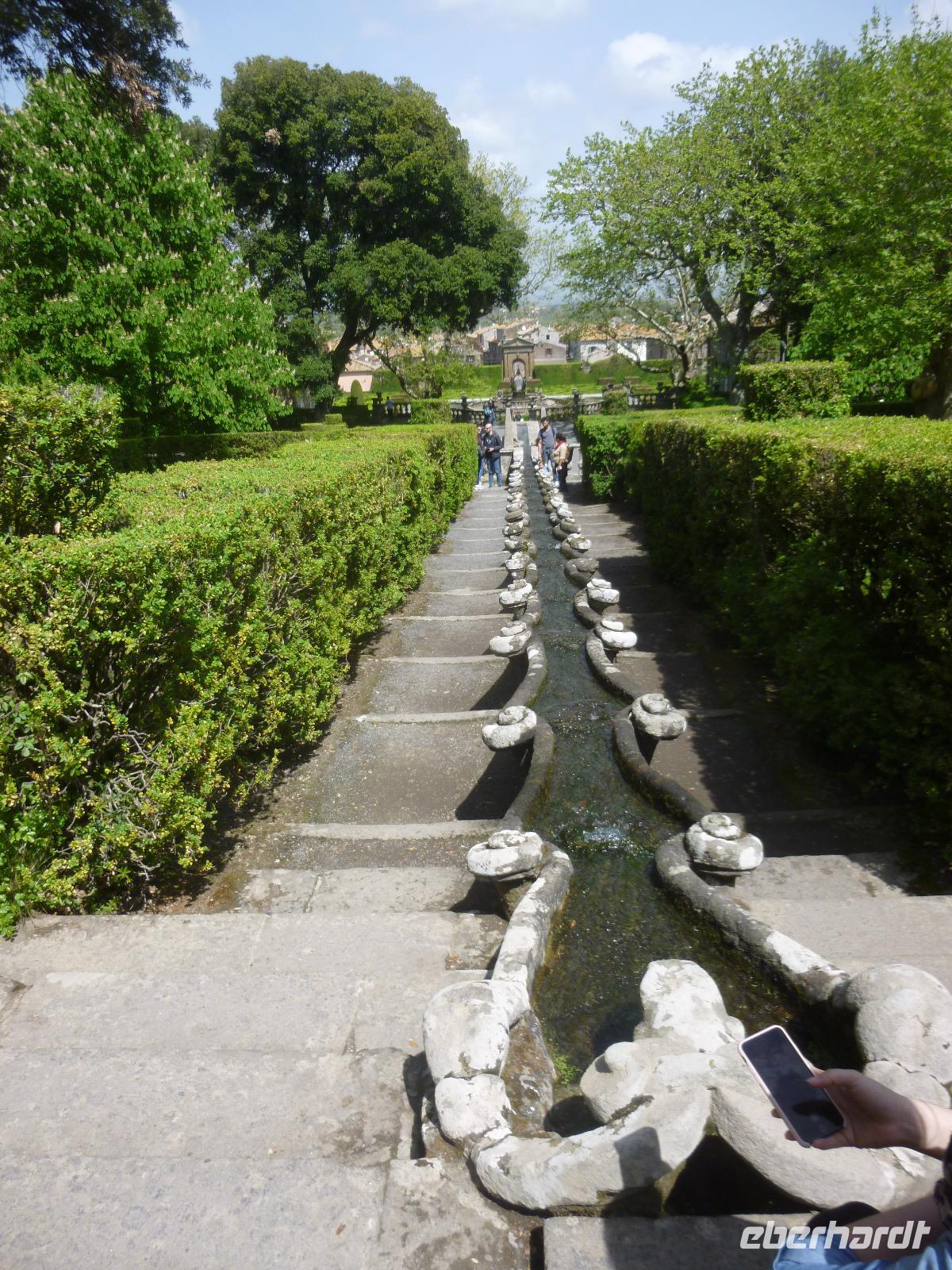 Zu den prächtigsten Werken der Renaissance-Gartenkunst mit Wasservielfalt zählt zweifelsfrei die Villa d'Este im Zentrum von Tivoli, die wir anschließend besuchten. Beauftragt vom Sohn der Lucrezia Borgia, Kardinal Ippolito II. und um ihm einen repräsentativen Sitz im zu bescheidenen ehemaligen Benediktiner-Konvent zu errichten, wurden Räume umgebaut, Erdmassen bewegt, Aquädukte gebaut und Flusswasser umgeleitet.