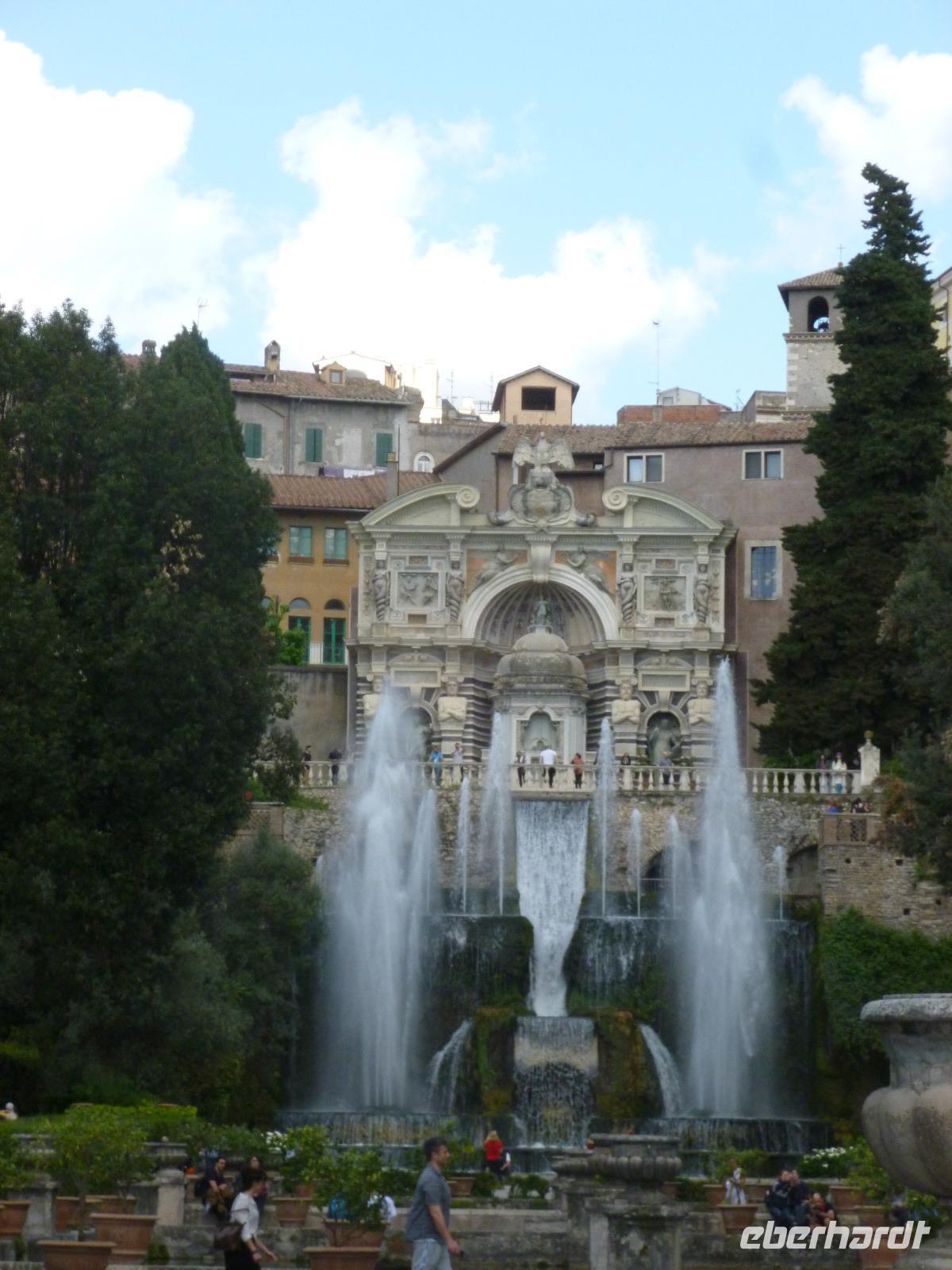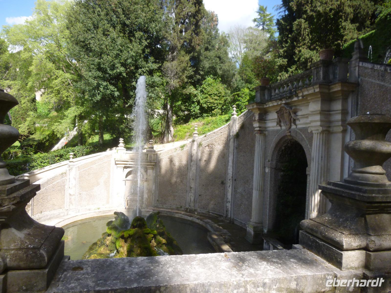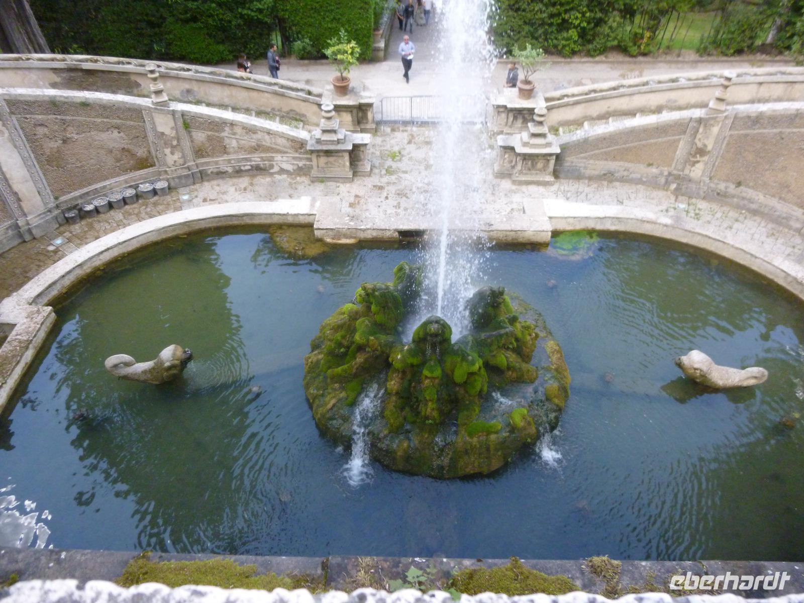 Zu den prächtigsten Werken der Renaissance-Gartenkunst mit Wasservielfalt zählt zweifelsfrei die Villa d'Este im Zentrum von Tivoli, die wir anschließend besuchten. Beauftragt vom Sohn der Lucrezia Borgia, Kardinal Ippolito II. und um ihm einen repräsentativen Sitz im zu bescheidenen ehemaligen Benediktiner-Konvent zu errichten, wurden Räume umgebaut, Erdmassen bewegt, Aquädukte gebaut und Flusswasser umgeleitet.