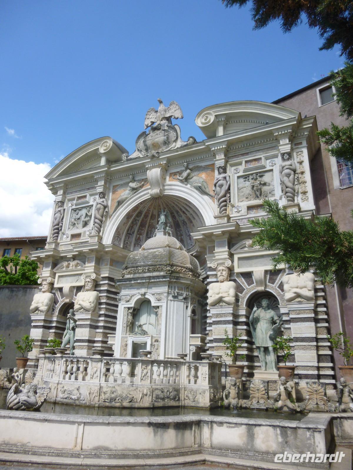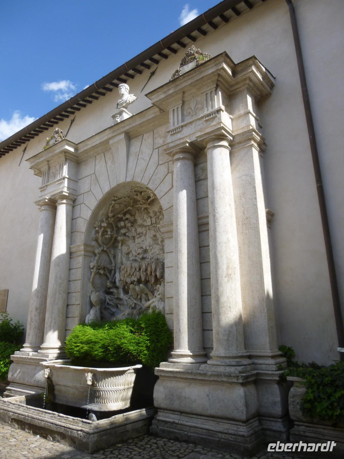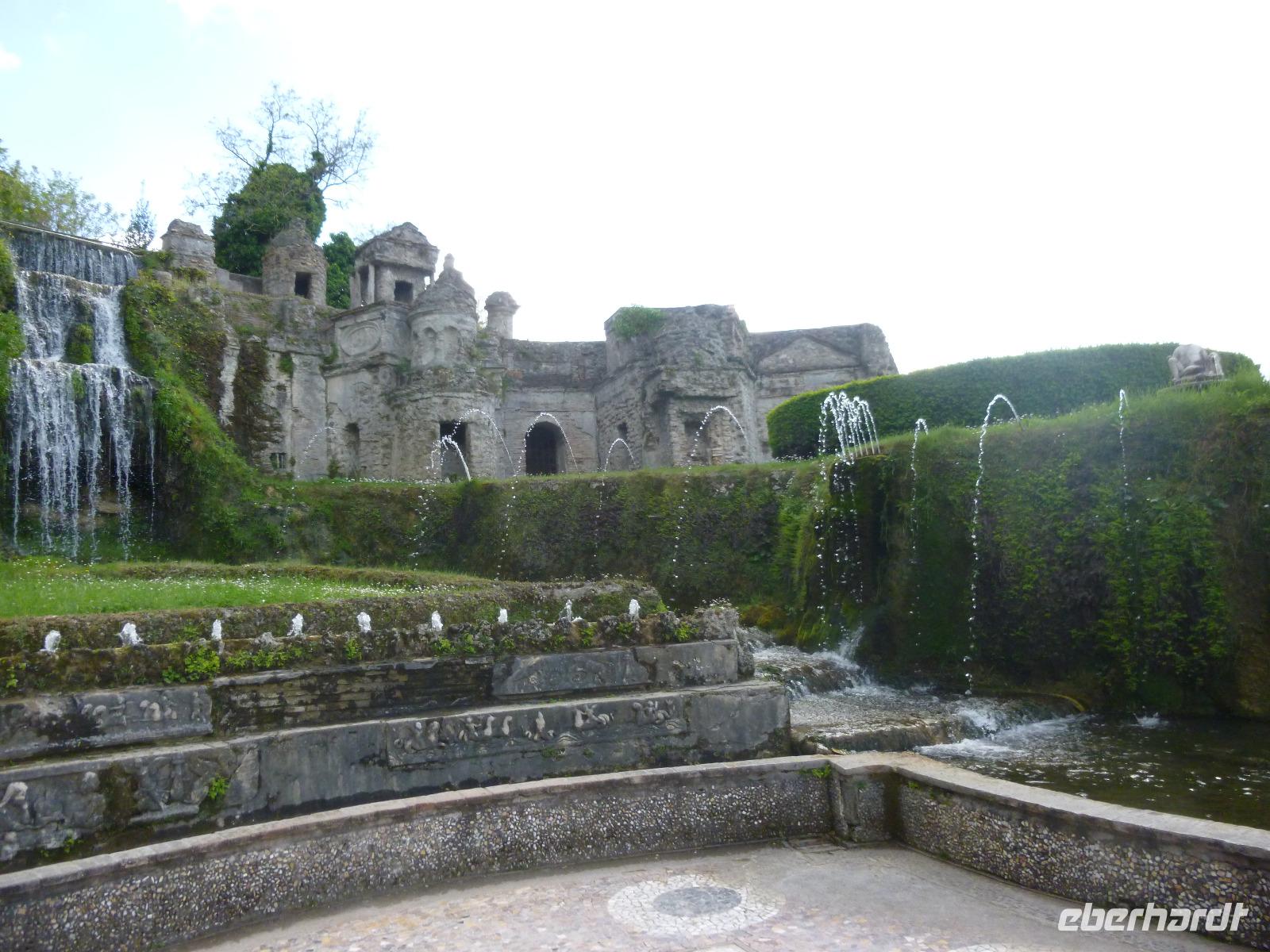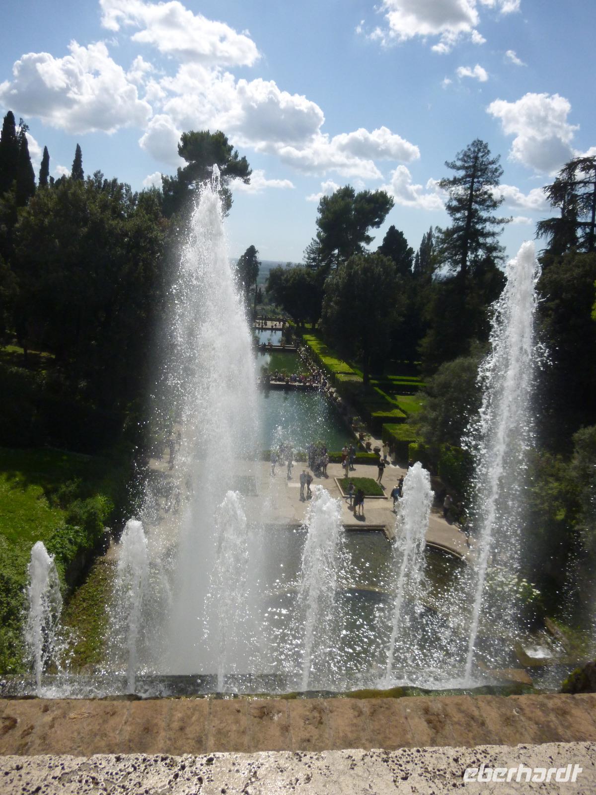 Zu den prächtigsten Werken der Renaissance-Gartenkunst mit Wasservielfalt zählt zweifelsfrei die Villa d'Este im Zentrum von Tivoli, die wir anschließend besuchten. Beauftragt vom Sohn der Lucrezia Borgia, Kardinal Ippolito II. und um ihm einen repräsentativen Sitz im zu bescheidenen ehemaligen Benediktiner-Konvent zu errichten, wurden Räume umgebaut, Erdmassen bewegt, Aquädukte gebaut und Flusswasser umgeleitet.