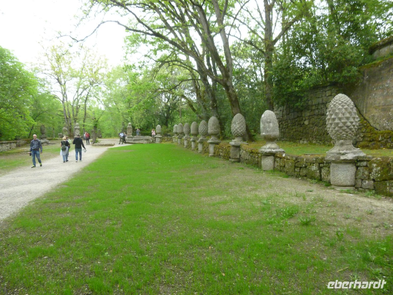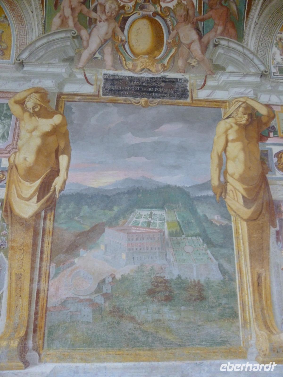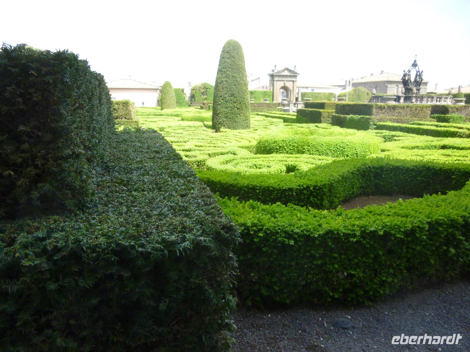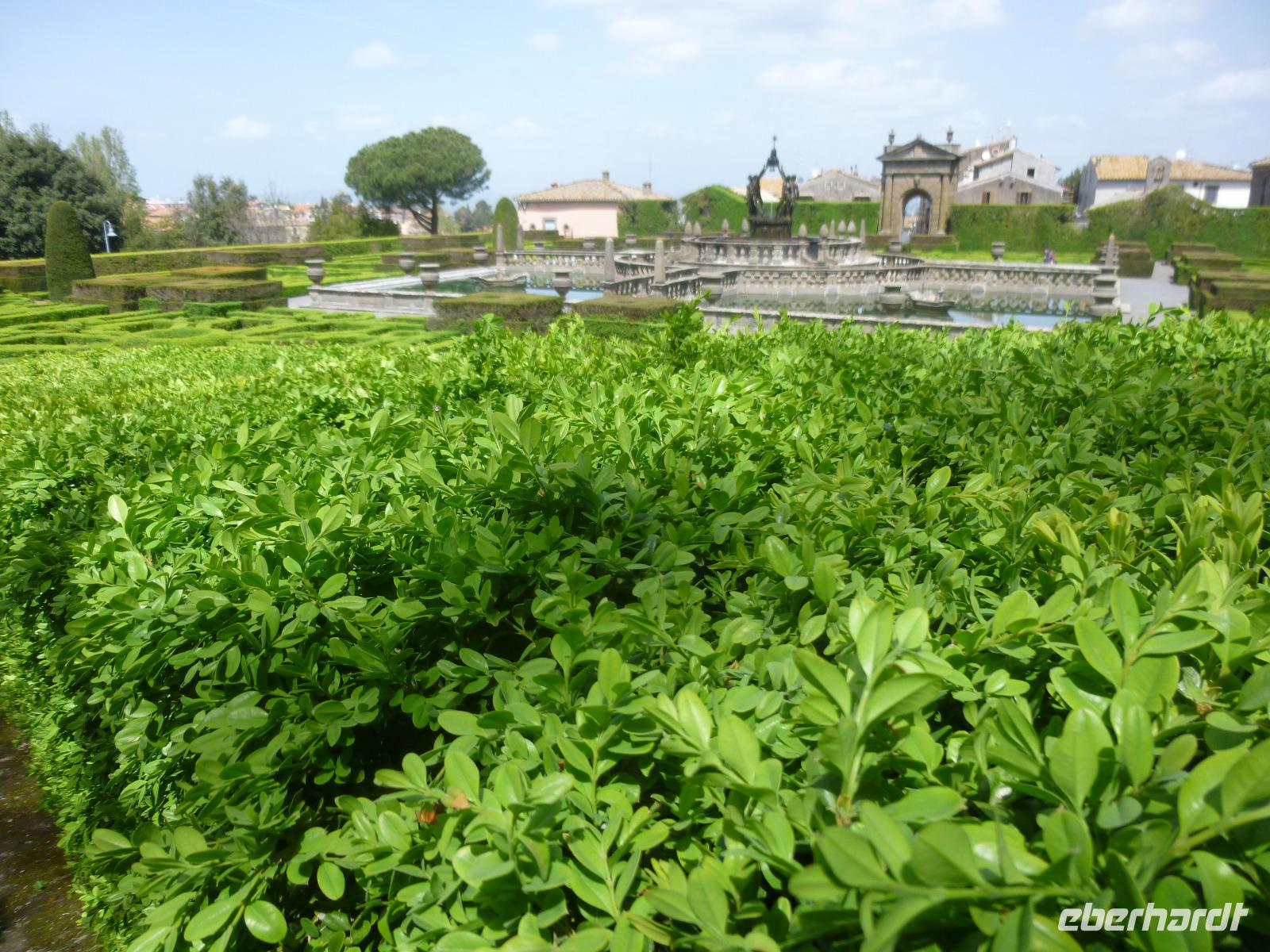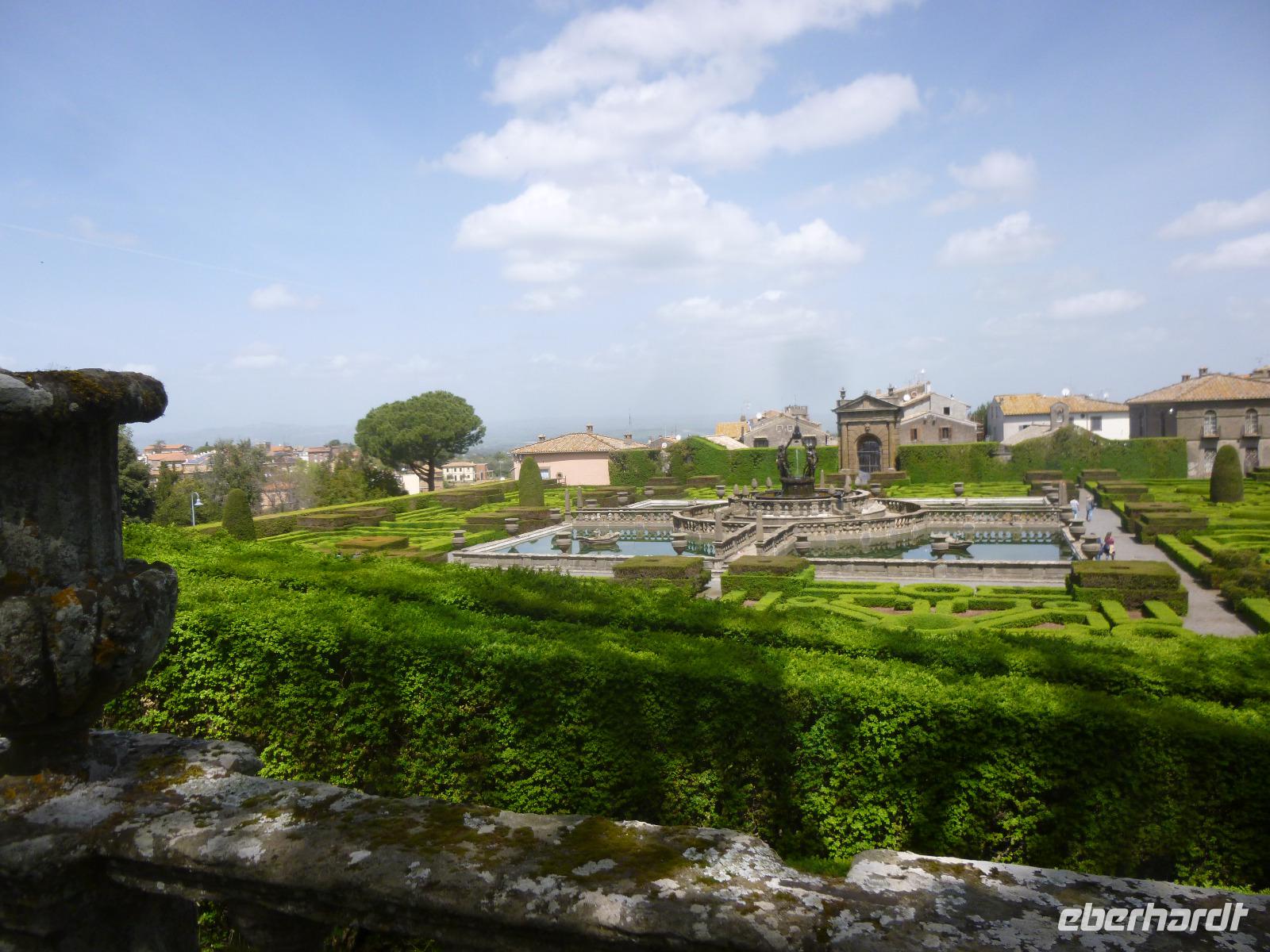Der Garten hat sein Aussehen über 400 Jahre erhalten, wie uns eine gemalte Vedute im Casino des Kardinals Gambara zeigte. Er beauftragte den hoch geschätzten Architekten Giacomo Barozzi da Vignola, der kurz zuvor die 15 km entfernte glanzvolle Sommer-Villa Farnese in Caprarola für Allessandro Farnes gebaut hatte.
