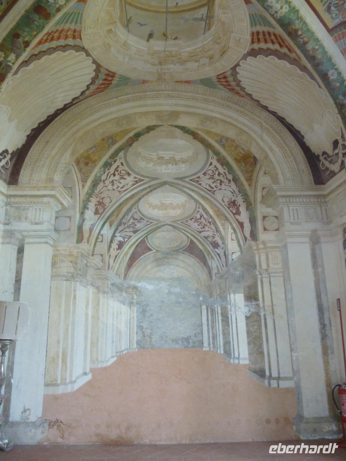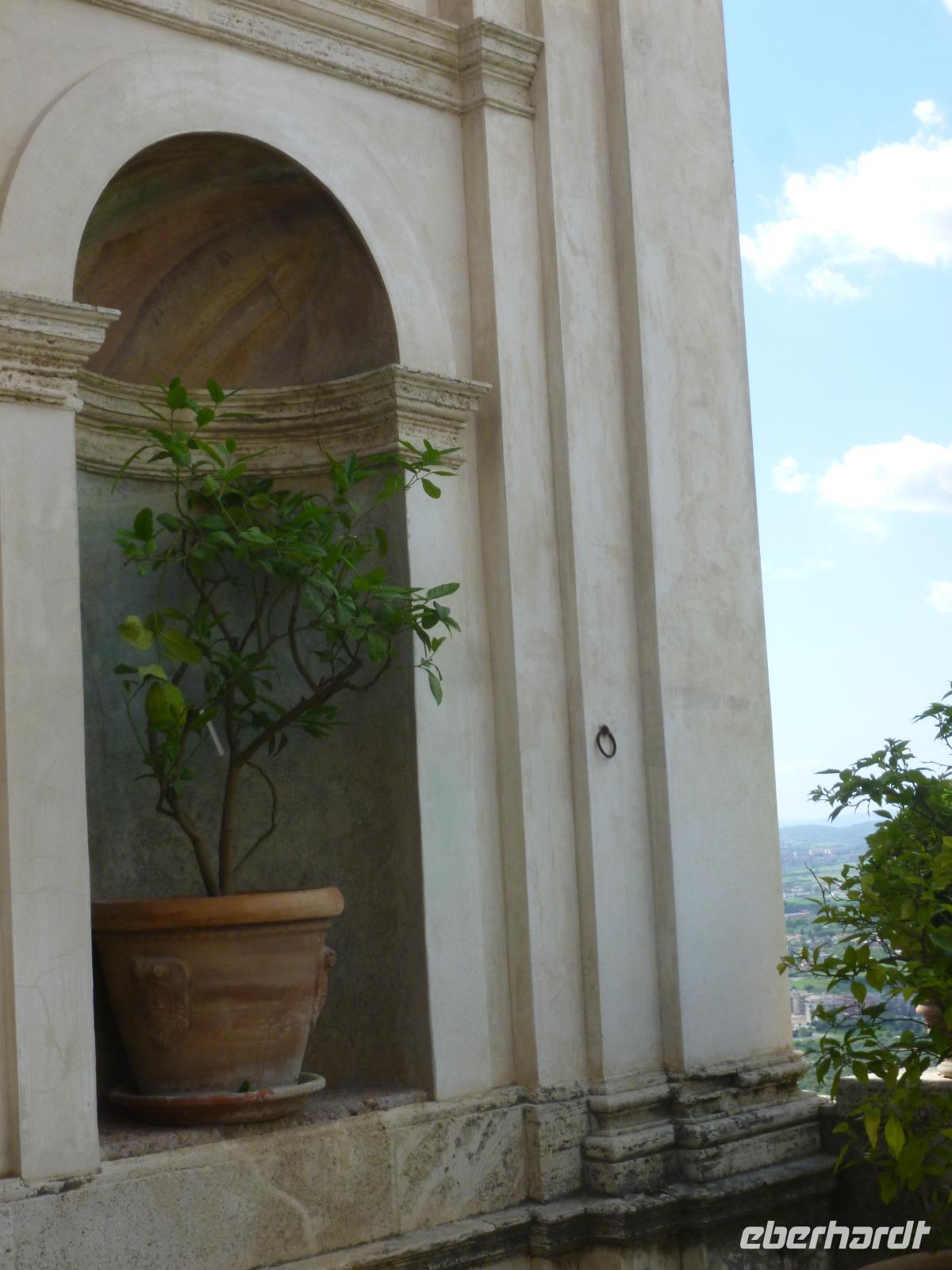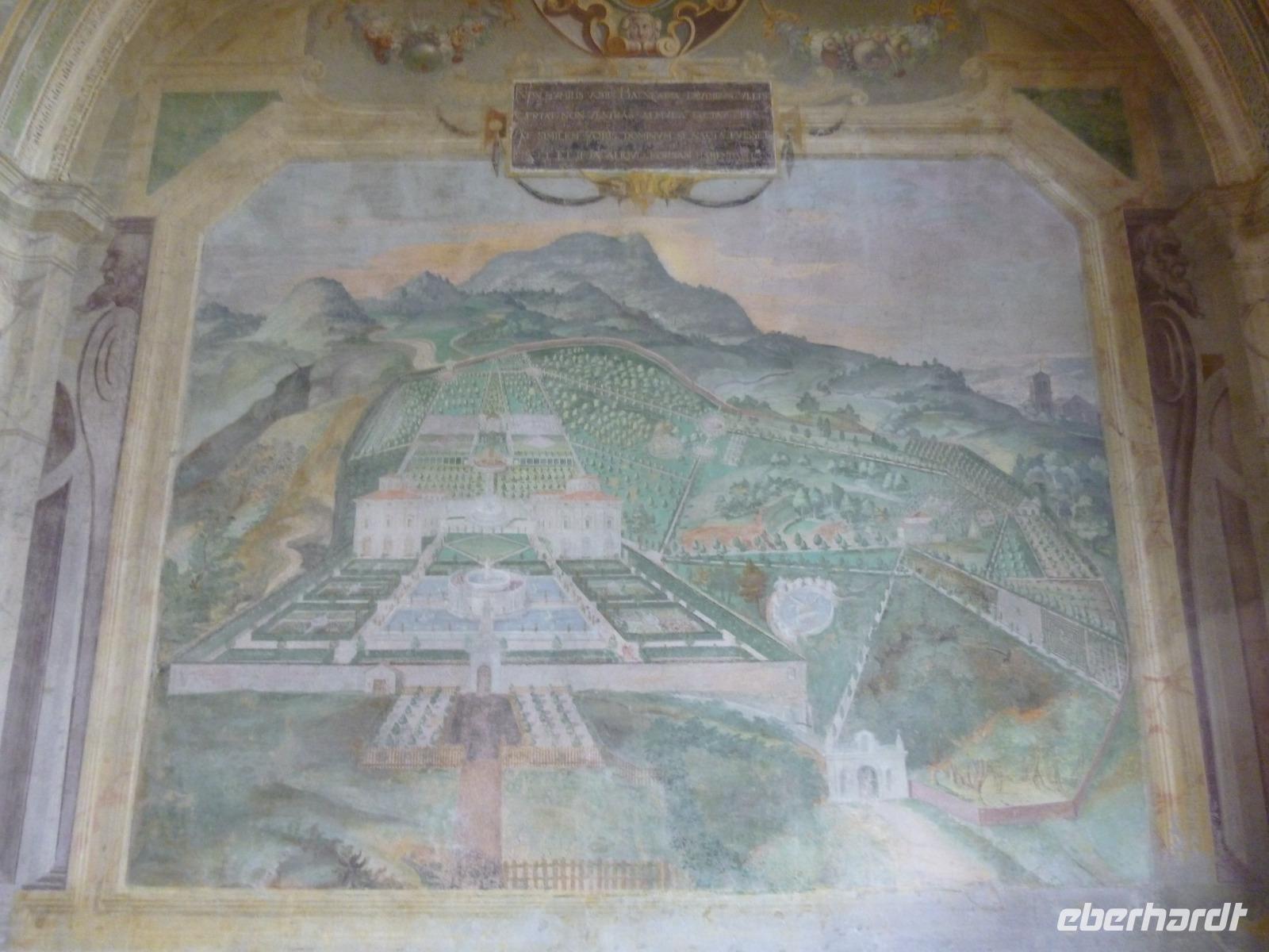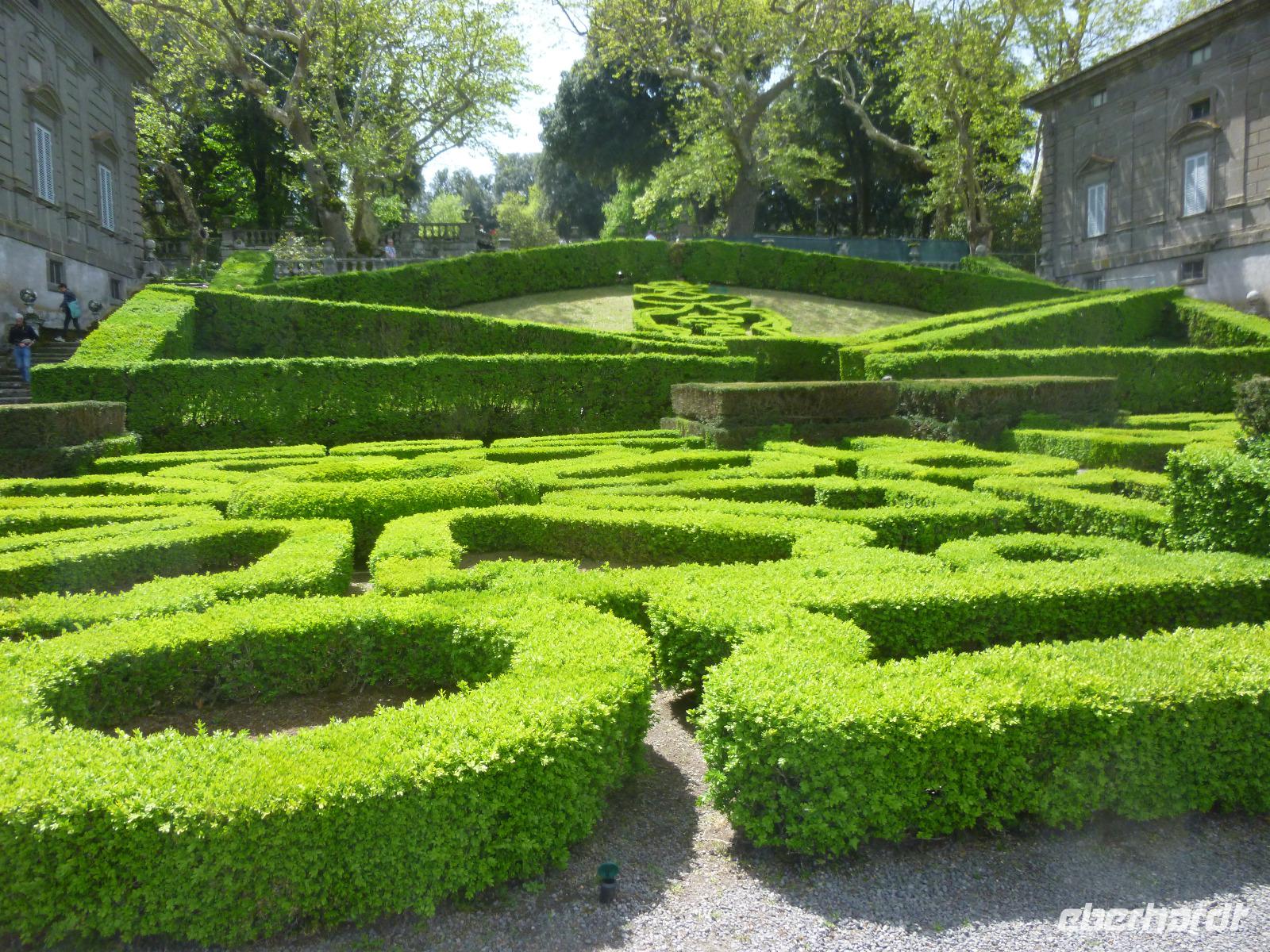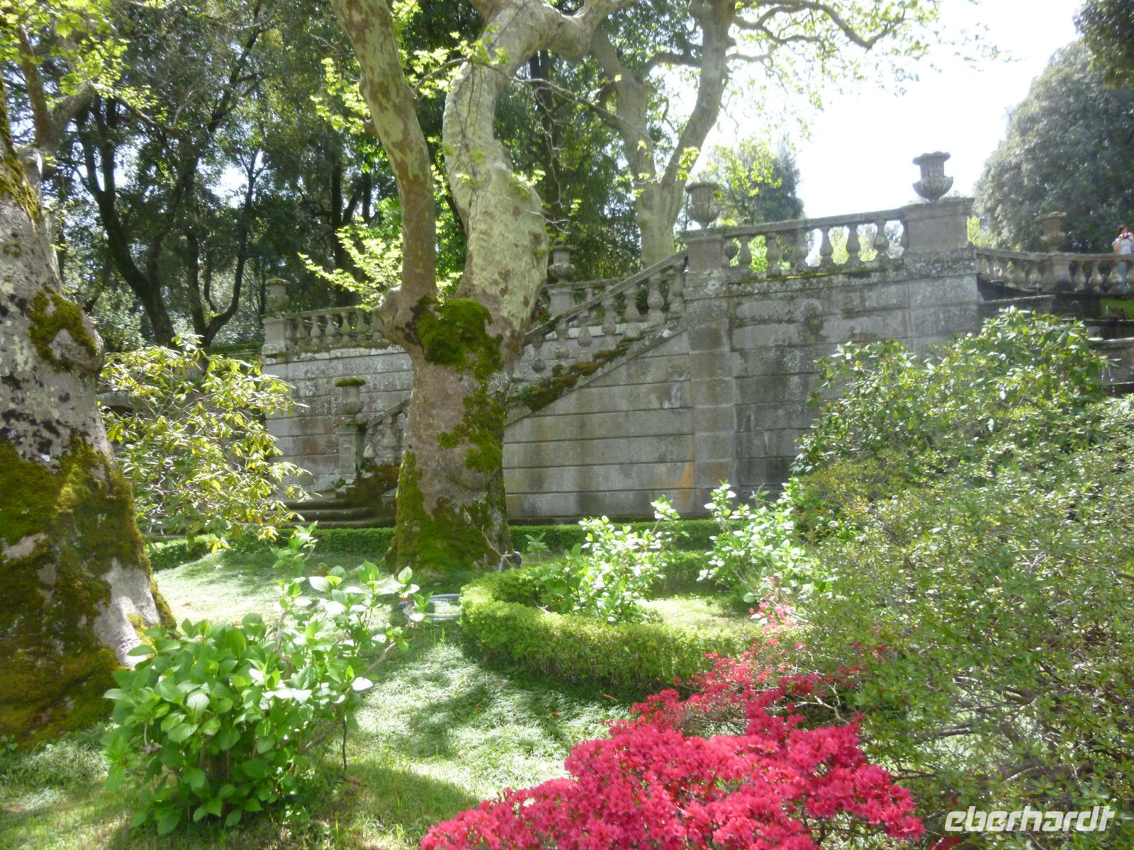 Der Garten hat sein Aussehen über 400 Jahre erhalten, wie uns eine gemalte Vedute im Casino des Kardinals Gambara zeigte. Er beauftragte den hoch geschätzten Architekten Giacomo Barozzi da Vignola, der kurz zuvor die 15 km entfernte glanzvolle Sommer-Villa Farnese in Caprarola für Allessandro Farnes gebaut hatte.