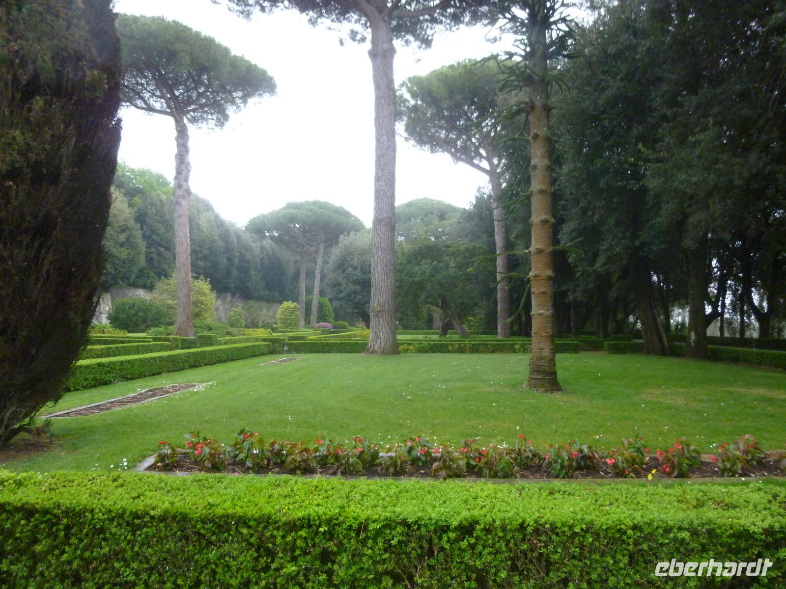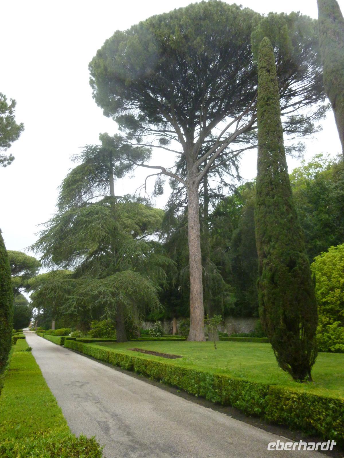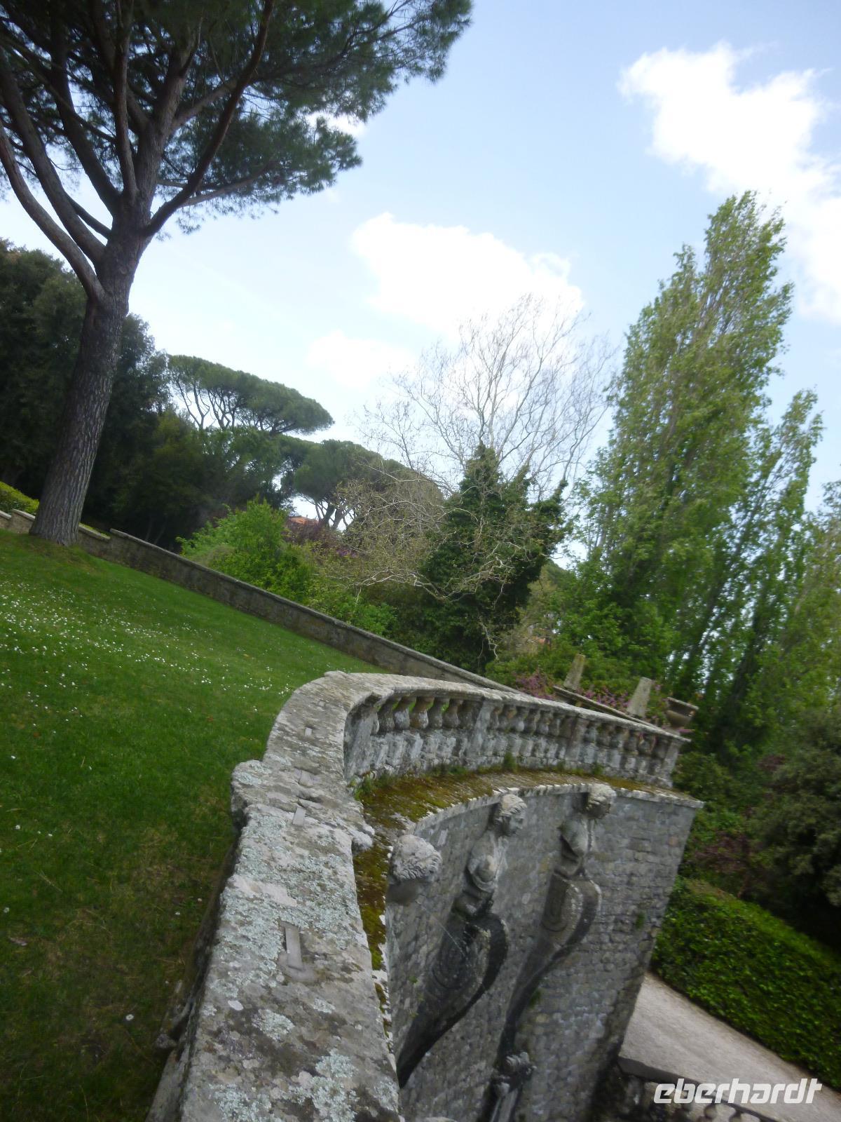 Ermöglicht von Papst Franziskus, ist seit 2014 auch im Sommersitz des Papstes in Castel Gandolfo der Garten für Besucher während eines geführten Rundgangs noch immer zugänglich. So schlenderten wir bei meditativem leichten Nieselregen auf den Wegen der Päpste und ihrer zahlreichen Gärtner über das ehemalige Sommerareal des Kaisers Domitian entlang. Betrachteten sein Theater und antike Spolien, schlenderten zu den Ruinen seines Kryptoportikus und entdeckten schöne Bepflanzungen auf mehreren Terrassen vom Marienheiligtum zum Belvedere, zum Magnoliengarten, zur Viale delle Rose und delle Erbe, zu den „Quattro Labirinti" und zum Arboretum, wo auch der biblische Zederbaum nicht fehlen durfte.