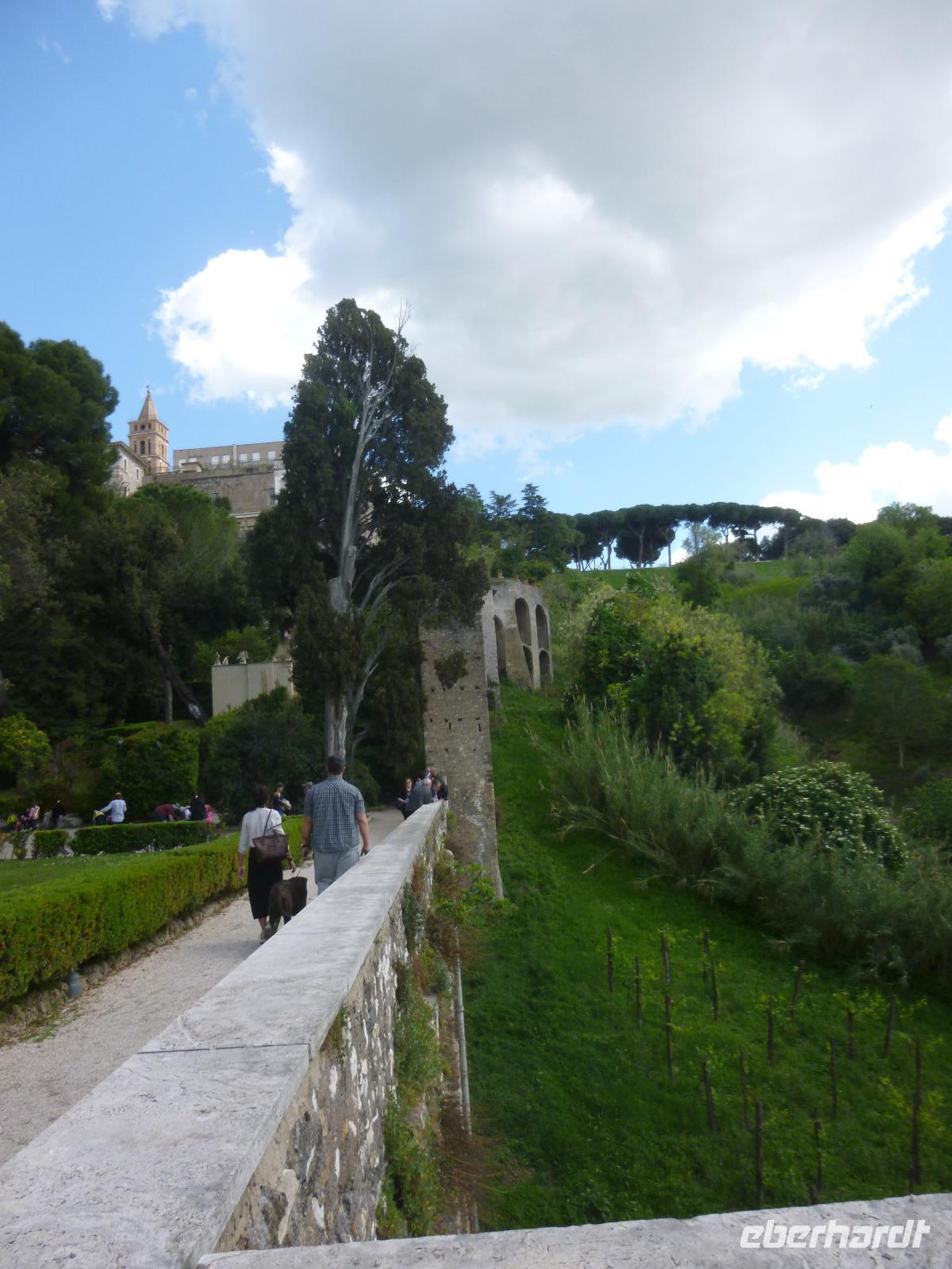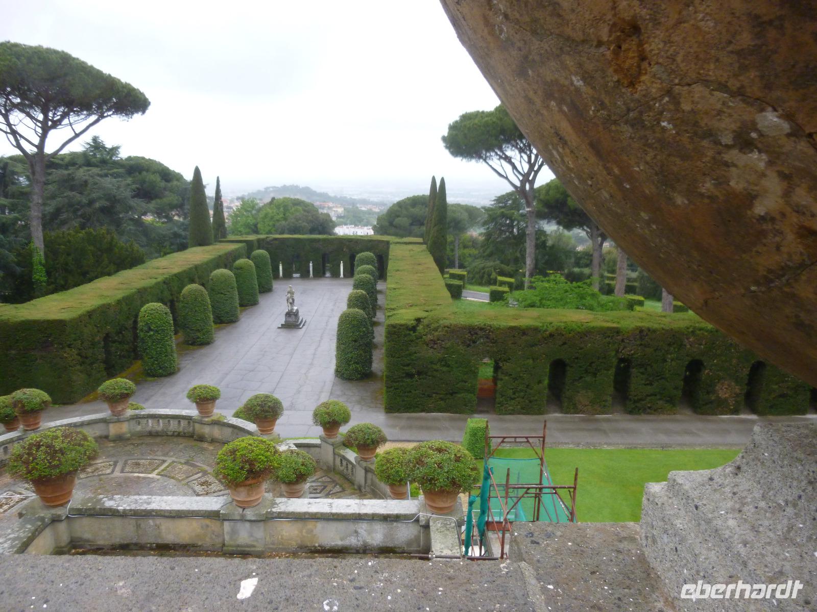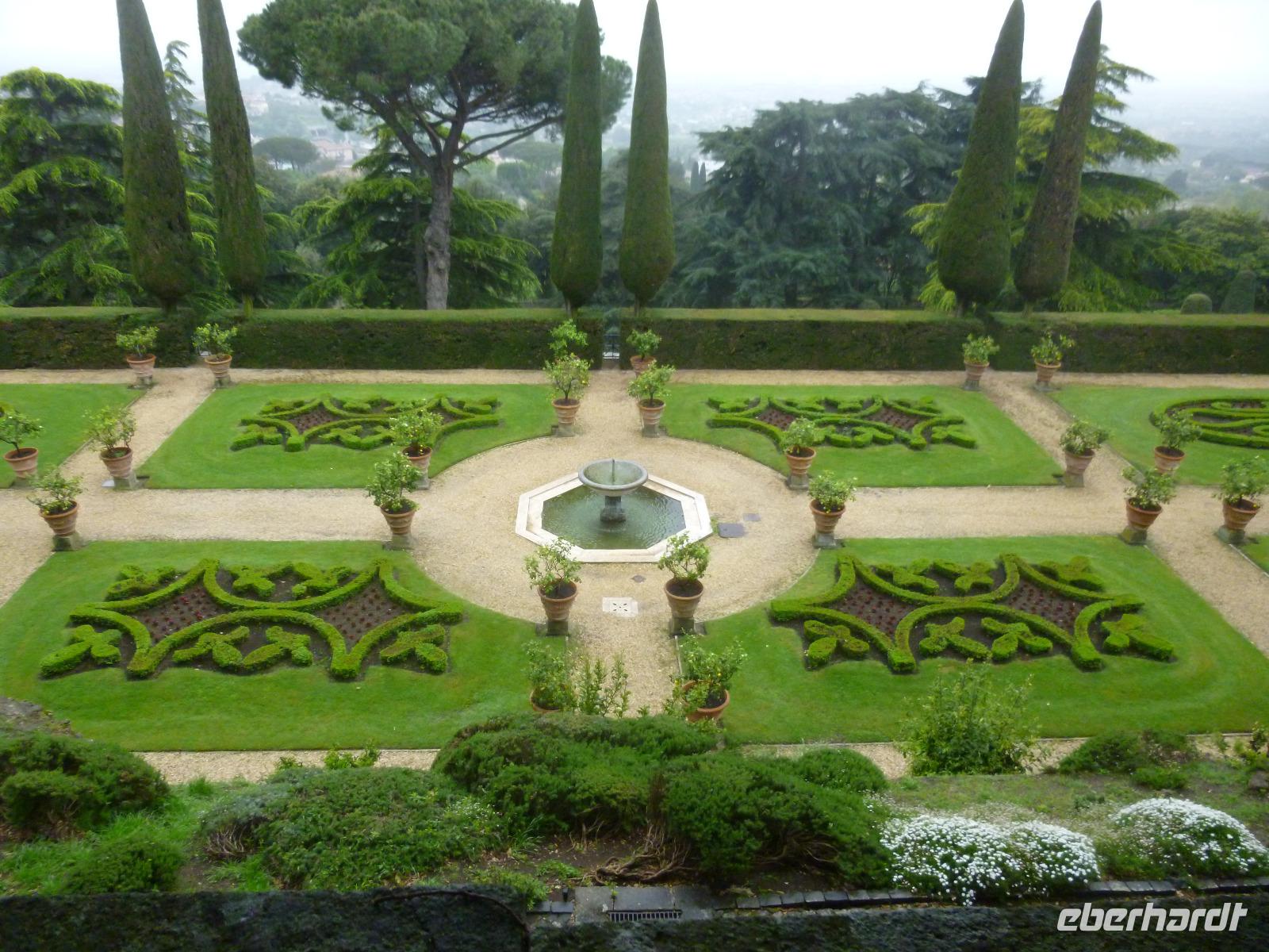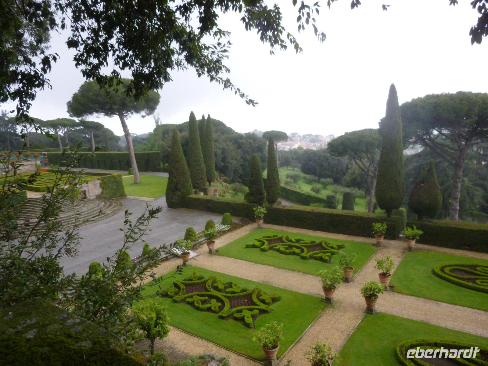 Ermöglicht von Papst Franziskus, ist seit 2014 auch im Sommersitz des Papstes in Castel Gandolfo der Garten für Besucher während eines geführten Rundgangs noch immer zugänglich. So schlenderten wir bei meditativem leichten Nieselregen auf den Wegen der Päpste und ihrer zahlreichen Gärtner über das ehemalige Sommerareal des Kaisers Domitian entlang. Betrachteten sein Theater und antike Spolien, schlenderten zu den Ruinen seines Kryptoportikus und entdeckten schöne Bepflanzungen auf mehreren Terrassen vom Marienheiligtum zum Belvedere, zum Magnoliengarten, zur Viale delle Rose und delle Erbe, zu den „Quattro Labirinti" und zum Arboretum, wo auch der biblische Zederbaum nicht fehlen durfte.