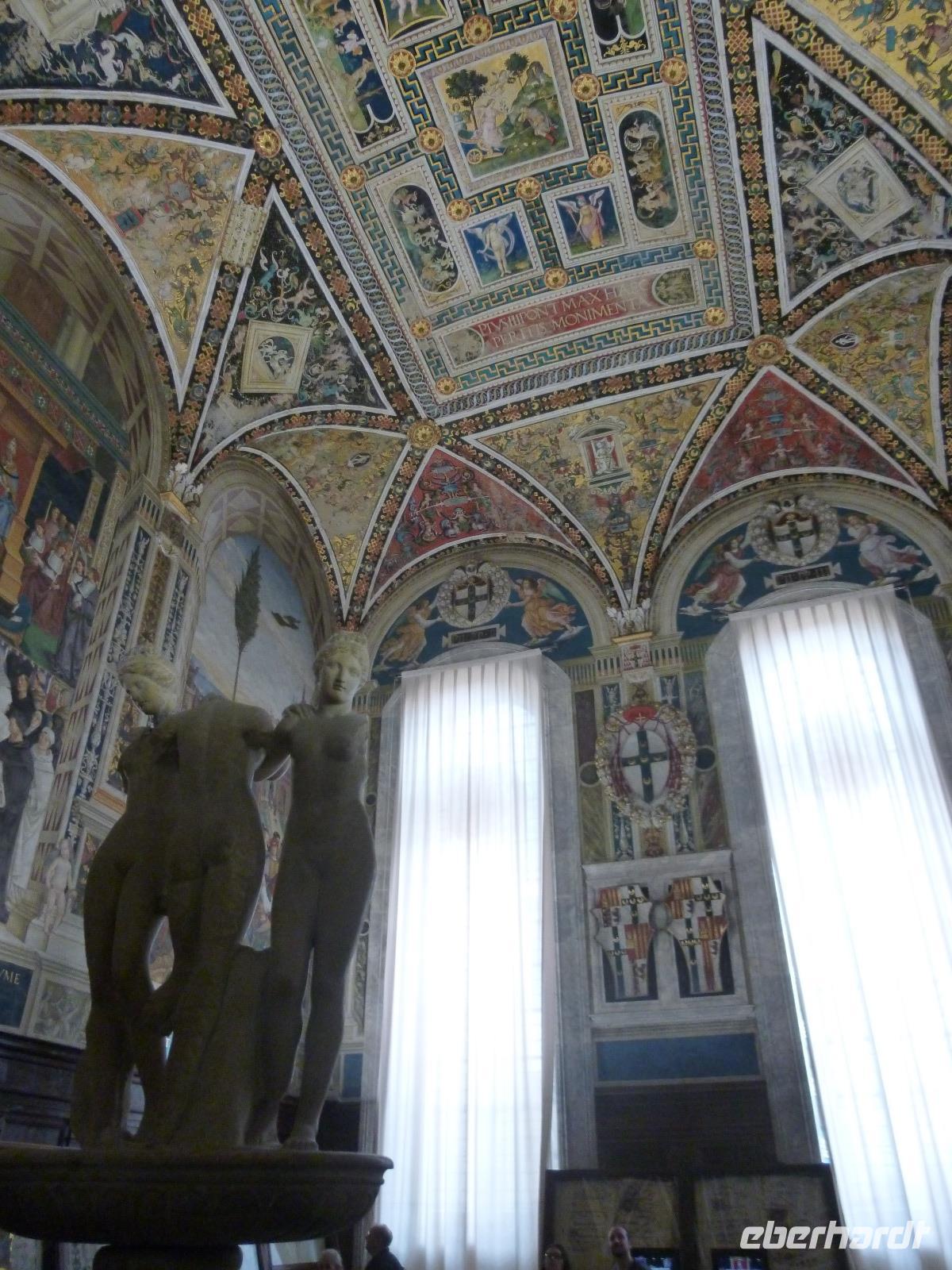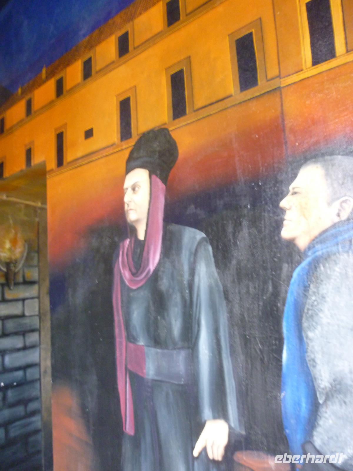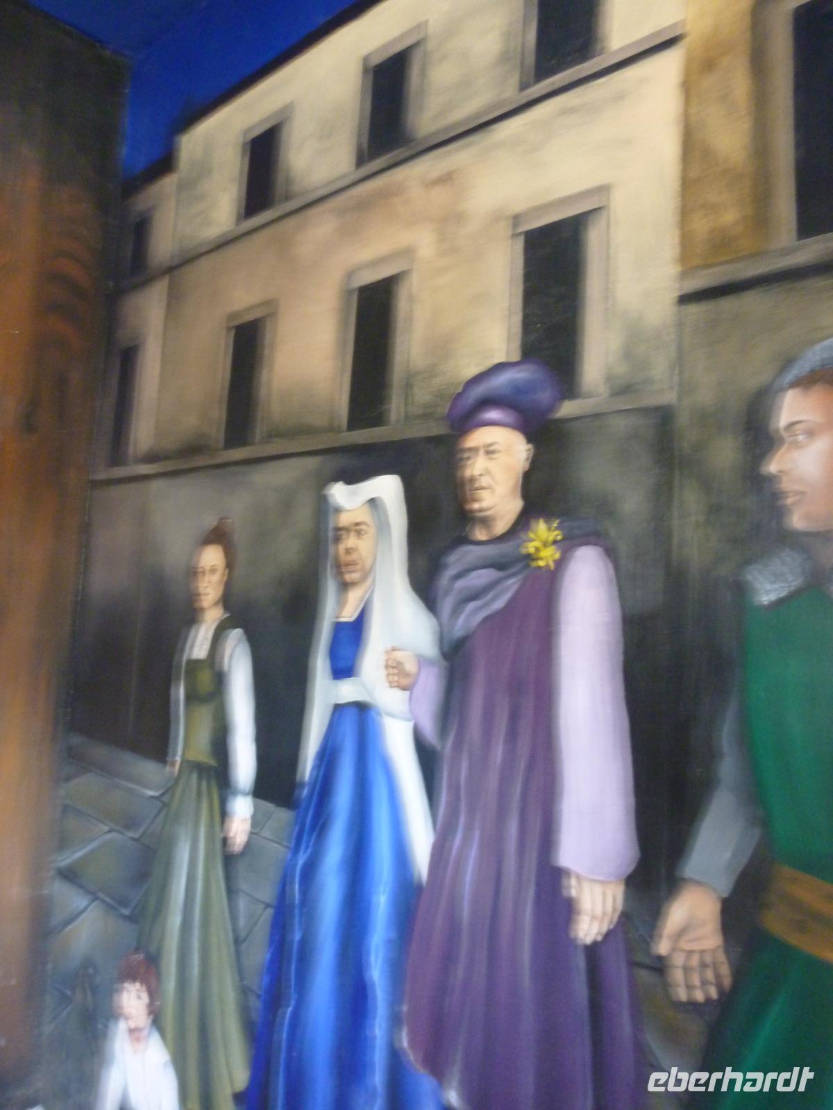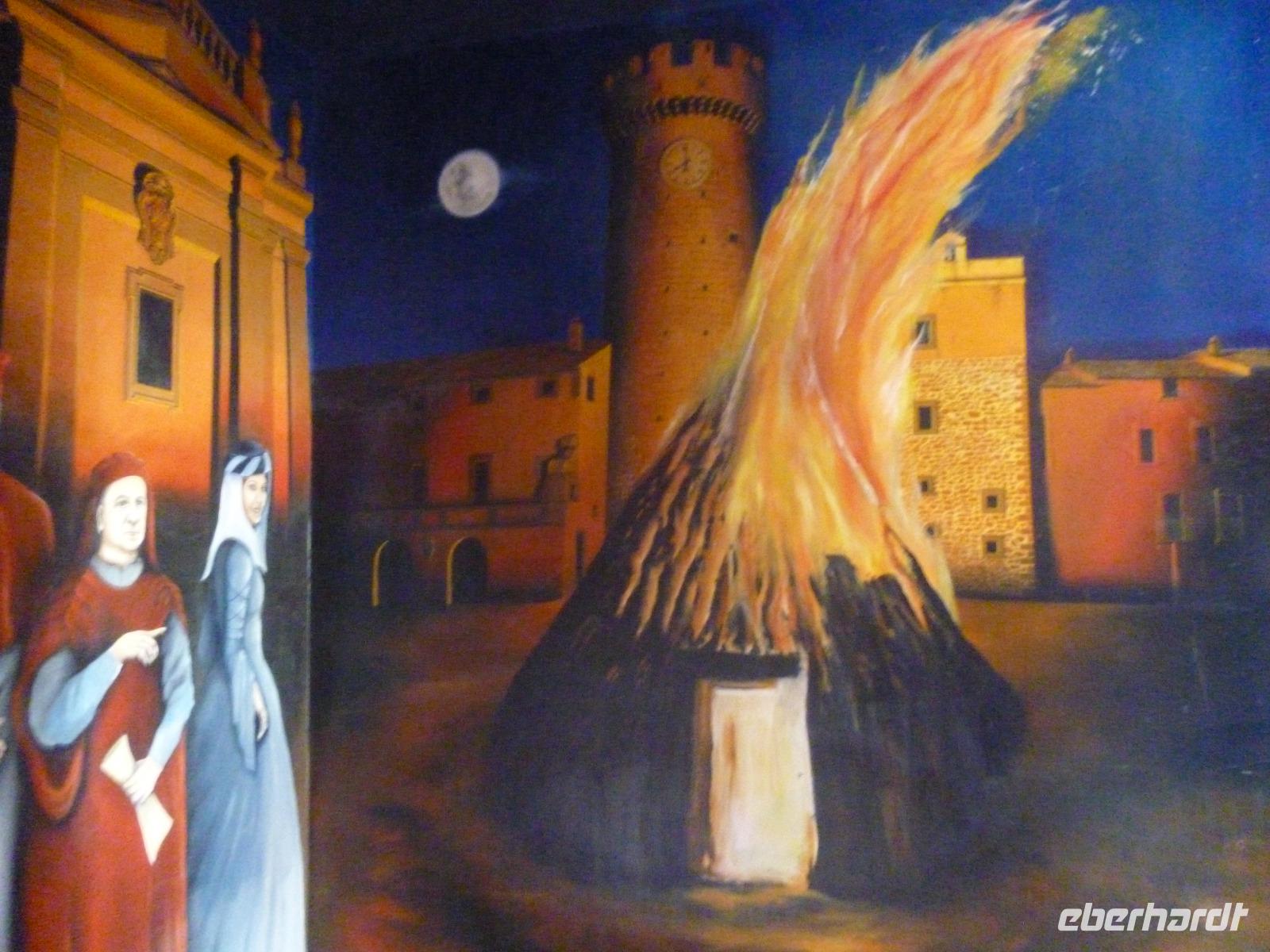 Siena am Franken-Pilgerweg mit seinen starken Frauen (Katharina von Siena und Gianna Nanini), den gotischen Malern, dem Palio-Pferdewettkampf vermittelte uns intensiv Luise auf dem Rundgang durch das mittelalterliche Siena: wir gelangten durch enge Gassen über hügelige Anlagen auf prächtige Plätze mit elegantem Flair zu den Finanz-, Macht- und Glaubensbastionen dieser gotischen Stadt. Höhepunkt war nach dem Treff auf dem Campo der Besuch des schwarz-weiß gestreiften Doms auf einem der drei Hügel mit all seiner Pracht.