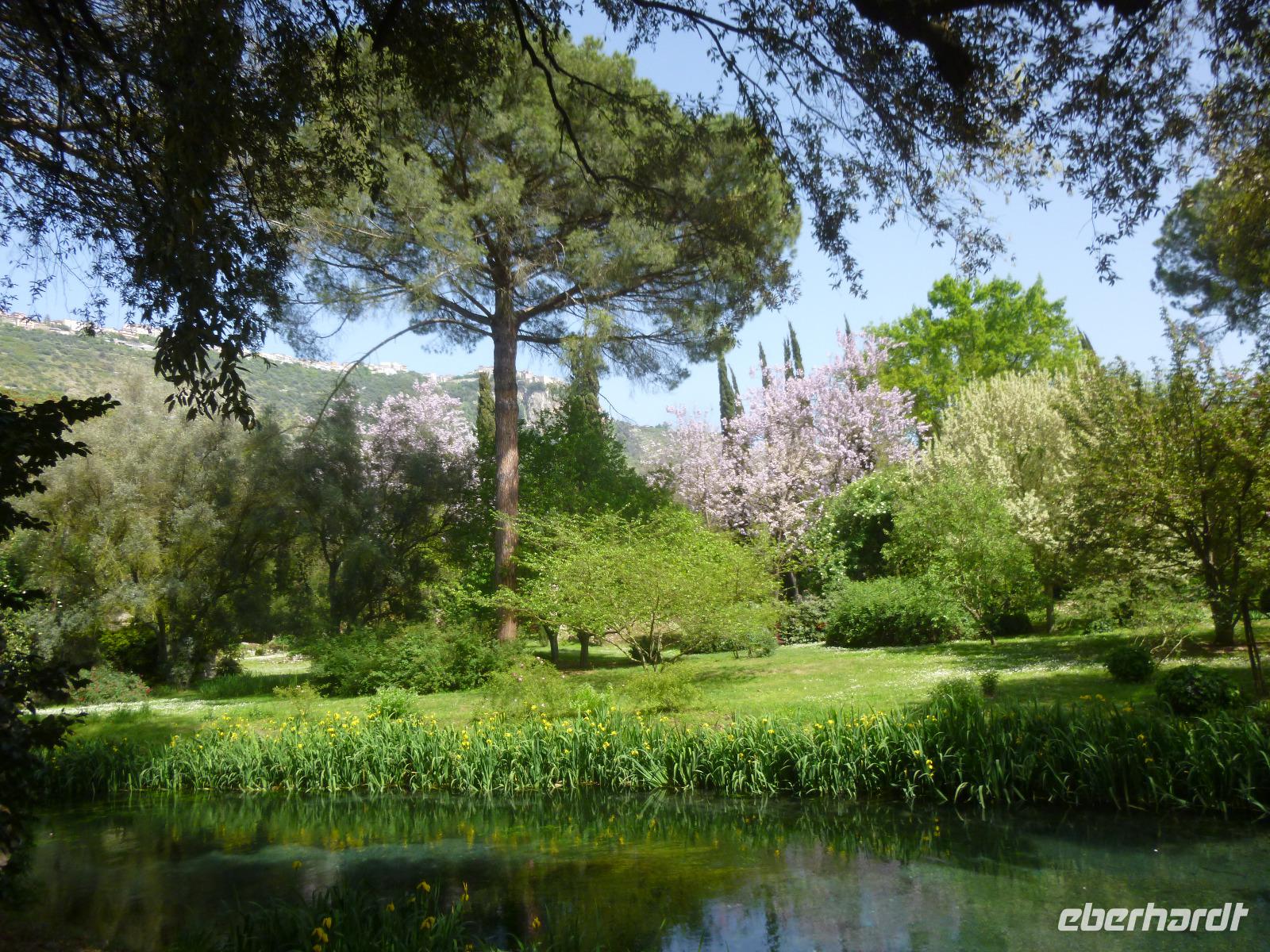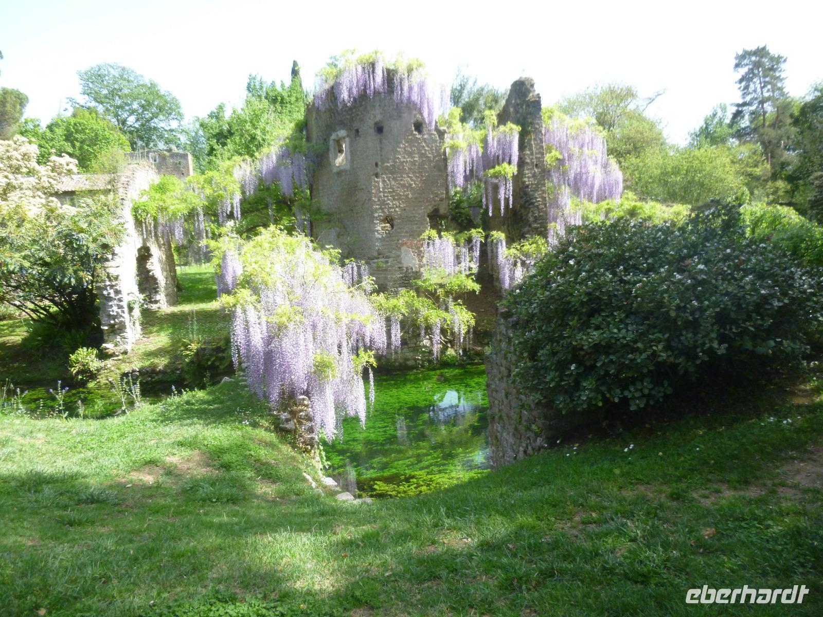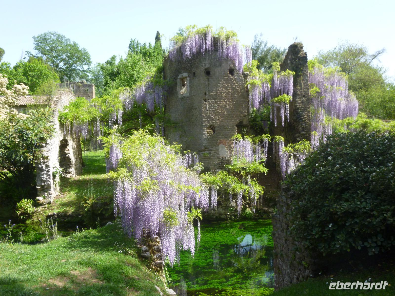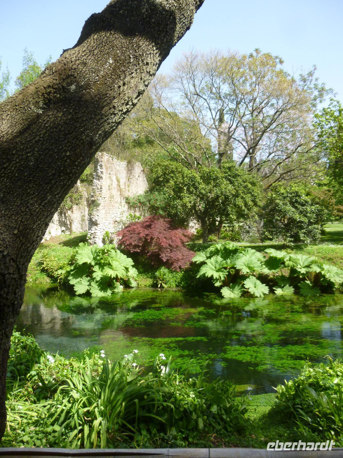 Der Giardino Ninfa - etwa 60 km südlich von Rom am Fuß karger Berge - barg einst ein Wassernymphen-Heiligtum, verdankte seinen Namen also den Nymphen wie auch der Ort und der Fluss, der hier entspringt. Von der einstigen mittelalterlichen Stadt, die bis auf die Ruinen zerstört wurde, zeugen nur noch malerische Ruinen.