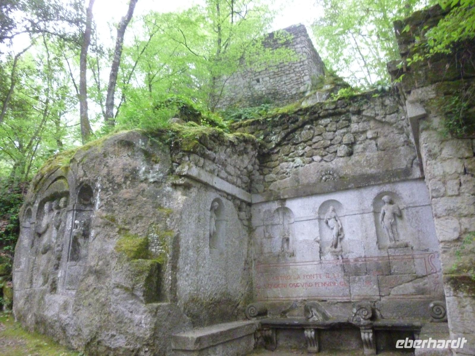 Der unvergleichliche Garten ist im Grunde kein Garten, sondern ein Wald (der formale Garten davor erhielt sich nicht). Als heiligen Wald (sacro bosco) benennt ihn sein Besitzer Vicino aus dem Adelsgeschlecht der Orsinis in Bomarzo bei Viterbo.