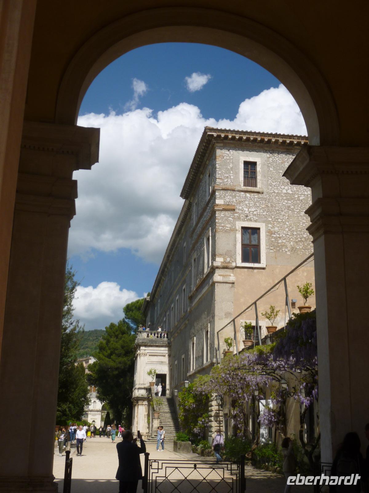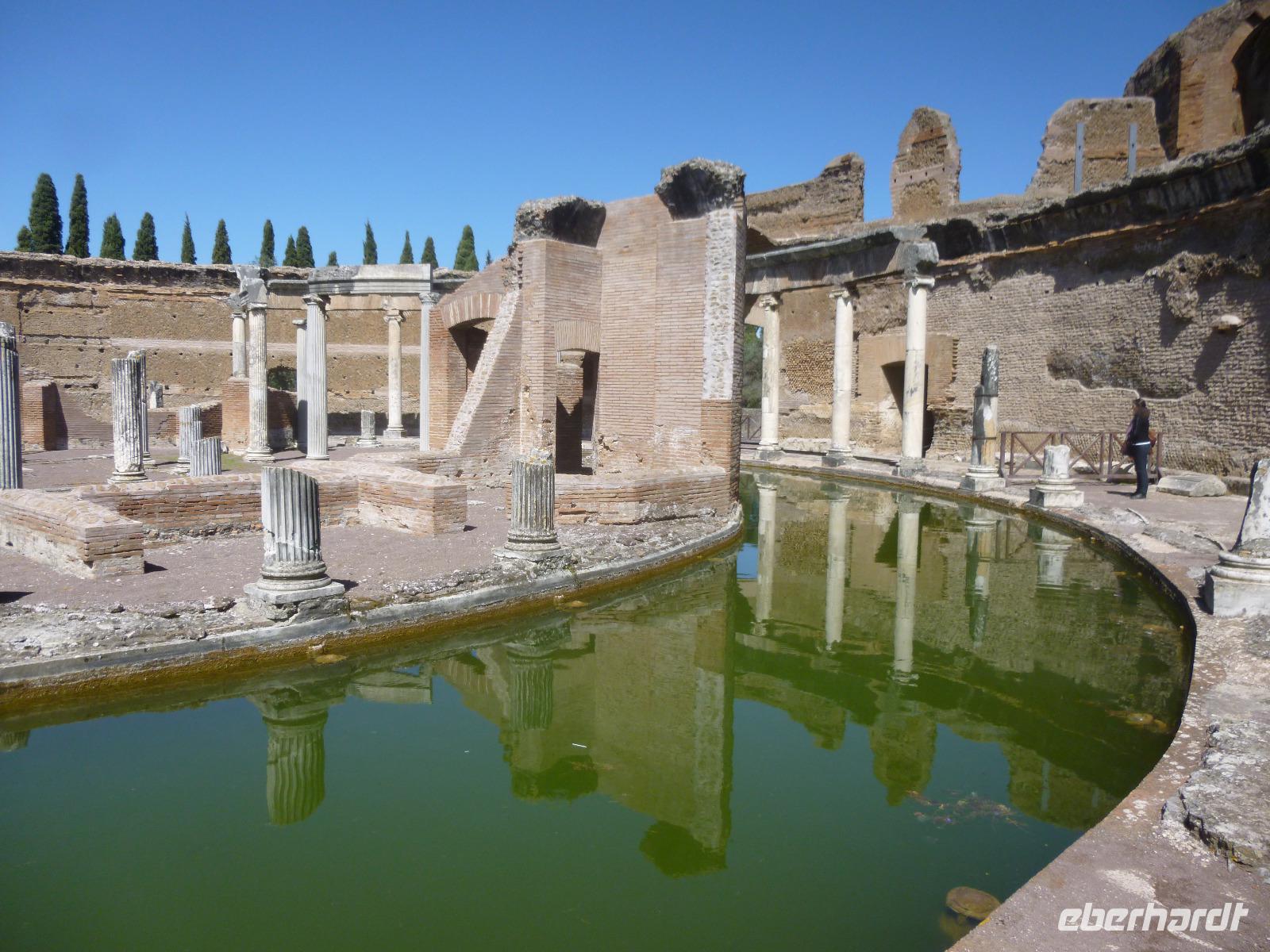 Das antike Tibur war lange schon beliebt als römischer Landsitz wegen seine Wasserfülle und Reinheit der Luft. So ließ auch Hadrian auf einem Areal von etwa 200 Hektar einen kaiserlich- eklektizistischen Sommerpalast mit Repräsentanzbauten, Theatern, Bibliotheken, Bädern, Gartenhöfen, Tempeln und Kasernen errichten.