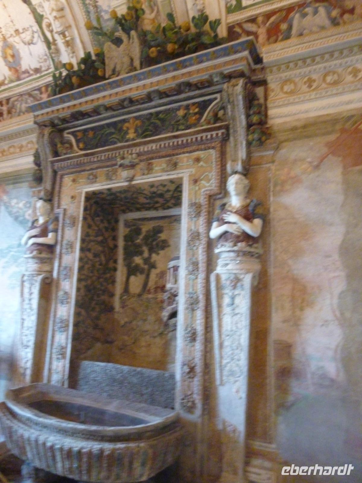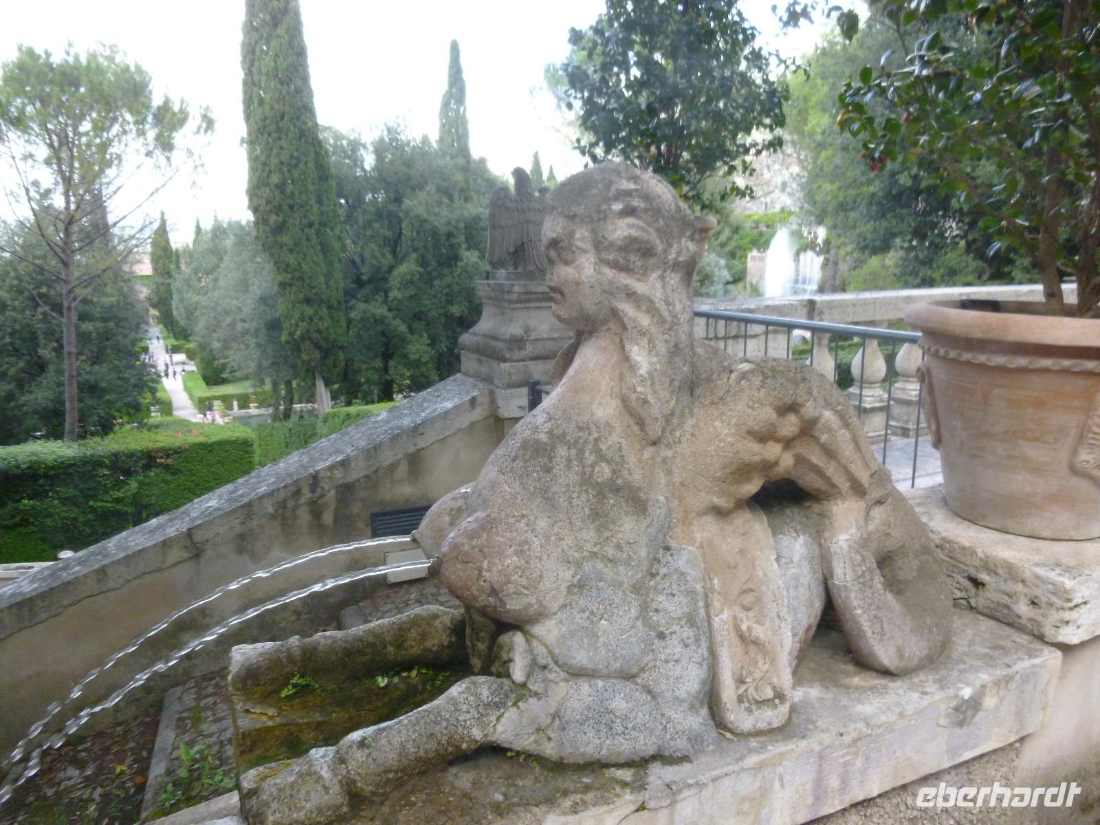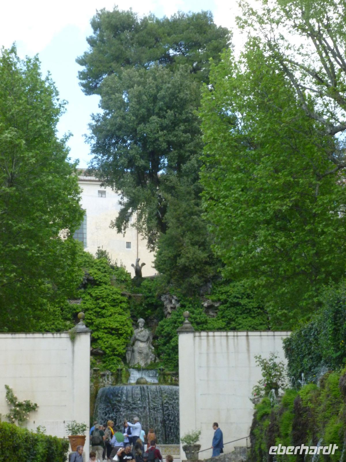 Gestärkt von einem leckeren Mittagessen im Städtchen versammelten wir uns zunächst in den Palasträumen des Kardinals d'Este und bewunderten die unter Zuccari freskierten Palasträume. Danach öffnete sich unserem Blick dem Garten von oben mit seinen Rampen, Wegen, Wasserspielen, Fischteichen und Figuren. Auf den Wegen des Kardinals fanden wir auch zum Orgelbrunnen - faszinierend in seiner Verbindung von Musik und Wasser. Ein Musikautomat, der sich auf antike Hydraulik gründete und dessen Hülle später von Bernini verkleidet wurde.