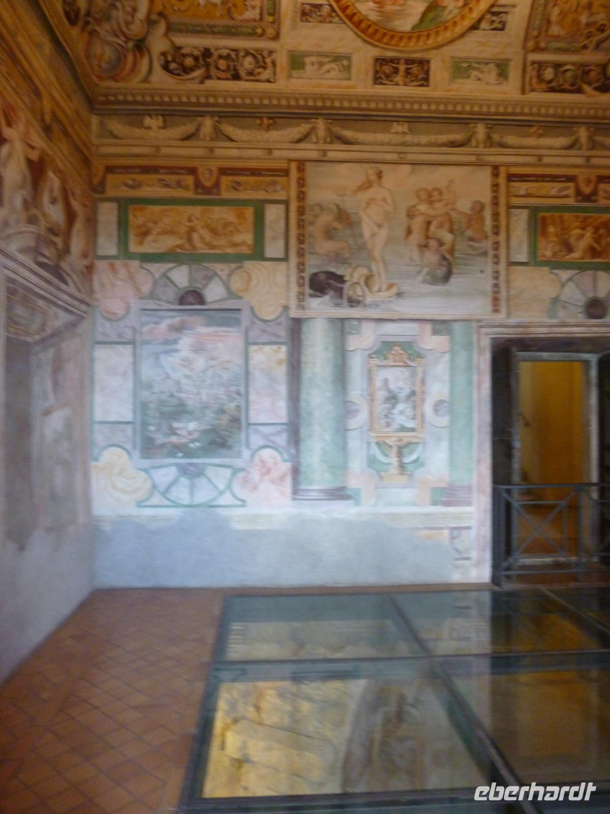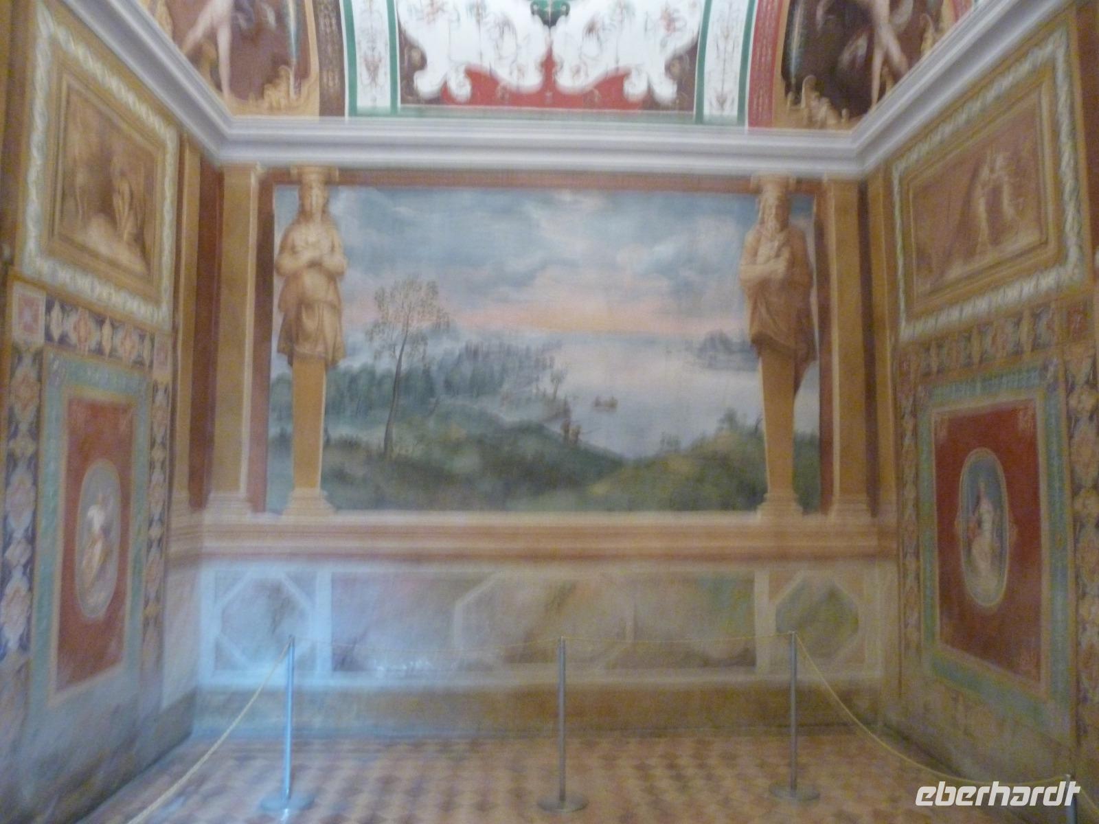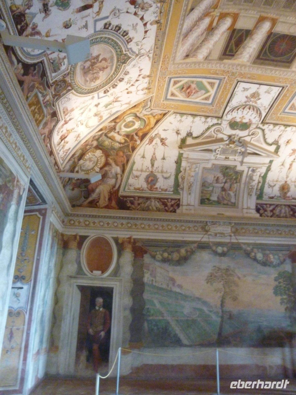 Gestärkt von einem leckeren Mittagessen im Städtchen versammelten wir uns zunächst in den Palasträumen des Kardinals d'Este und bewunderten die unter Zuccari freskierten Palasträume. Danach öffnete sich unserem Blick dem Garten von oben mit seinen Rampen, Wegen, Wasserspielen, Fischteichen und Figuren. Auf den Wegen des Kardinals fanden wir auch zum Orgelbrunnen - faszinierend in seiner Verbindung von Musik und Wasser. Ein Musikautomat, der sich auf antike Hydraulik gründete und dessen Hülle später von Bernini verkleidet wurde.
