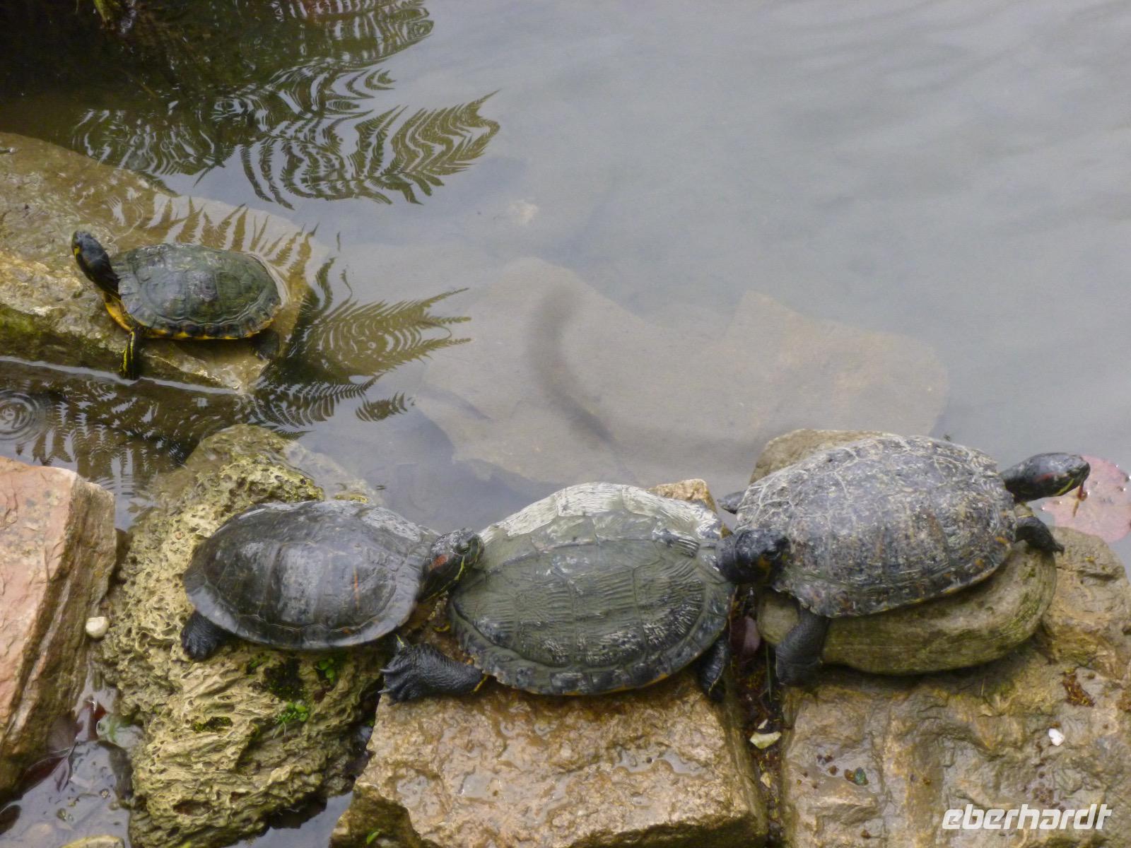 Danach umfuhren wir die romantische Schlucht mit geleiteten Wasserfällen und römischen Tempeln, den "Gregorianischen Garten" aus dem 19. Jahrhundert, der einige Berühmtheiten gesehen hatte. Er ist aus Gründen des Überschwemmungsschutzes auf Initiative Papst Gregors angelegt worden.