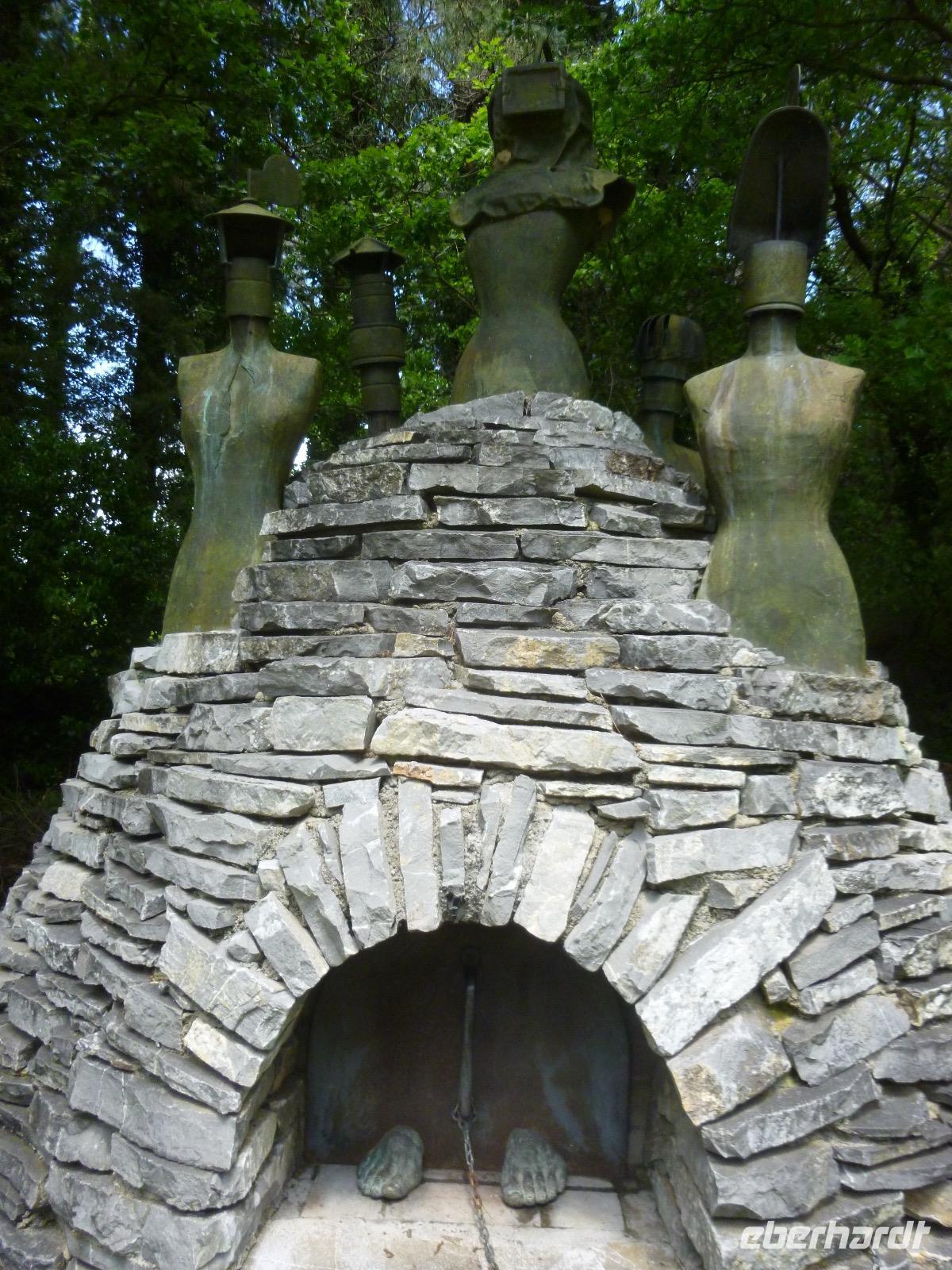 Doch was er mit seinem Weltgarten am Gardasee hinterließ, ist stilvoll und bezaubernd genug, um uns in seiner einmaligen Mischung aus Kunst und Natur zu erfreuen. Rund 30 Skulpturen und Installationen lassen sich zwischen Bäumen, Felsen, Wasserläufen, Sträuchern und Blumen, Gewächse aus allen Ländern entdecken, wie Bambus, Kampferbaum, Korkeiche, Urweltmammutbaum, Kanarischer Drachenbaum, Neuseeländer Flachs und persischer Eisenholzbaum, die der Zahnarzt Hruska teilweise dort zuvor versammelte. Stets wandelt sich dieser Garten und zu fast jeder Jahreszeit ist etwas zu entdecken.