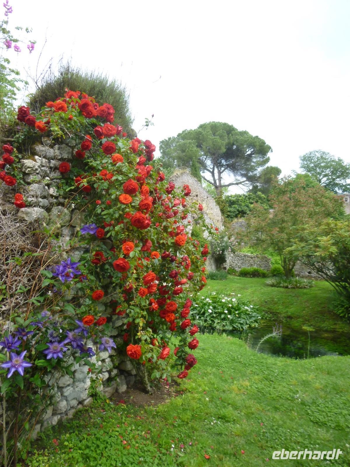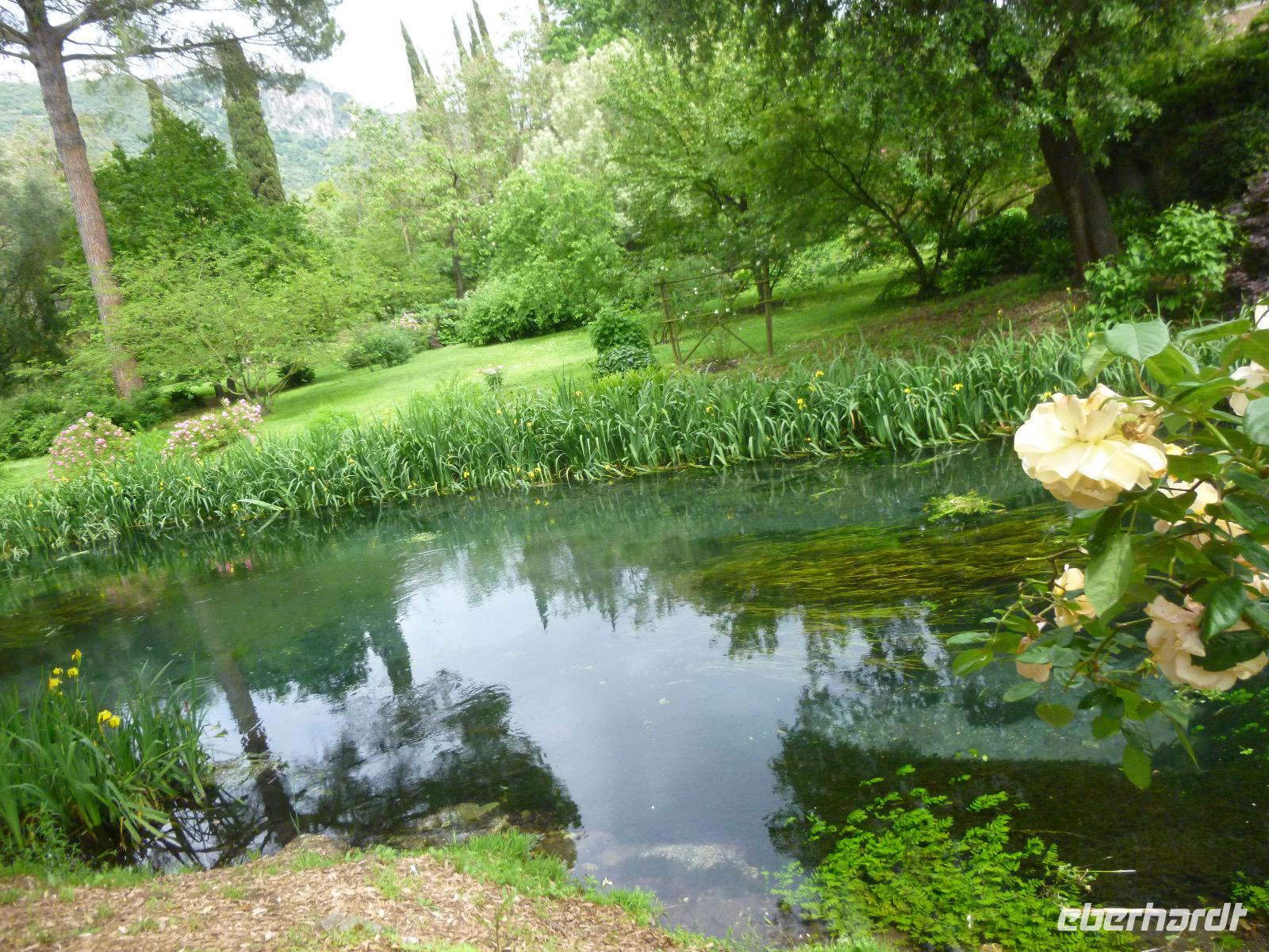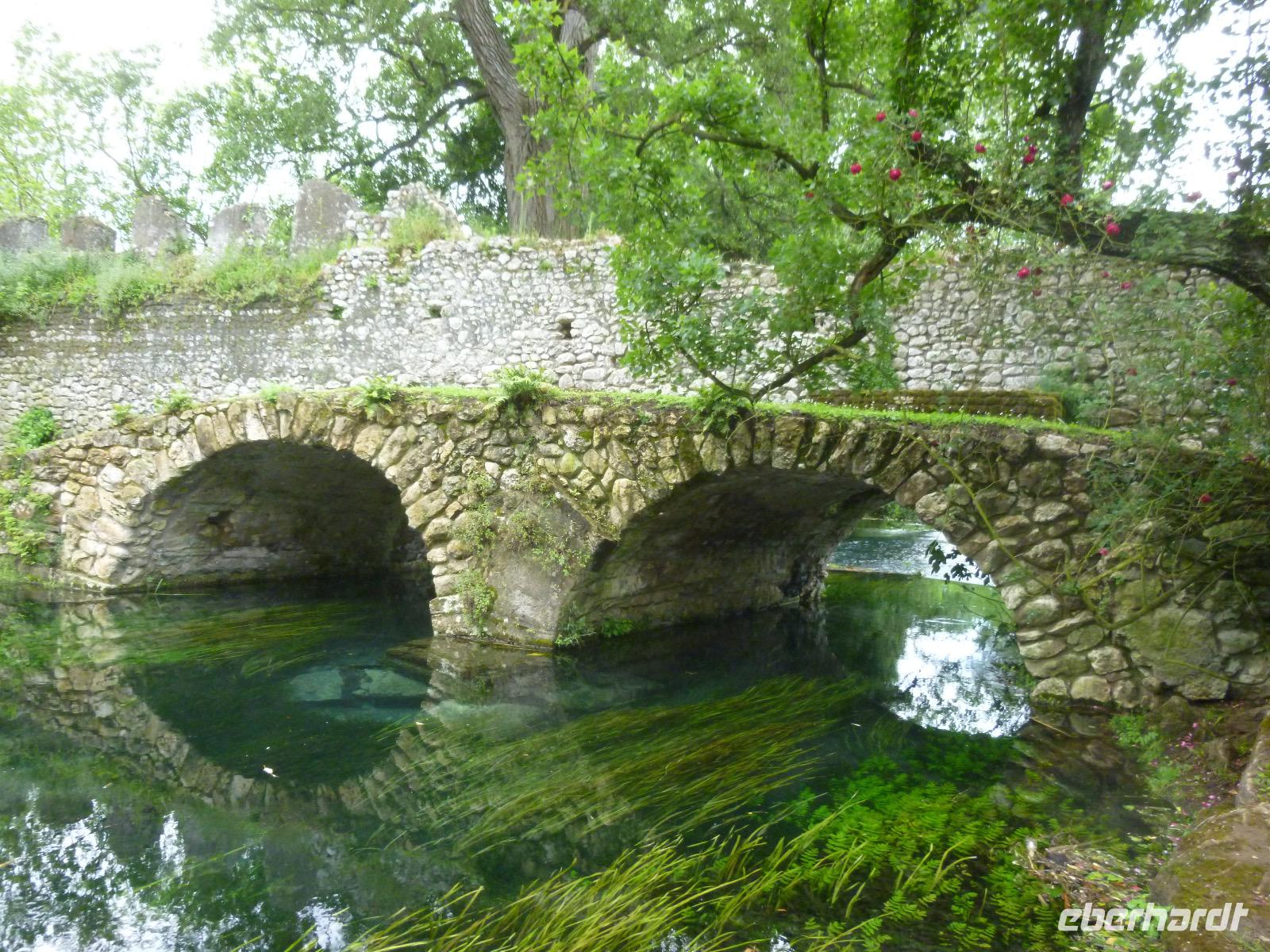 Wunderschöne alte Rosenarten wetteiferten mit der Frische und Klarheit des Ninfaflusswassers und seinen Spiegelbildern und wir hatten das Gefühl, in einem Garten Eden zu sein.