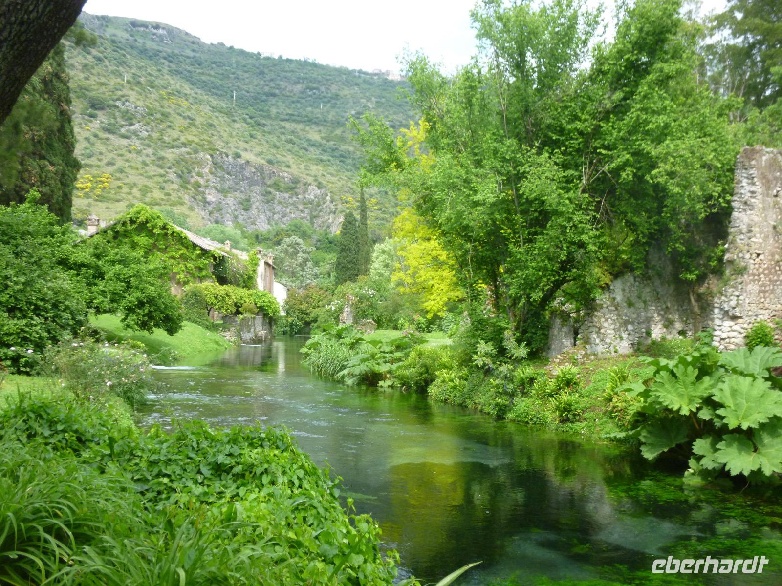 Jeder kann sich selbst fragen, ob für ihn der Nymphengarten einer der romantischsten Gärten des Landes ist. Unbestreitbar jedoch ist aus etwas Schrecklichem etwas Schönes entstanden: Der Giardino Ninfa - etwa 60 km südlich von Rom am Fuß karger Berge - barg einst ein Wassernymphen-Heiligtum, verdankte seinen Namen also den Nymphen wie auch der Ort und der Fluss, der hier entspringt. Von der einstigen mittelalterlichen Stadt, die bis auf die Ruinen zerstört wurde, zeugen nur noch malerische Ruinen.