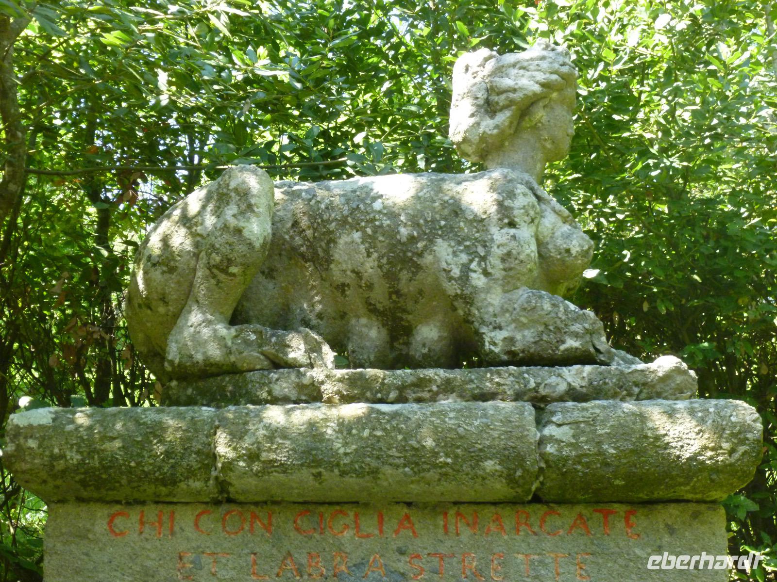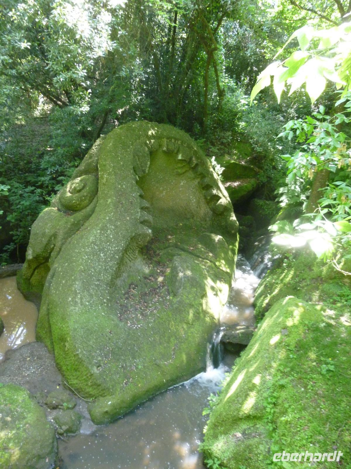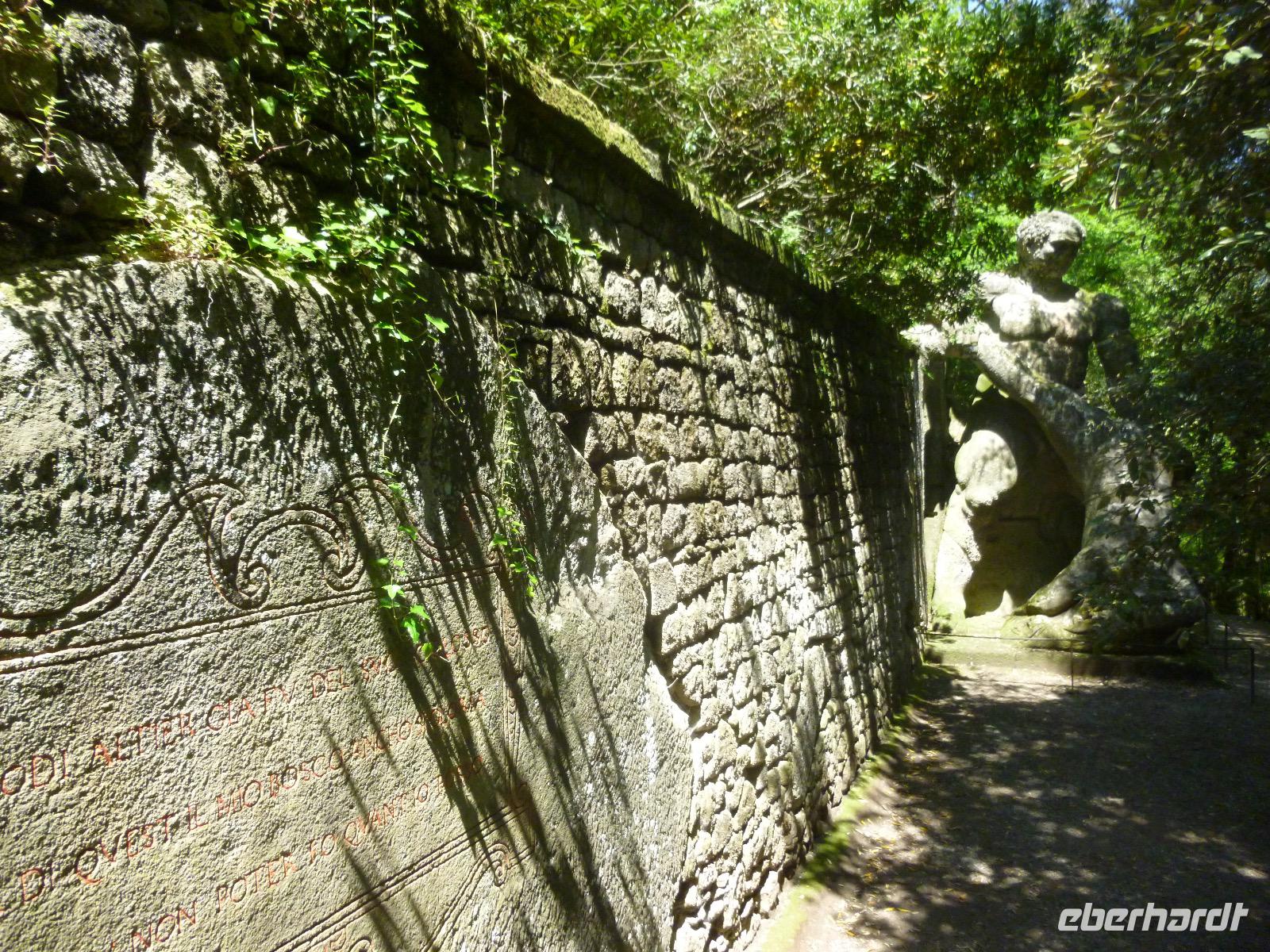 Uns eröffnete sich dort ein verwunschener Waldpark voller Rätsel aus bewegter frühbarocker Zeit. Hier gelang es dem Schöpfer, einem gebildeten feinsinnigen Landadeligen, ein Reich des Skurrilen zu erschaffen, das später Dali und Niki de Saint Phalle inspirierte. Er erschuf den Garten in drei Phasen: erst entstand die Theateranlage und die Brunnen (Pegasusbrunnen), dann das obere Plateau mit Monumentalvasen und schließlich ganz oben das Tempelchen für seine verstorbene Frau Giulia Farnese.