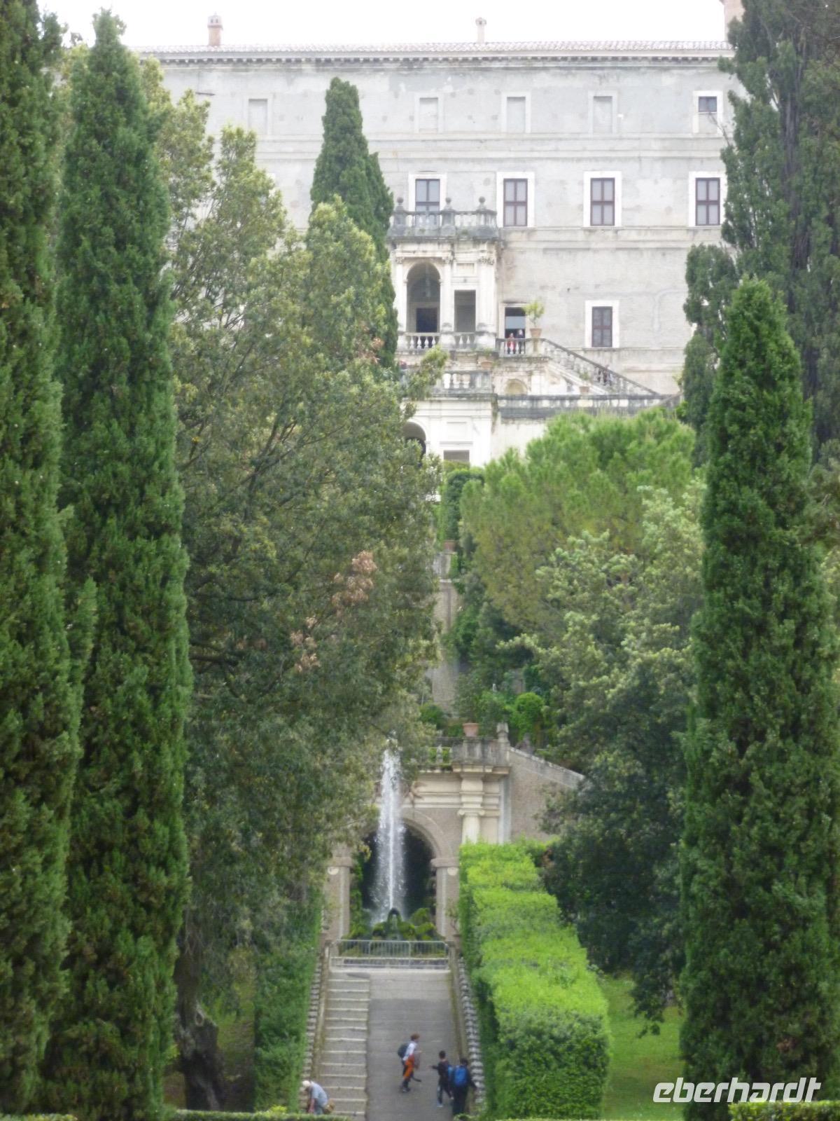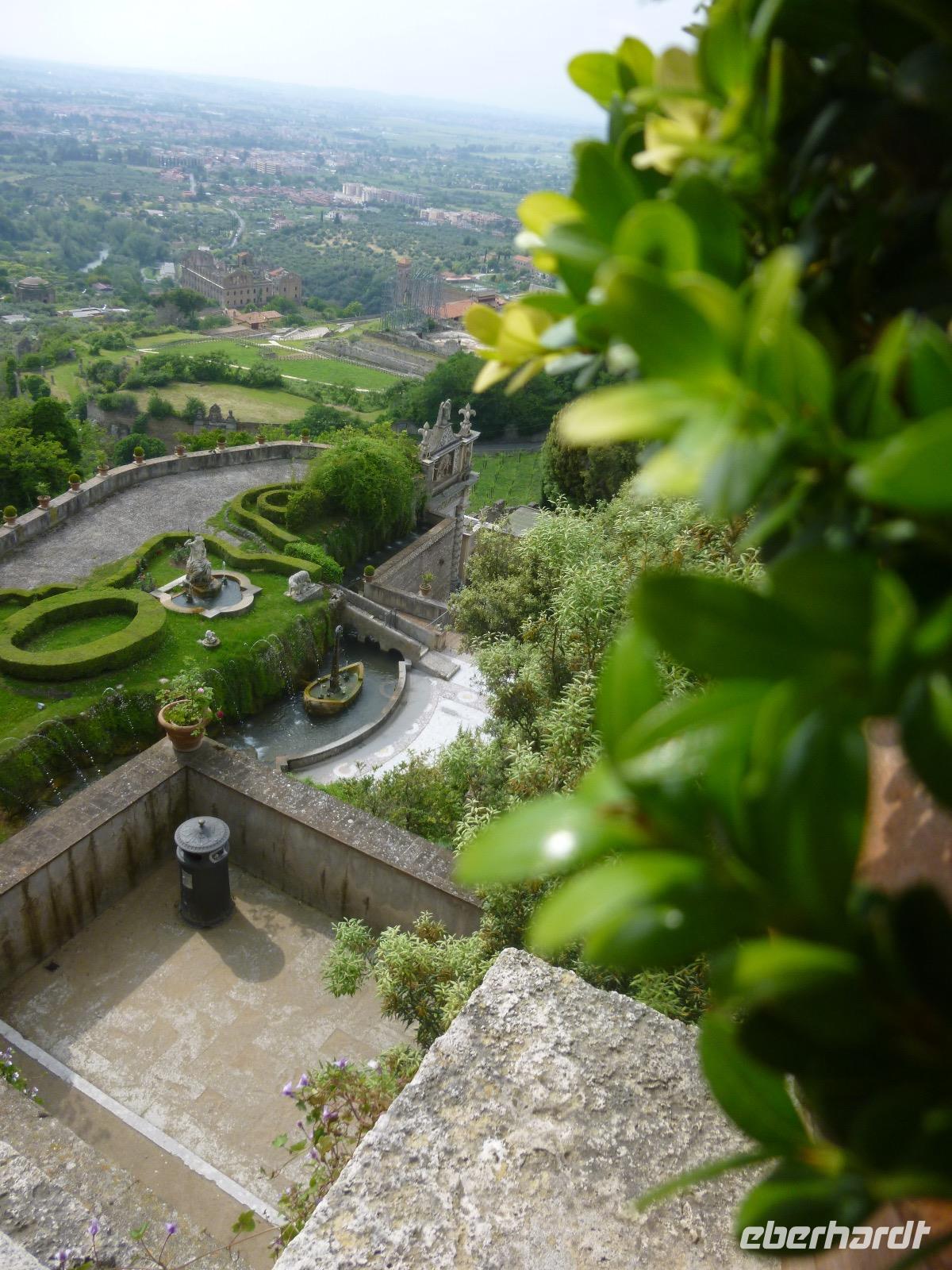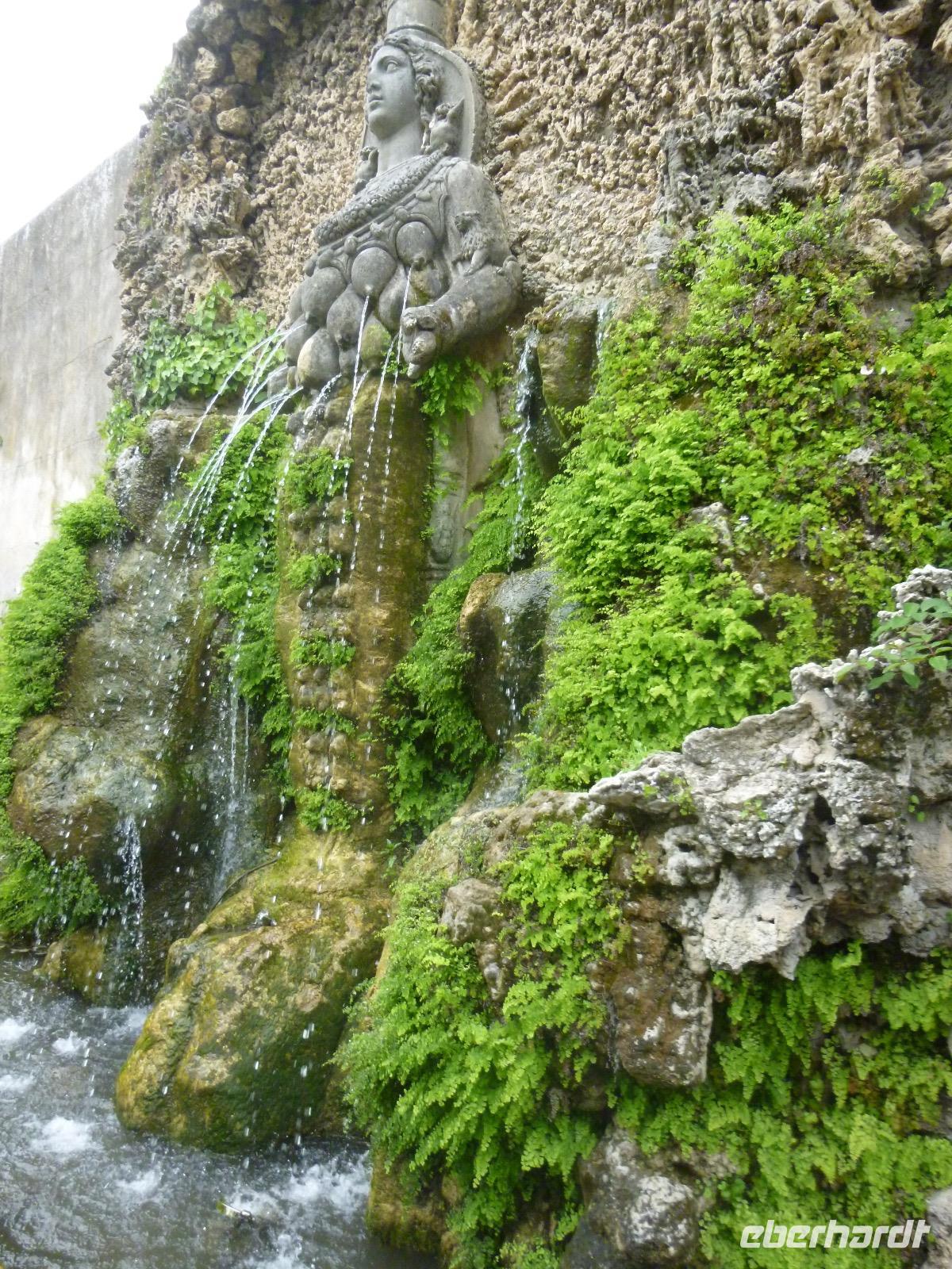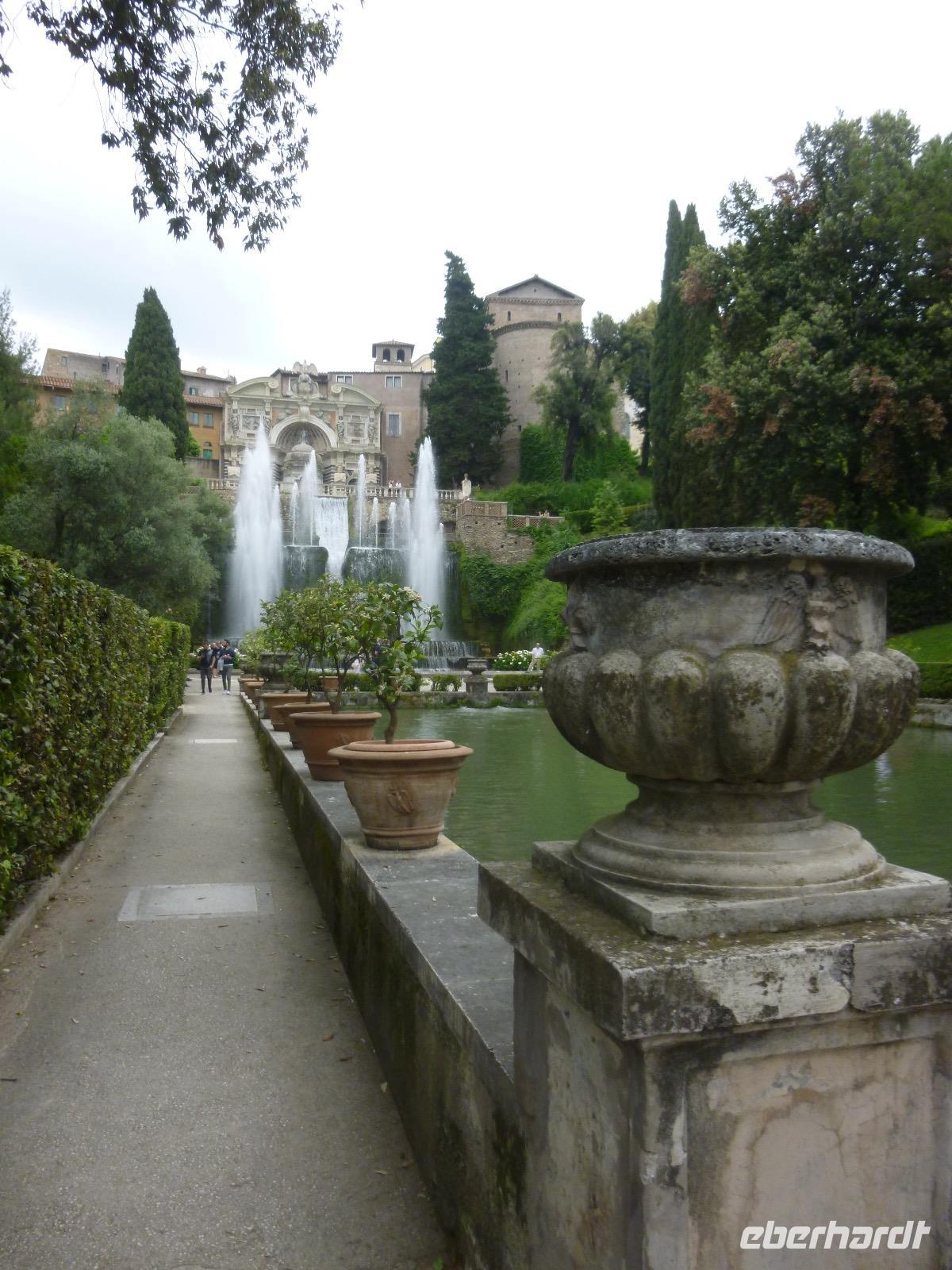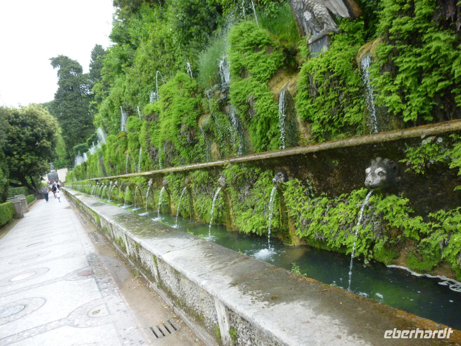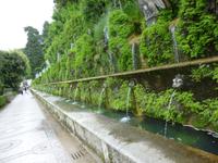 Zu den prächtigsten Werken der Renaissance-Gartenkunst mit Wasservielfalt zählt zweifelsfrei die Villa d'Este im Zentrum von Tivoli, die wir anschließend besuchten. Beauftragt vom Sohn der Lucrezia Borgia, Kardinal Ippolito II. und um ihm einen repräsentativen Sitz im ehemaligen Benediktiner-Konvent zu errichten, wurden Räume umgebaut, Erdmassen bewegt, Aquädukte gebaut und Flusswasser umgeleitet. Der Park entwickelt sich entlang einer zentralen Achse am Hang und war bereits unter Zeitgenossen viel bestaunt, so vom Fabel-Schriftsteller Montaigne. Viele antike Figuren aus der Hadriansvilla fanden Aufstellung in der Gartenanlage und folgten einem gelehrten Programm zur Würdigung des Kardinals und seiner Familie. Im 18. Jahrhundert geriet er dann in Vergessenheit und wurde im 19. Jahrhundert wieder entdeckt und restauriert. Auch Franz Liszt war hier zu Gast und komponierte seine „Les jeux d'eaux á la Villa de'Este".