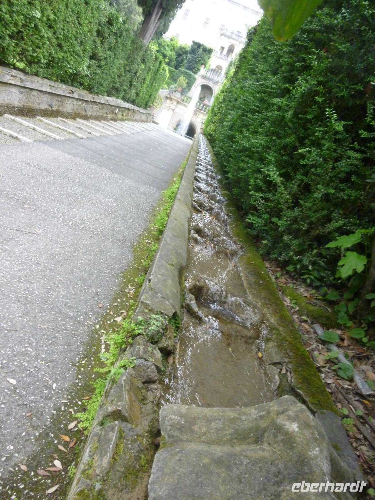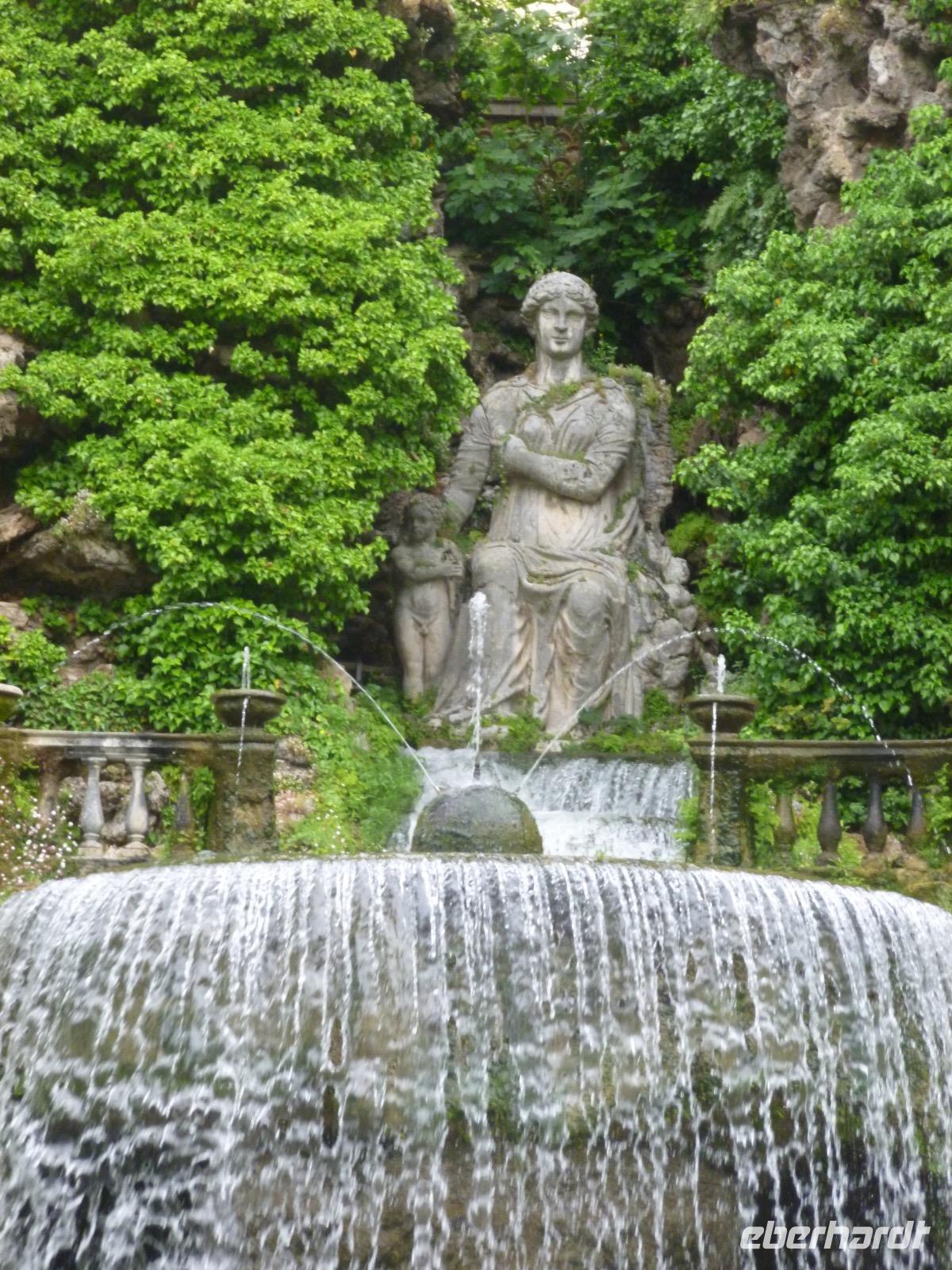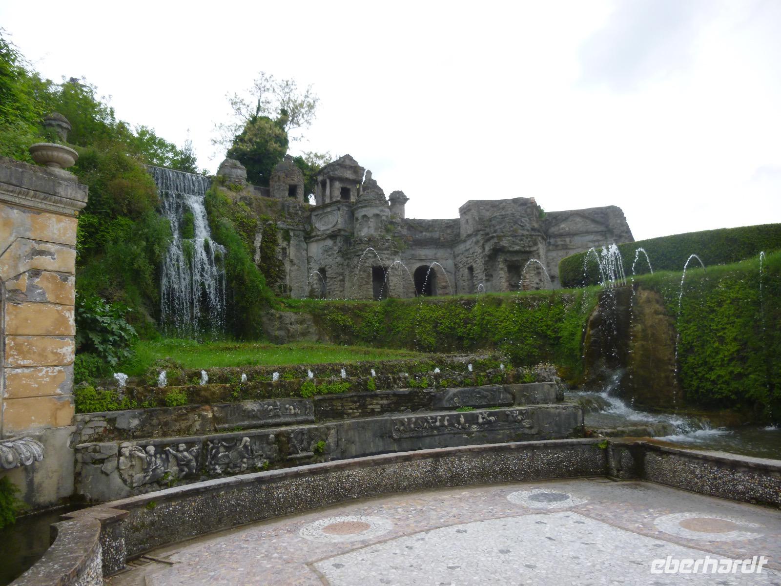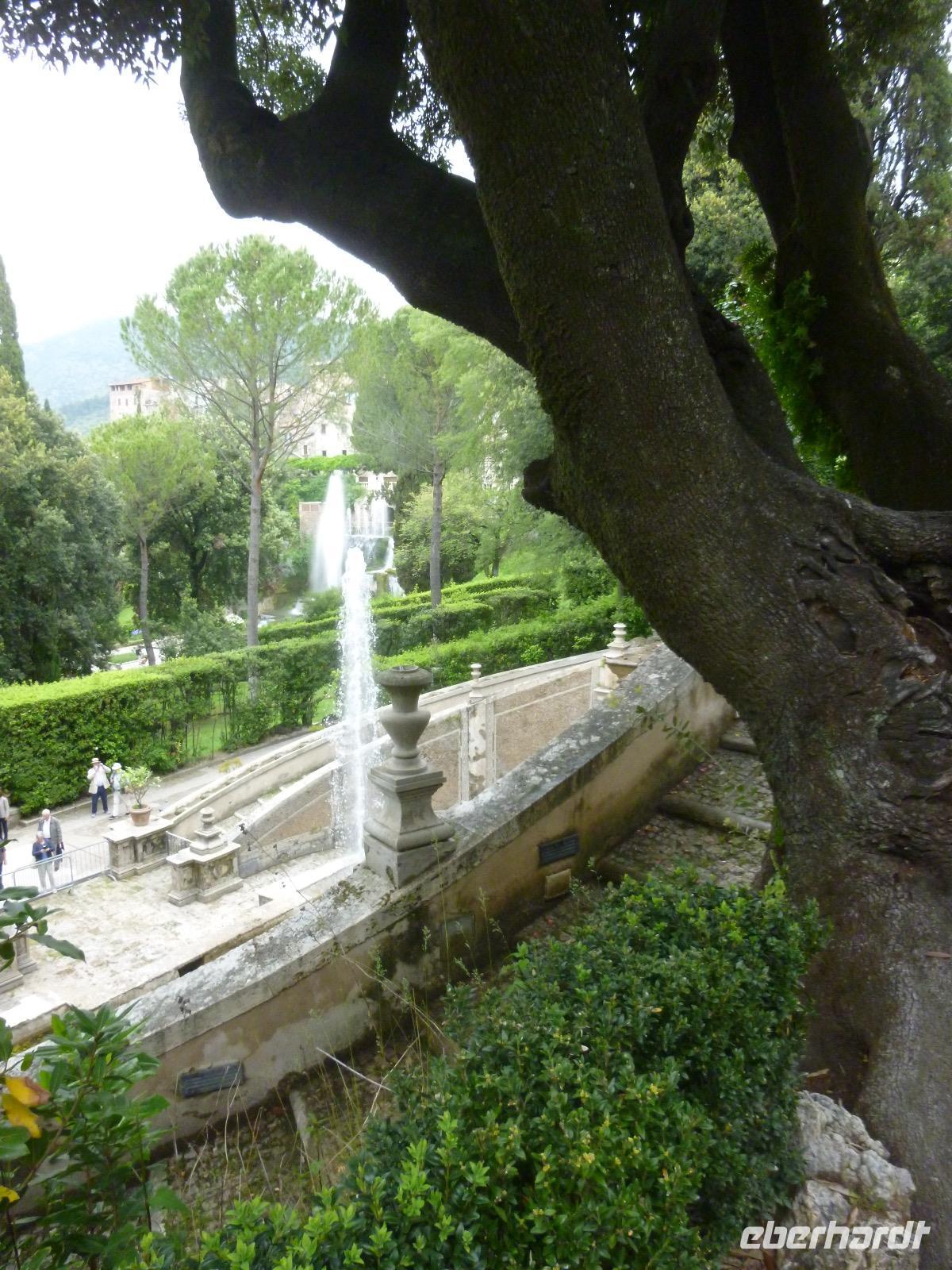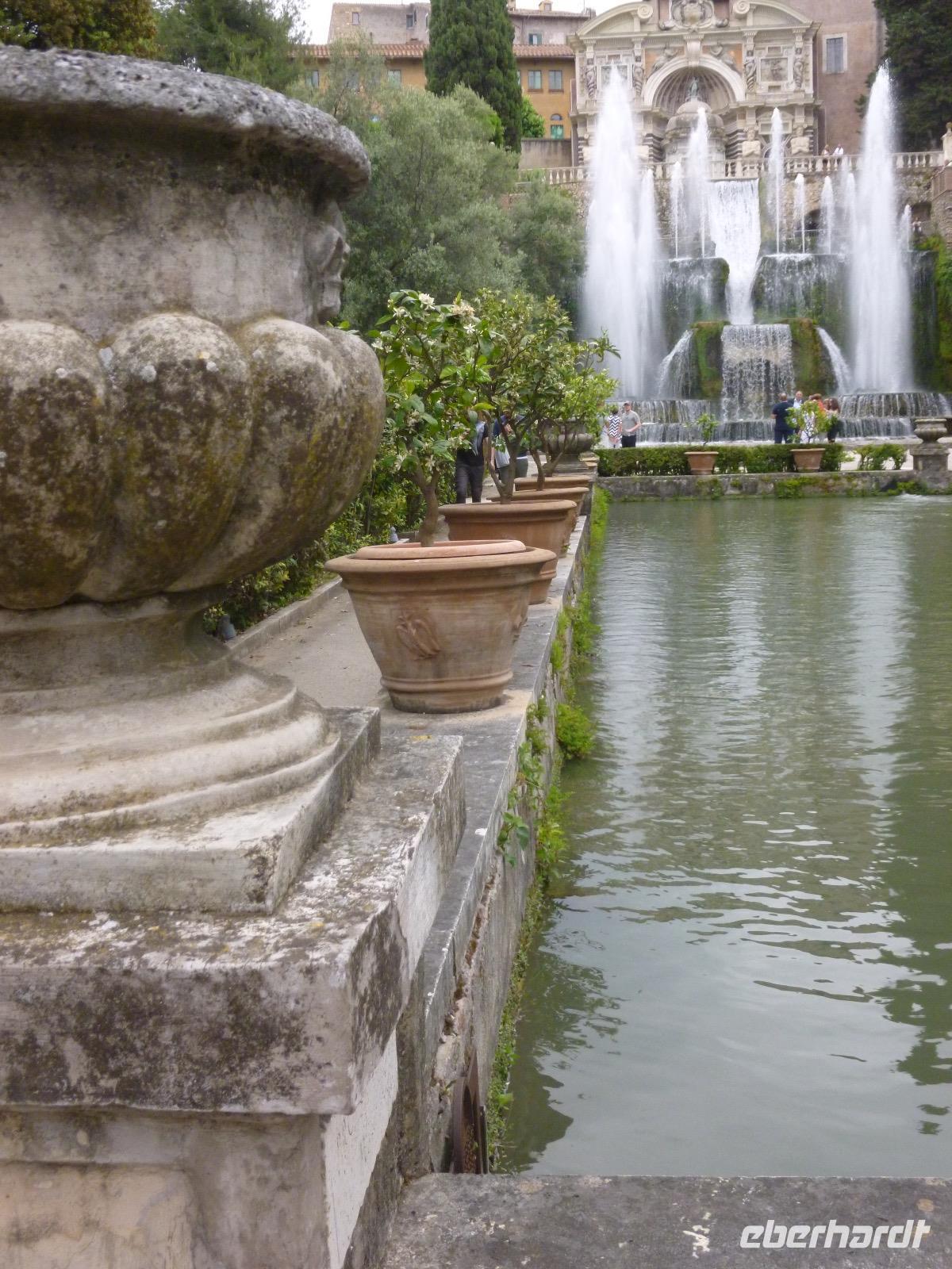 Zu den prächtigsten Werken der Renaissance-Gartenkunst mit Wasservielfalt zählt zweifelsfrei die Villa d'Este im Zentrum von Tivoli, die wir anschließend besuchten. Beauftragt vom Sohn der Lucrezia Borgia, Kardinal Ippolito II. und um ihm einen repräsentativen Sitz im ehemaligen Benediktiner-Konvent zu errichten, wurden Räume umgebaut, Erdmassen bewegt, Aquädukte gebaut und Flusswasser umgeleitet. Der Park entwickelt sich entlang einer zentralen Achse am Hang und war bereits unter Zeitgenossen viel bestaunt, so vom Fabel-Schriftsteller Montaigne. Viele antike Figuren aus der Hadriansvilla fanden Aufstellung in der Gartenanlage und folgten einem gelehrten Programm zur Würdigung des Kardinals und seiner Familie. Im 18. Jahrhundert geriet er dann in Vergessenheit und wurde im 19. Jahrhundert wieder entdeckt und restauriert. Auch Franz Liszt war hier zu Gast und komponierte seine „Les jeux d'eaux á la Villa de'Este".