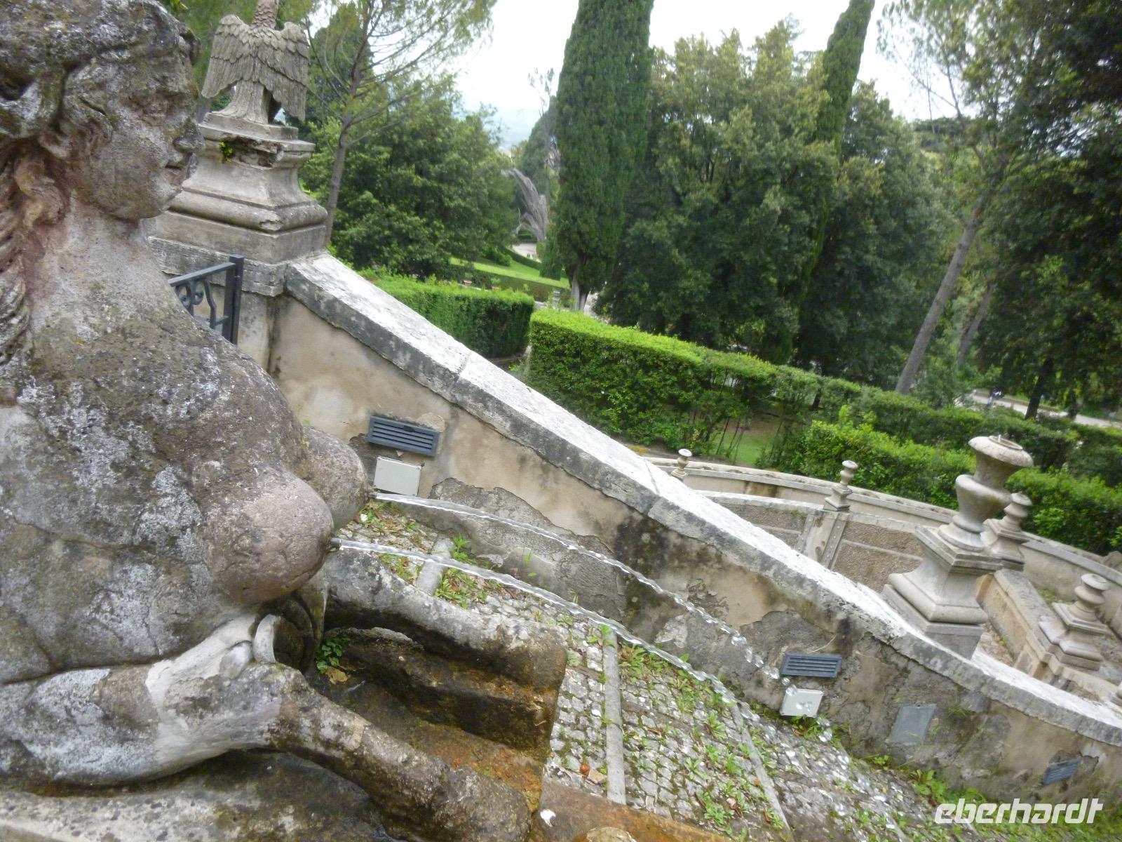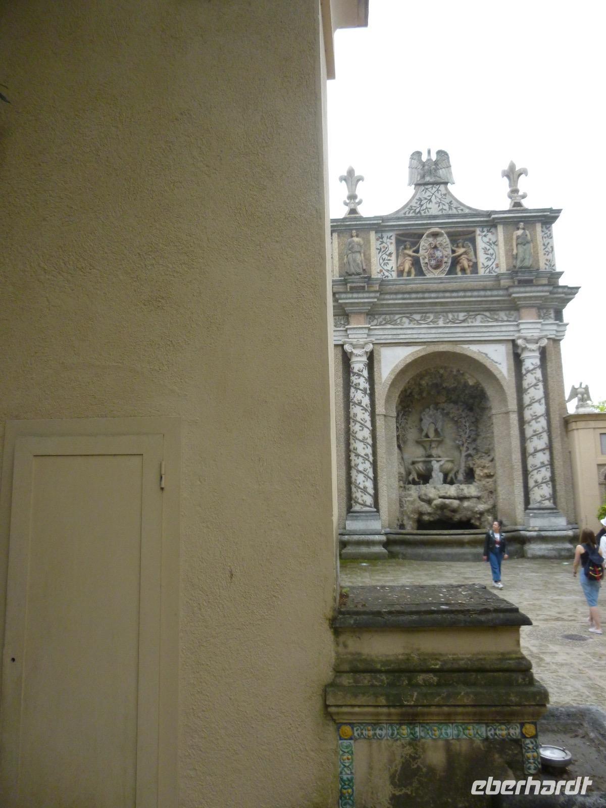 Nach unserer Freizeit im Städtchen versammelten wir uns in den Palasträumen des Kardinals und bewunderten die unter Zuccari freskierten Palasträume. Danach öffnete sich unserem Blick dem Garten von oben mit seiner Hauptachse, Rampen, Wegen, Wasserspielen, Fischteichen und Figuren. Auf den Wegen des Kardinals fanden wir auch zum Orgelbrunnen - faszinierend in seiner Verbindung von Musik und Wasser: einer der Musikautomaten, der sich auf antike Hydraulik gründete und dessen Hülle später von Bernini verkleidet wurde.