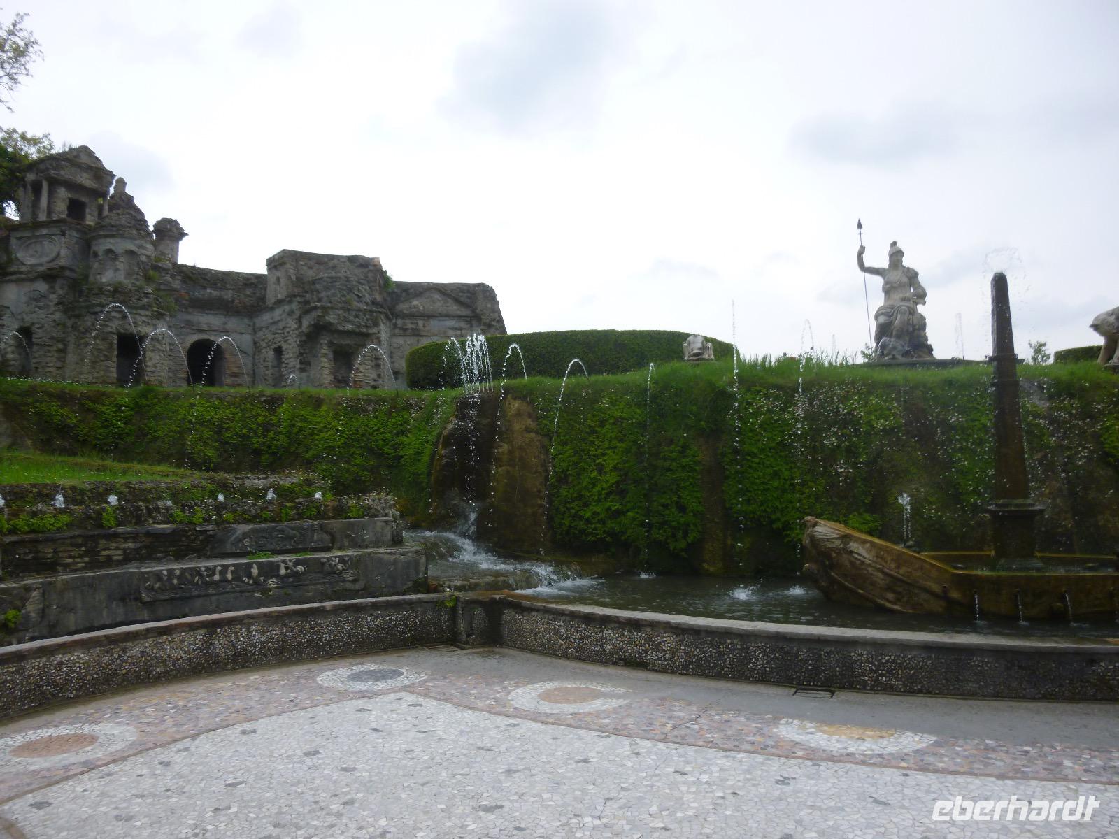 Hier befanden wir uns also am Ursprung unserer Zeitreise durch die Gartenkunst Italiens. Es brauchte allerdings unsere Phantasie, die Mischung aus Majestät und Lyrik nachzuempfinden, welche die Anlage einst gehabt haben muss: das Imperium in der Fülle seiner Macht vertrug einen gebildeten kunstsinnigen Herrscher. Vieles ist nicht mehr klar zuzuordnen, doch der Rest ist imposant und großartig genug!