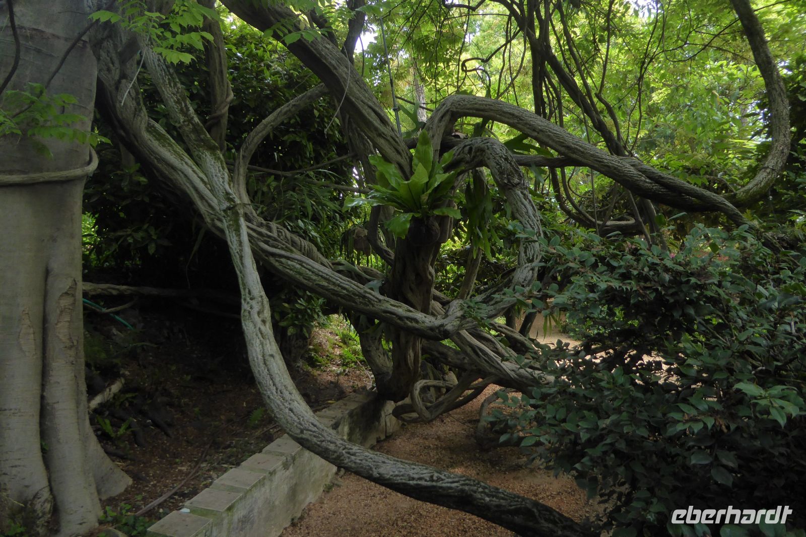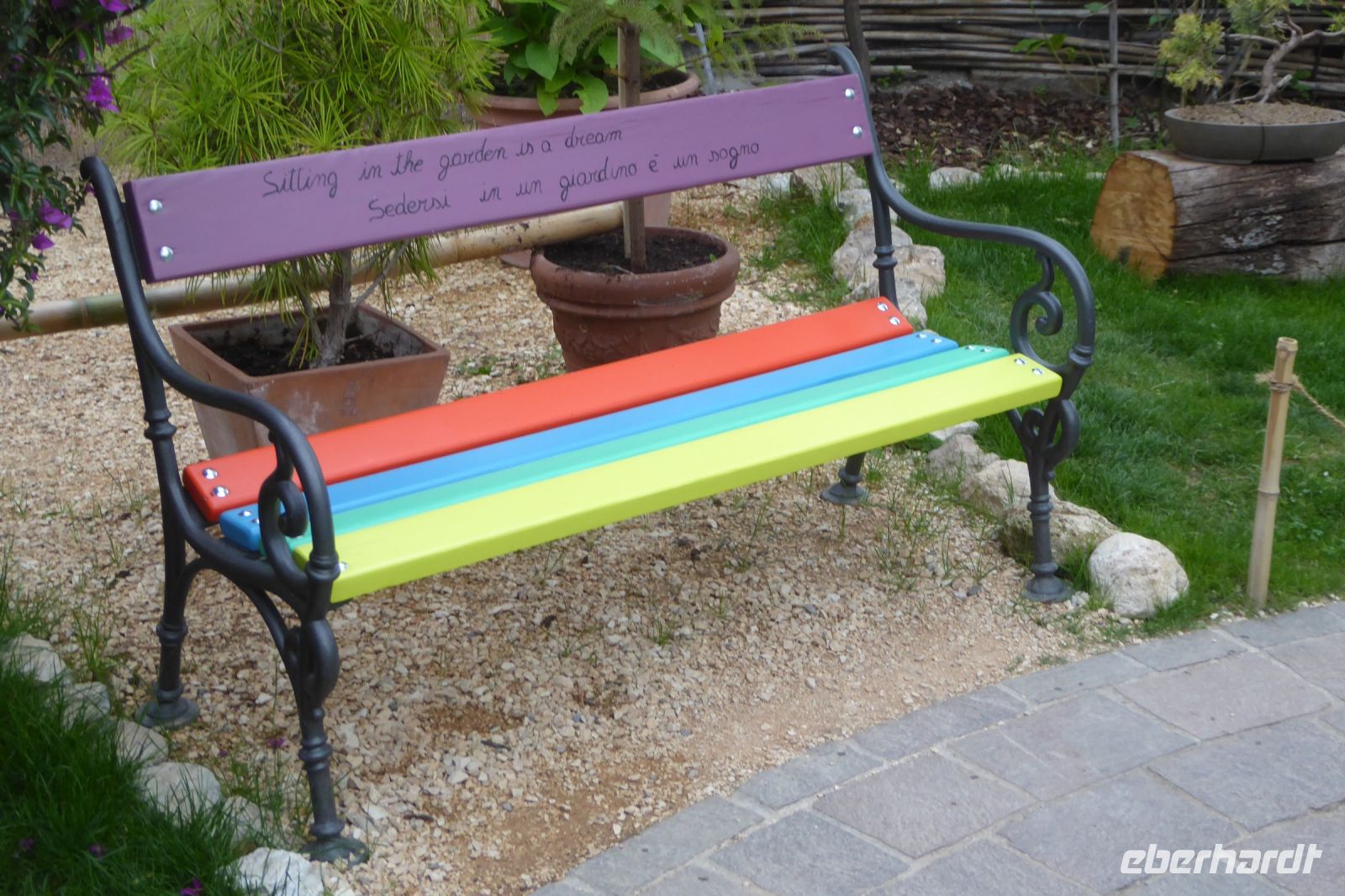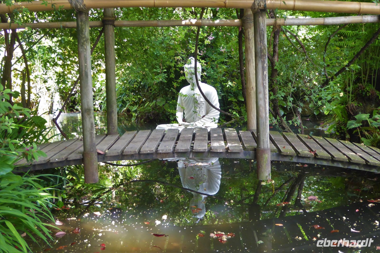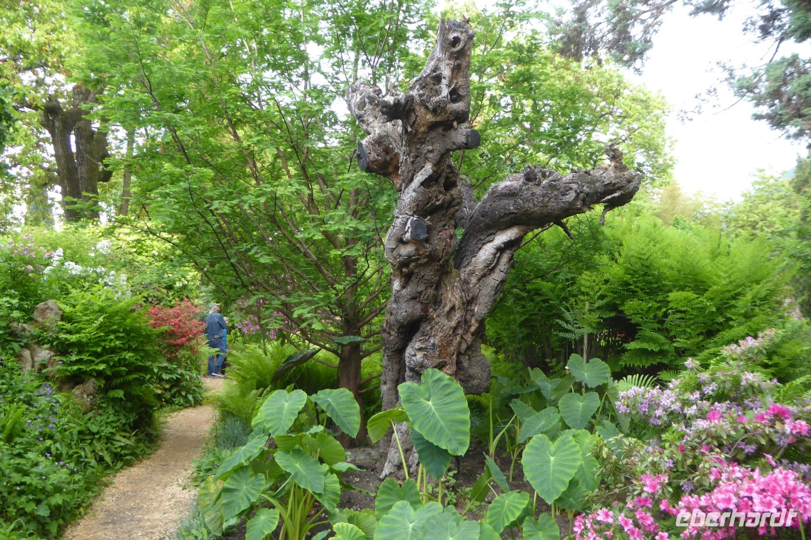 Nach einem guten Frühstück starteten wir gestärkt in den Tag und freuten uns auf kommende Ereignisse. Heute stand der botanische Garten des Multimediakünstlers André Heller in Gardone Riviera auf dem Programm. Diese Anlage ist vor allem für ihre Sammlung floraler Schätze aus Afrika, Südamerika, Asien, Europa und Australien bekannt- und für die außergewöhnliche Mischung unterschiedlicher Pflanzengruppen. Meterhohe Baumfarne, Bananenstauden, Yucca, Catalpa, Ilex, Oliven- und Eichenbäume sowie Bambus gliedern den Garten. Im Baumschatten gedeihen Blütenpflanzen und ein Hain mit duftenden Rosen ist ein Fest für alle Sinne. Der Garten wurde kurz vor dem Ersten Weltkrieg von dem Zahnarzt und Botaniker Arthur Hruska angelegt. Dieser sah ihn als eine Oase des Friedens und der Harmonie, in der er Pflanzen aus aller Welt zusammensammelte und so einen Weltgarten erschuf. Die aus Quellen gespeisten Bachläufe und kleine Seen geben der Anlage Struktur und inneren Zusammenhalt. Sie bietet so einen harmonischen Ort des Genießens. Am oberen Ende des Gartens ist ein kleines Bistro integriert. Bei einem kühlen Schluck Spumante ließ sich die Philosophie dieser Gartenanlage bestens nachvollziehen: der Suche nach Ruhe und Kontemplation gepaart mit einem Genuss für alle Sinne in der Abgeschiedenheit eines vom Menschen geschaffenen geborgenen Naturraumes. Vor fünfunddreißig Jahren hat André Heller das fast vergessene Paradies wiederentdeckt und es mit eigenen Werken sowie Skulpturen zeitgenössischer Künstler wie Keith Haring, Roy Lichtenstein, Susanne Schmögner und Rudolf Hirt aufgewertet. Die insgesamt dreißig Kunstwerke drängen sich nicht in den Vordergrund, sie fügen sich harmonisch in den Garten ein und ordnen sich den „Kunstwerken“ der Natur unter, ja, heben diese sogar noch hervor!