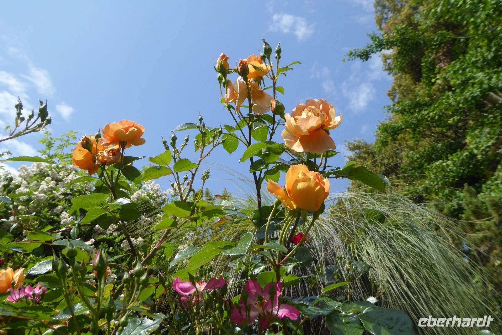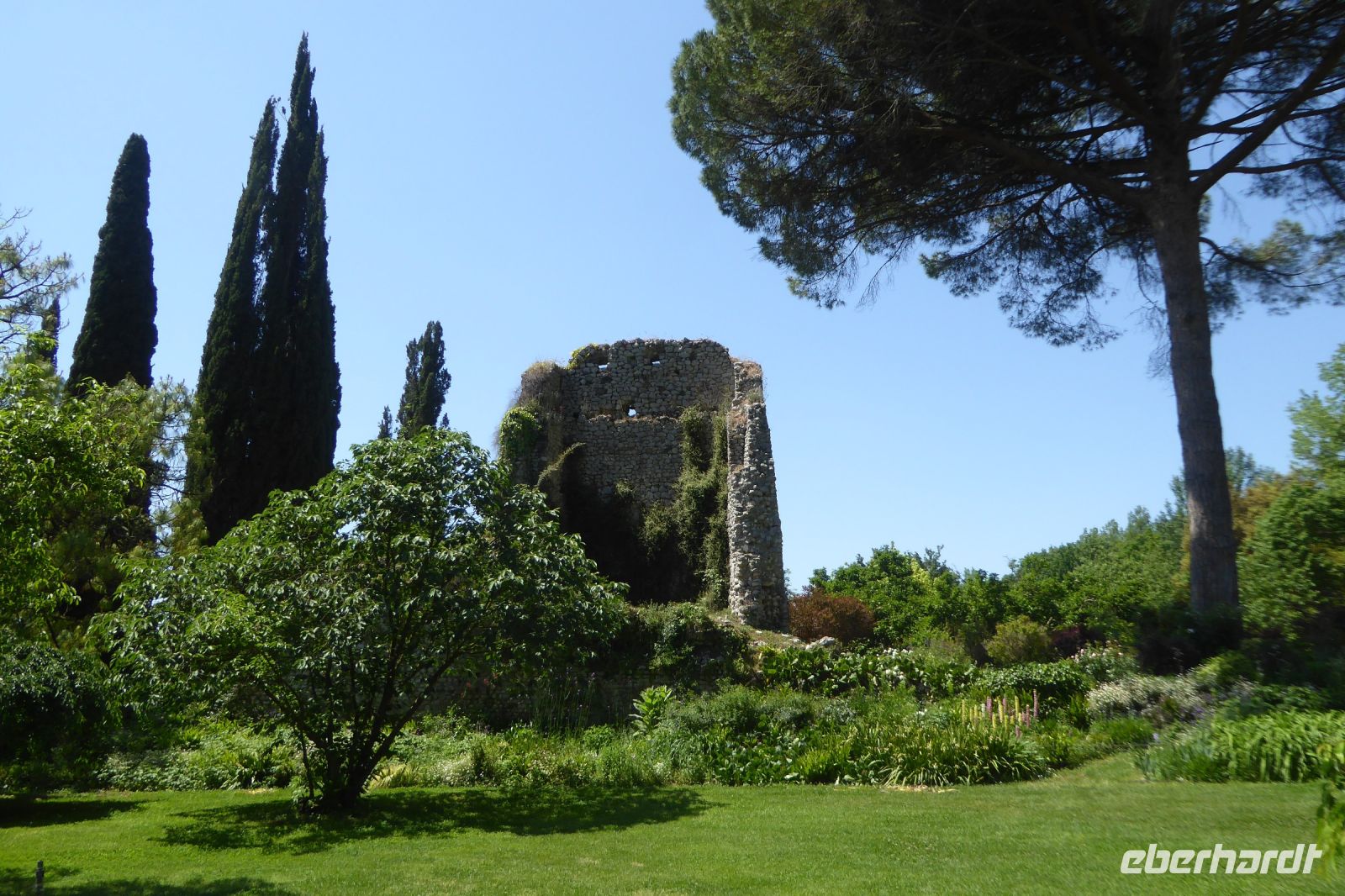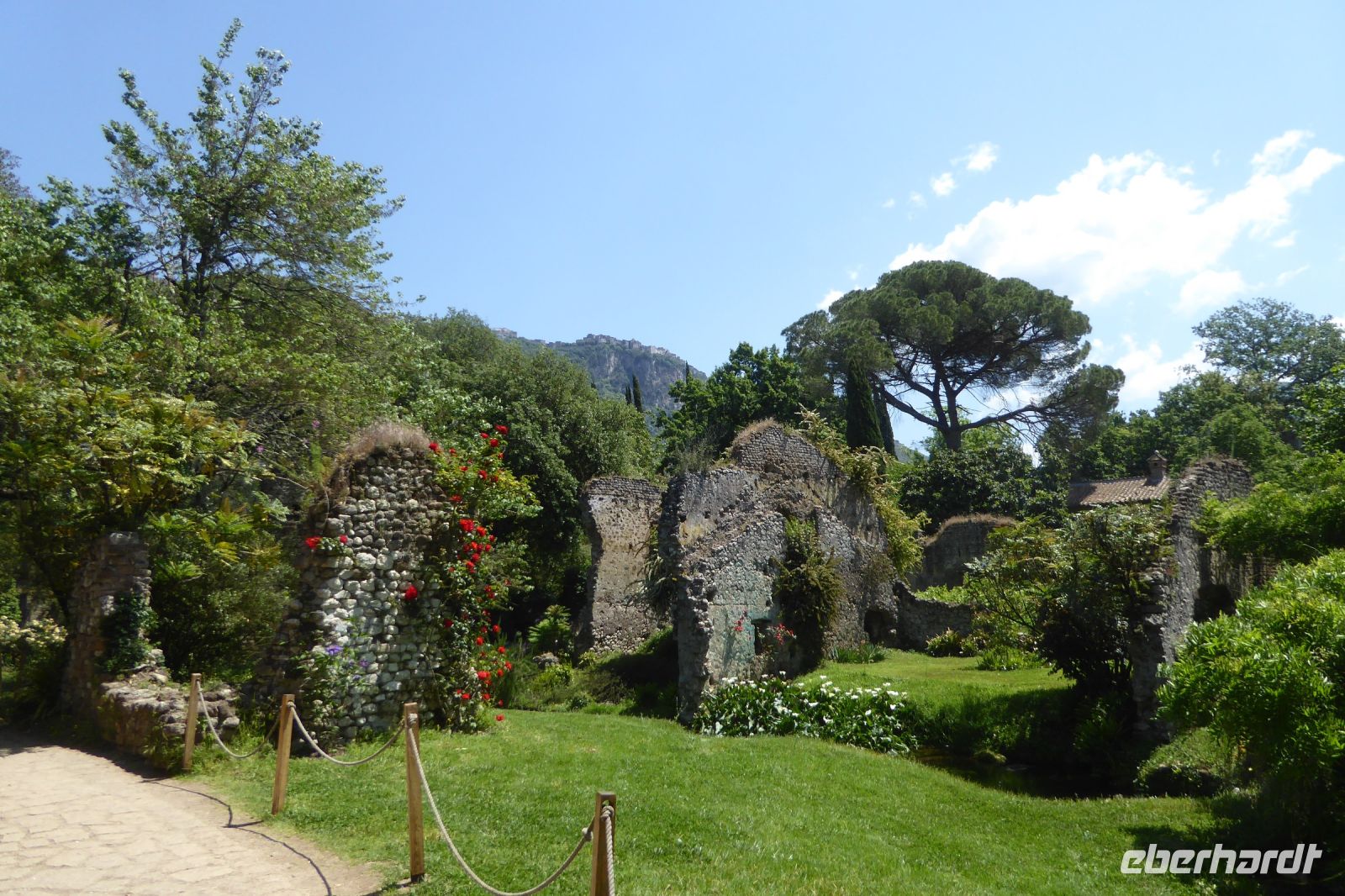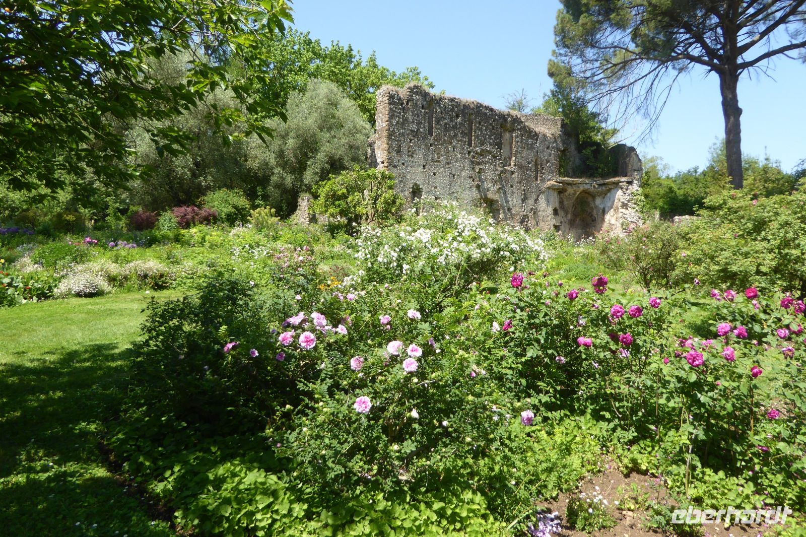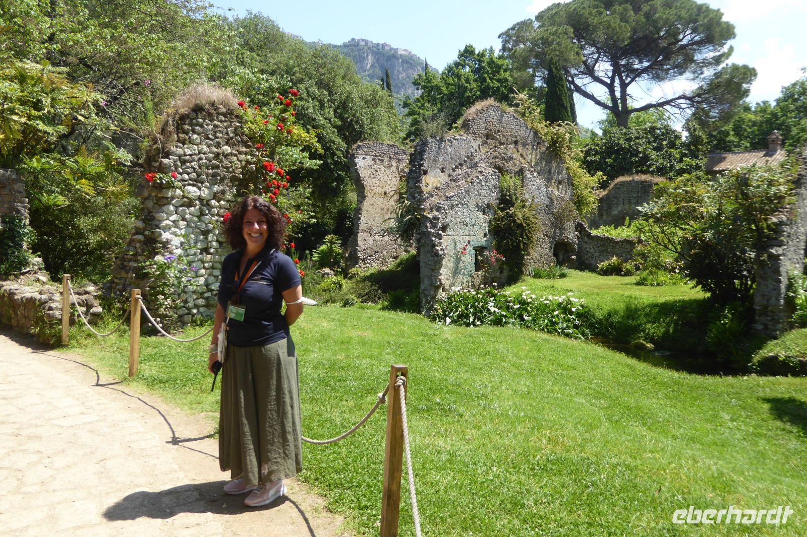 Heute erreichten wir mit dem wohl romantischten Garten Italiens den südlichsten Punkt unserer Reise: den Garten der Nymphen mitten in den.Pontinischen Sümpfen. Der heutige Ort Ninfa liegt an den Hängen der Monti Lepini, die hier eine Höhe von fast 1000 m erreichen. In römischer Zeit hatte die Stadt, die an der Straße von Neapel nach Rom lag, 2000 Einwohner. Hier stand ein Tempel, der den Göttinnen des Quellwassers, den Nymphen gewidmet war. Bis zu ihrer Zerstörung im vierzehnten Jahrhundert verfügte die reiche Stadt mit 150 Steinhäusern, über vierzehn Kirchen, Mühlen, Brücken und eine Burg. Eine gewaltige Mauer mit elf Türmen diente der Stadt zum Schutz. Seit dem sechzehnten Jahrhundert steht Ninfa, unter der Herrschaft der Feudalherren von Sermoneta, der Familie Caetani, in deren Besitz das Anwesen bis heute ist. Diese Familie war es auch, die den von dem deutschen Historiker Ferdinand Gregorovius als „Pompeji des Mittelalters“ beschriebenen Ort wieder zum Leben erweckte. „Dieses entzückende Nymphea ist das reizendste Märchen der Geschichte und Natur das sich irgend in der Welt gesehen habe“, so der Literat. Seit den zwanziger Jahren des zwanzigsten Jahrhunderts wurden die von zahlreichen Pflanzen überwucherten Ruinen von den Besitzern, eben jener alten römischen Adelsfamilie Caetani, in den Traum eines englischen Landschaftsgarten integriert und zu einer unvergesslichen harmonischen Symbiose von Ruinen und Pflanzen umgewandelt. Die wasserreiche Südlage unterhalb der schützenden Berge sowie die mittelalterlichen Mauern schaffen ein spezifisches Mikroklima in dem exotische Pflanzen wie japanische Ahornbäume, Bambus, Hartriegel, Kamelien, Magnolien, Callistemon, Laburnum und verschiedene Rosensorten sowie großblättrige Gunnera und Wasserlilien entlang des Baches, üppig gedeihen. Unsere charmante Führerin Umbertina hat mit ihrem Wissen und ihrer fröhlichen Art viel dazu beigetragen, dass uns dieser Garten noch lange in bester Erinnerung bleiben wird.