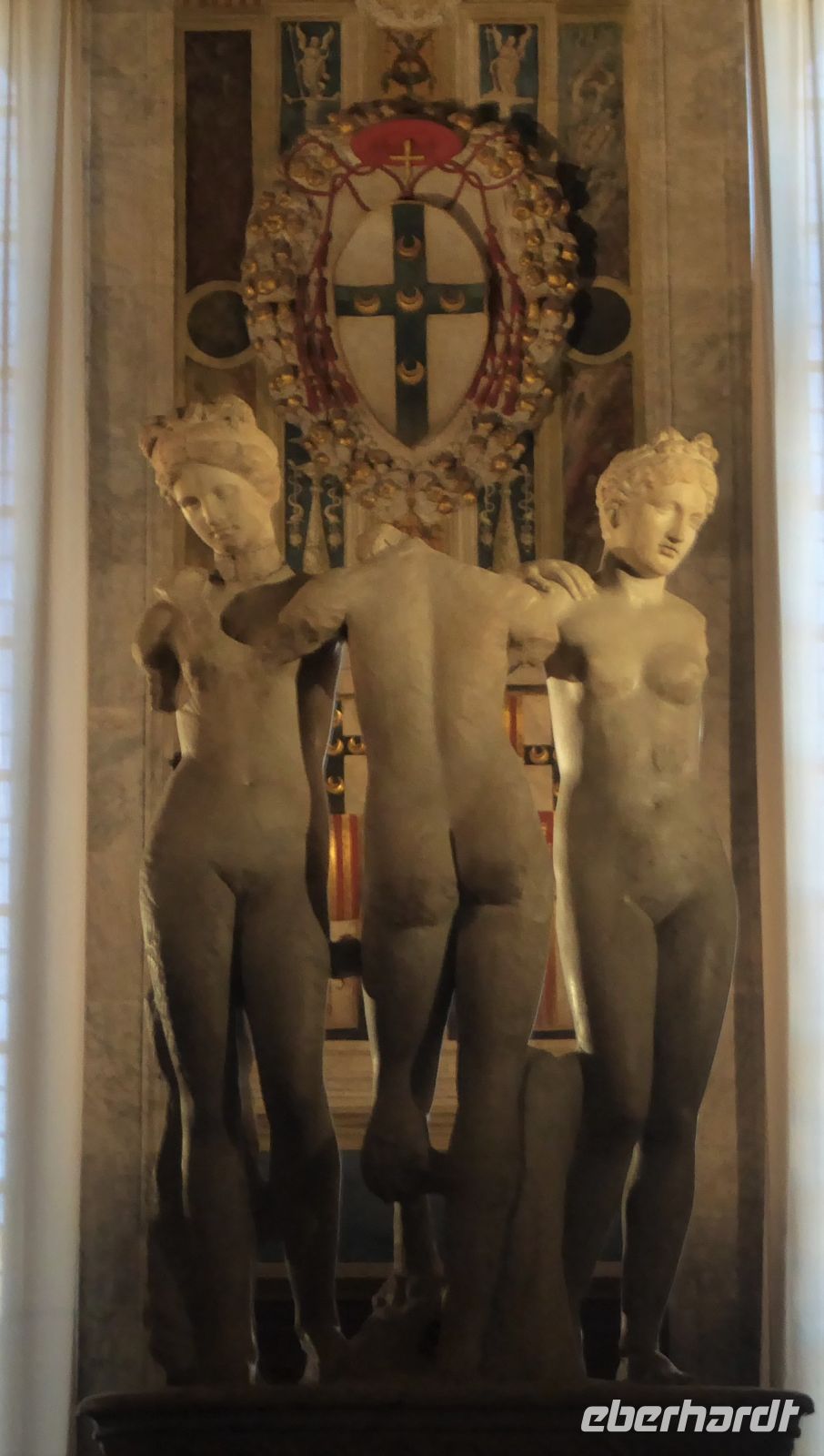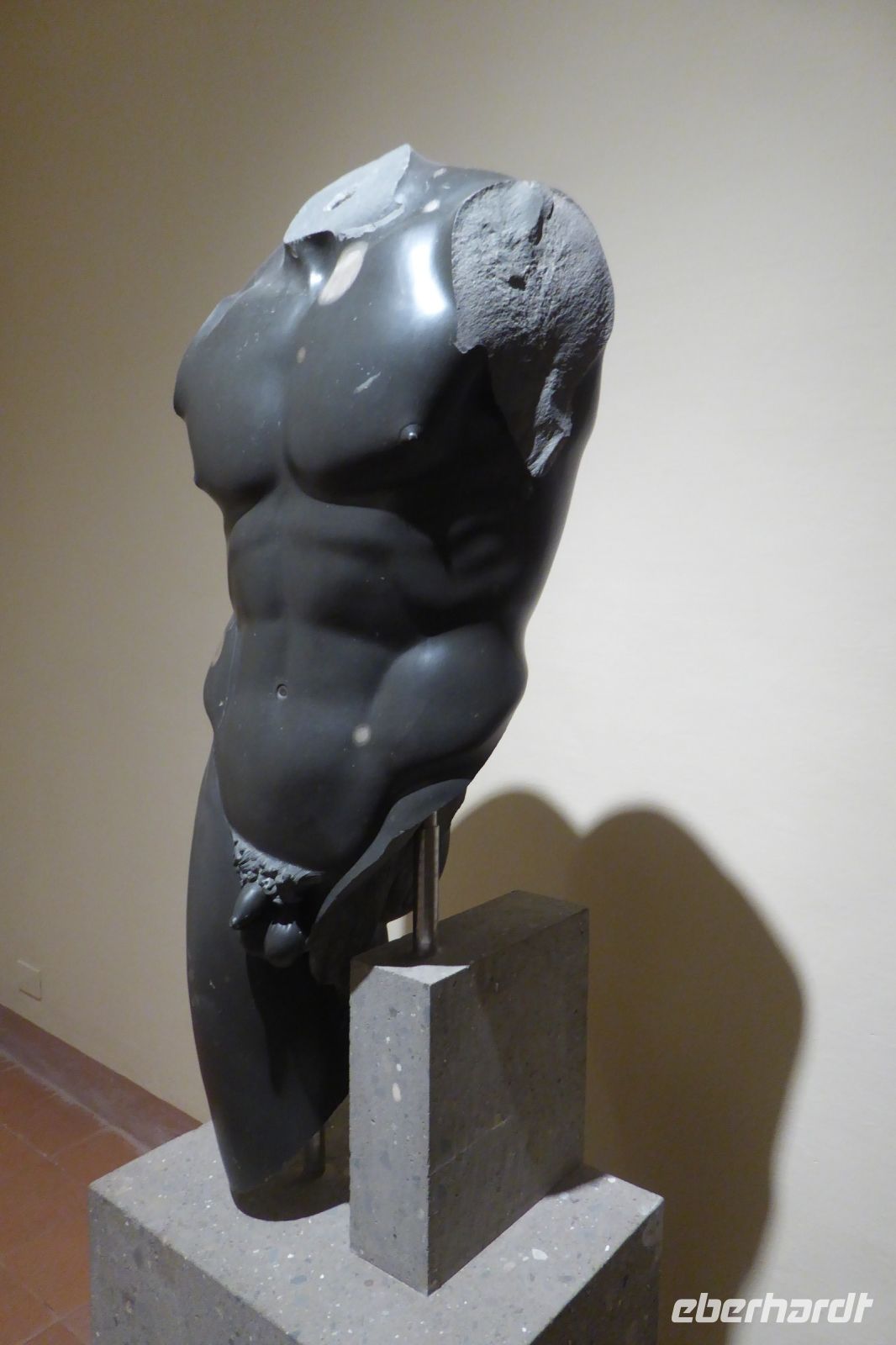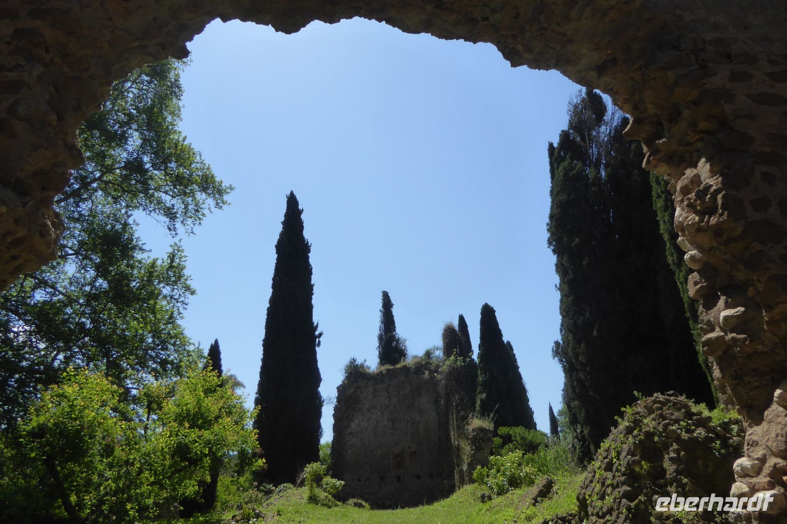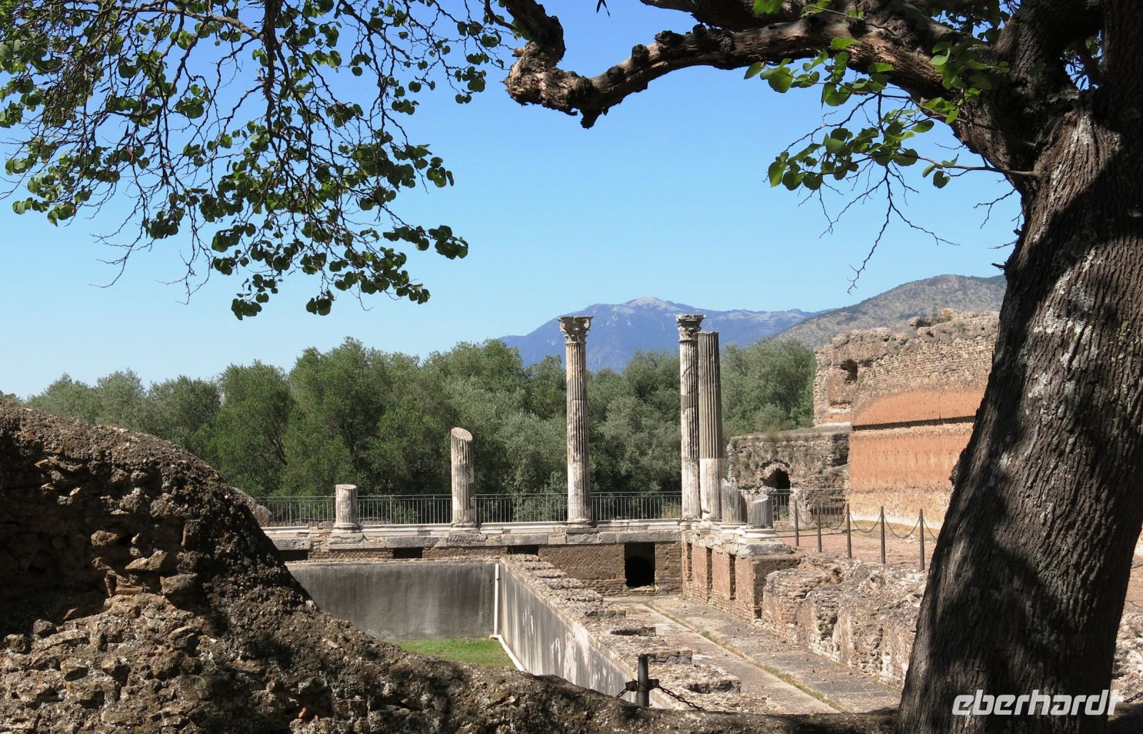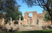 Schweren Herzens verließen wir den schattigen, von gewaltigen Wasserfontänen gekühlten Park und kletterten wieder in den Bus um unser nächstes Ziel, den Landsitz Kaiser Hadrians zu besuchen. Der repräsentative Sommerpalast des Kaisers aus dem zweiten nachchristlichen Jahrhundert wurde gemäß seinen Interessen mit repräsentativen Gebäuden, Tempeln, einer Bibliothek, einer Therme und einem Theater ausgestattet. Dekorationselemente aus Griechenland und Ägypten vervollständigten die prachtvolle Anlage. Die politischen Veränderungen im vierten Jahrhundert, vor allem die Gründung Konstantinopels 330 n. Chr sowie kriegerische Auseinandersetzungen und Überfälle nördlicher Barbarenvölker beschleunigten den Abbau und den Zerfall der Palaststadt. Erst in der Frührenaissance zog die Villa als bedeutende antike Hinterlassenschaft neue Aufmerksamkeit auf sich und unter Papst Alexander VI begannen erste Grabungen, die zwar der weiteren Zerstörung Einhalt geboten, nicht aber eine weitere Verteilung der Statuen und Kunstwerke aufhalten konnte. Die Architektur der römischen Anlage mit ihrer klaren Aufteilung und Linearität, ihrem antiken Figurenschmuck, den Mosaiken und den aufwändigen Wasserspielen beeinflusste maßgeblich die Gestaltung italienischer Renaissancegärten und die der Lustgärten europäischer Fürstenhäuser der Neuzeit.