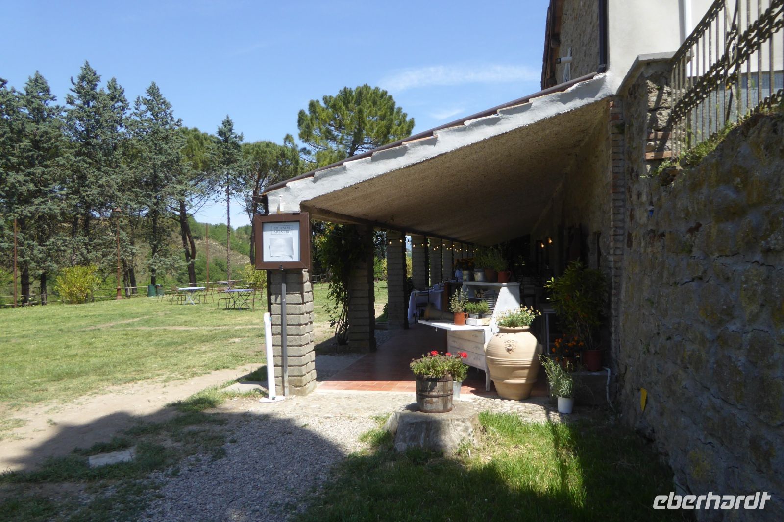 Vorbei an Bologna und Florenz erreichten wir am frühen Abend unser Hotel in Murlo, wenige Kilometer südlich von Siena. In der familienbetriebenen Albergo di Murlo wurden wir von Sarah, der Tochter des Hauses freundlich empfangen und mit einem köstlichen Abendessen verwöhnt. Nach einer leckeren Tomatensuppe und einer riesigen Portion Pasta, gab es als Hauptgericht Peposo, einen toskanischen Rinderschmortopf, gut gewürzt mit Chiantiwein und Pfeffer. Der Legende nach soll Brunelleschi vor 550 Jahren das Gericht für seine Mitarbeiter an der berühmten Kuppel des Domes in Florenz erfunden haben. Ein leckeres hausgemachtes Tiramisu rundete unsere erste Begegnung mit der toskanischen Küche ab.